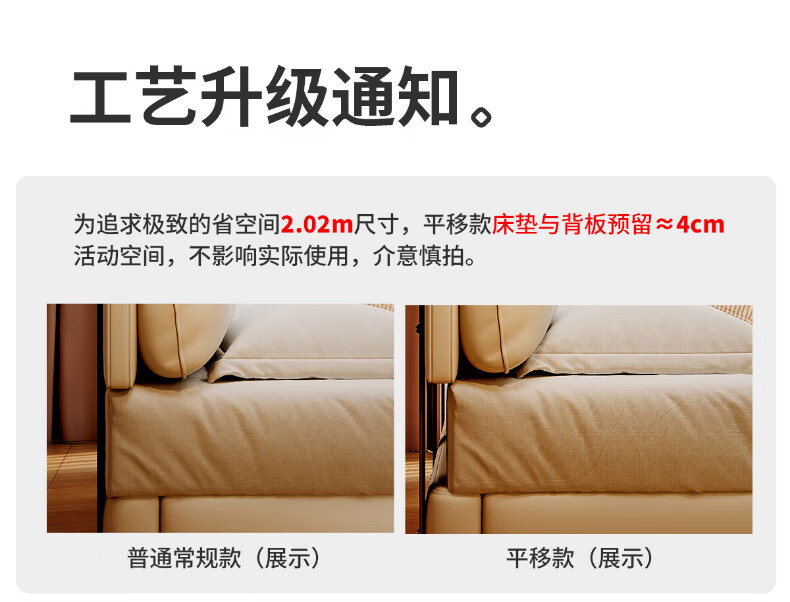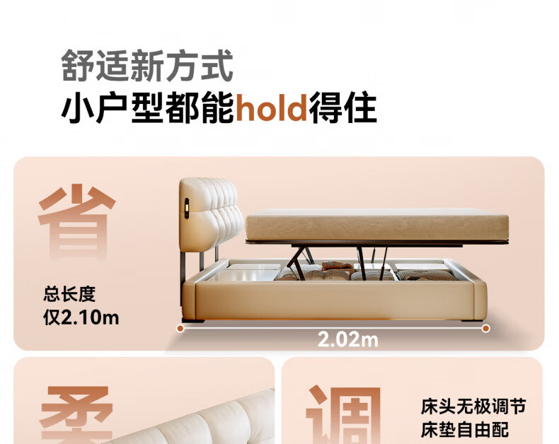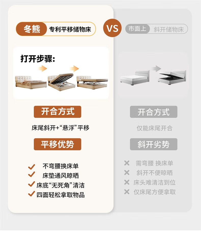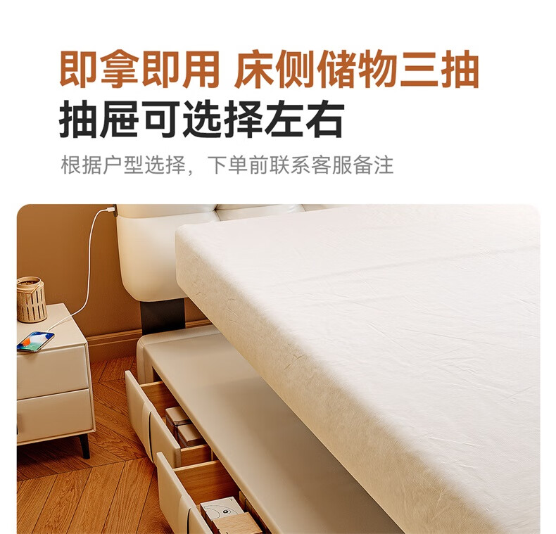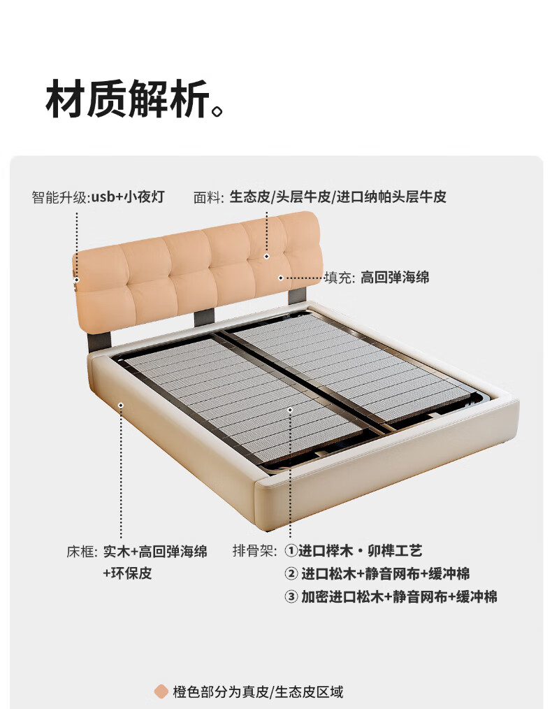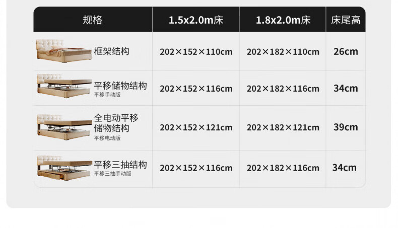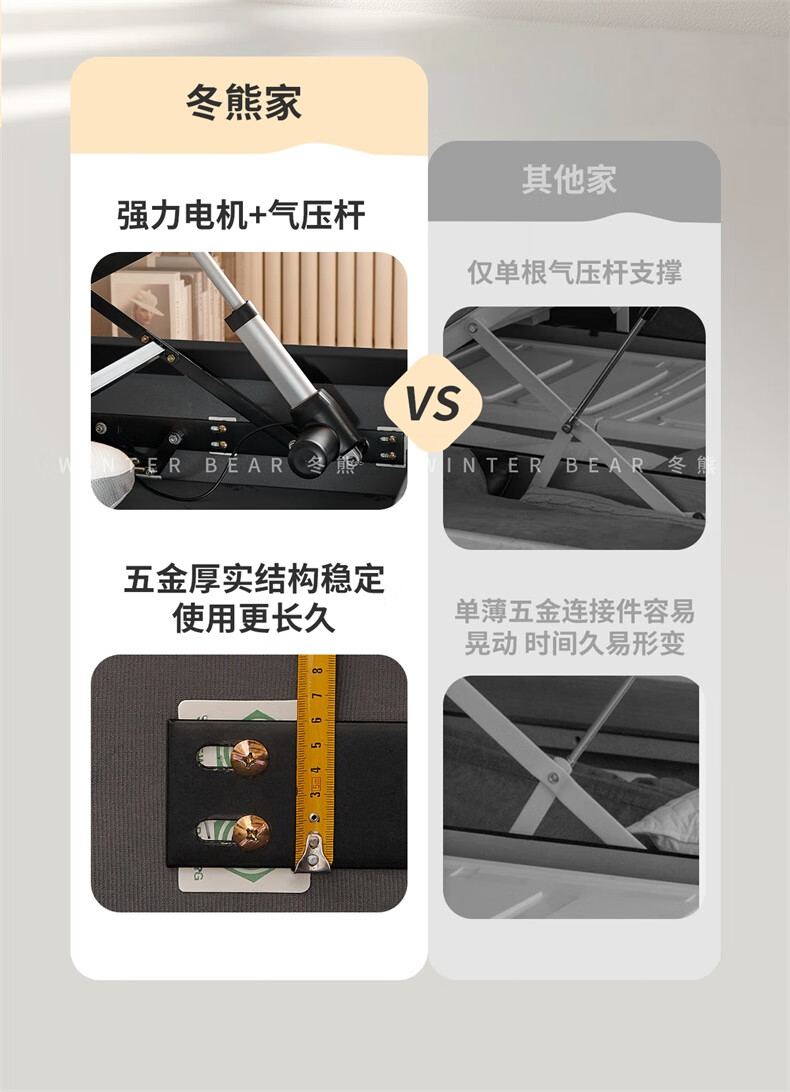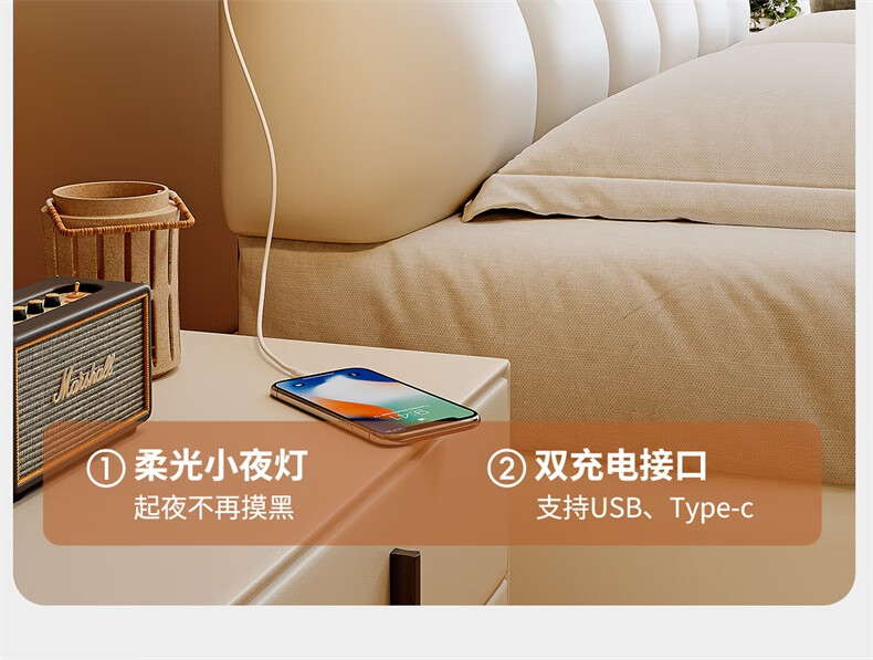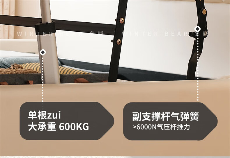 Winter Bear Puff Leather Bed Ultra-Thin Bedside Small Apartment Space-Saving Double Master Bedroom Cream High Box Sliding Storage Bed Ecological Leather Bed/Full Solid Wood Beech Rib Frame + 5-Star Mattress 1800mm*2000mm Frame Structure