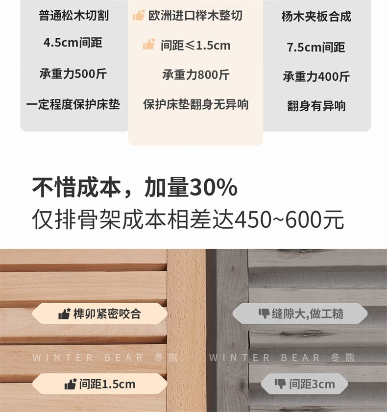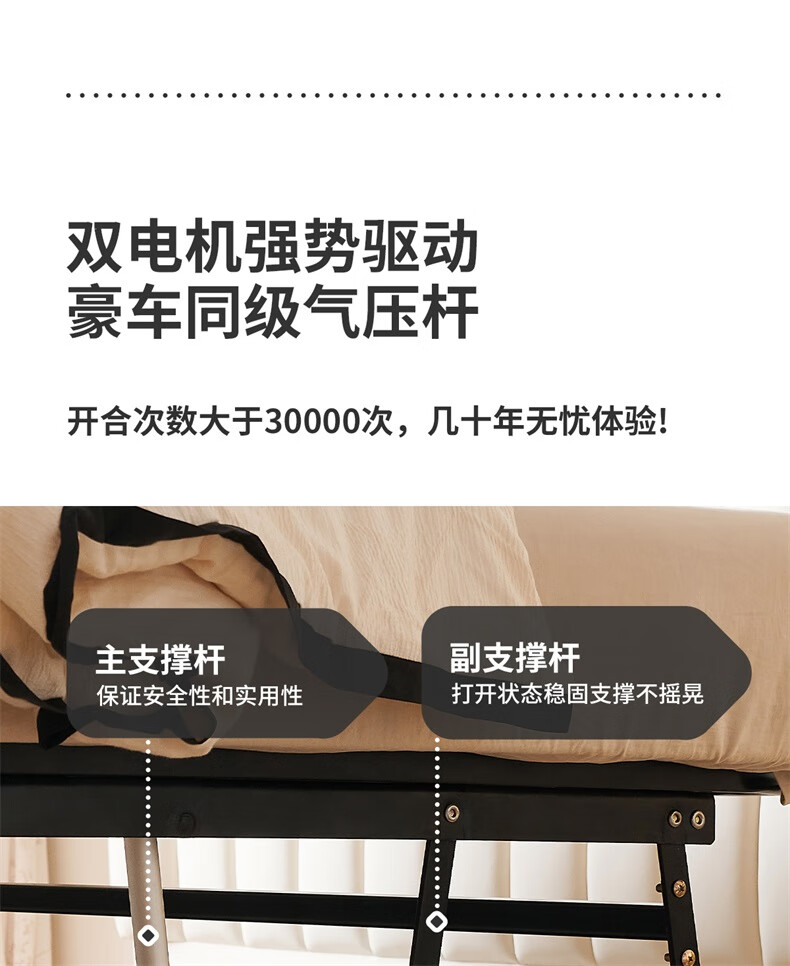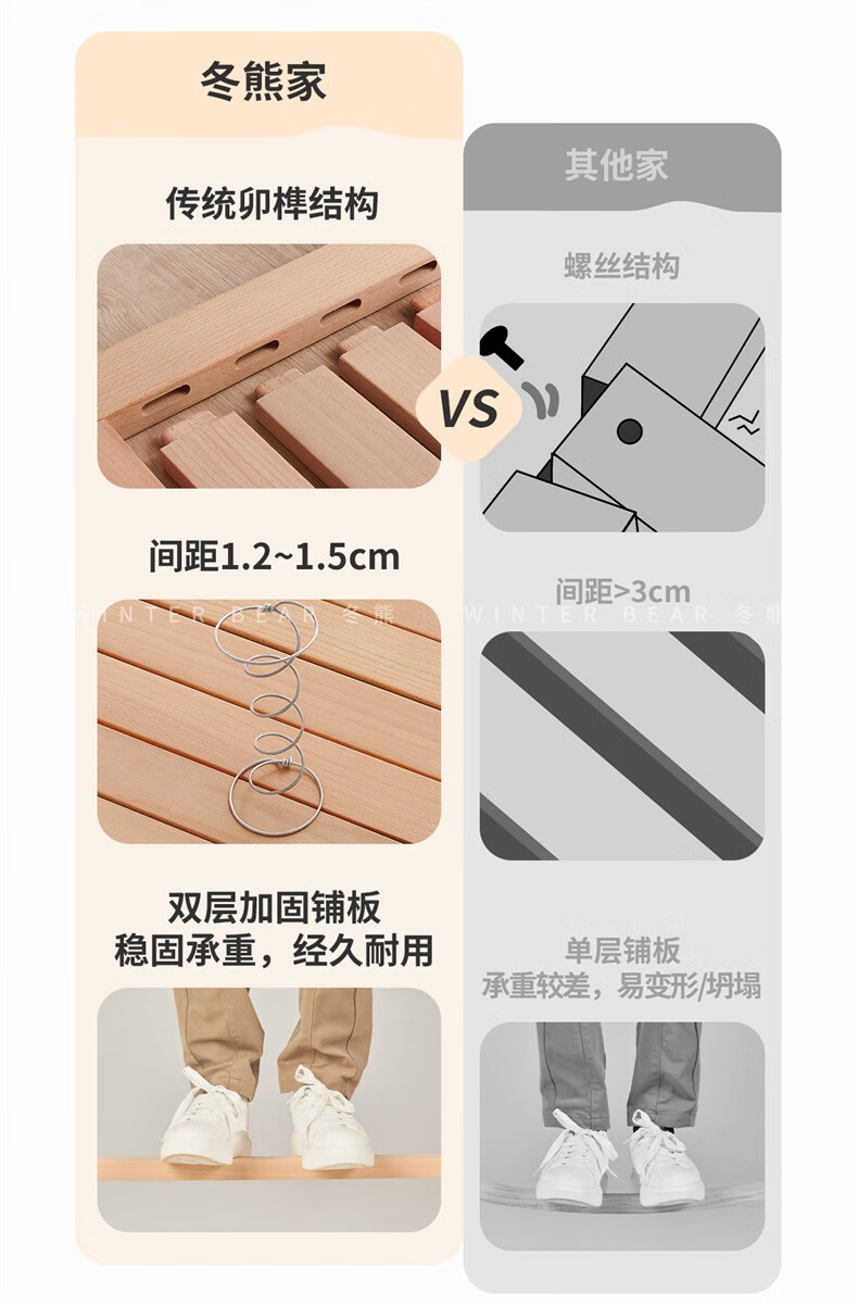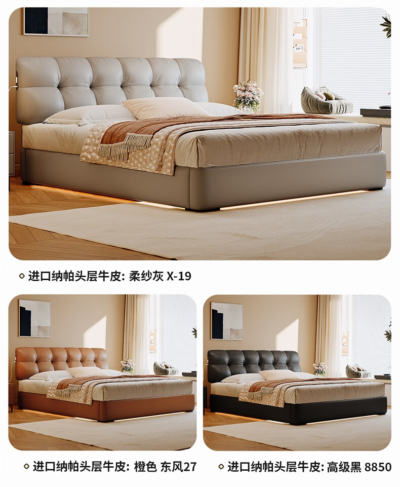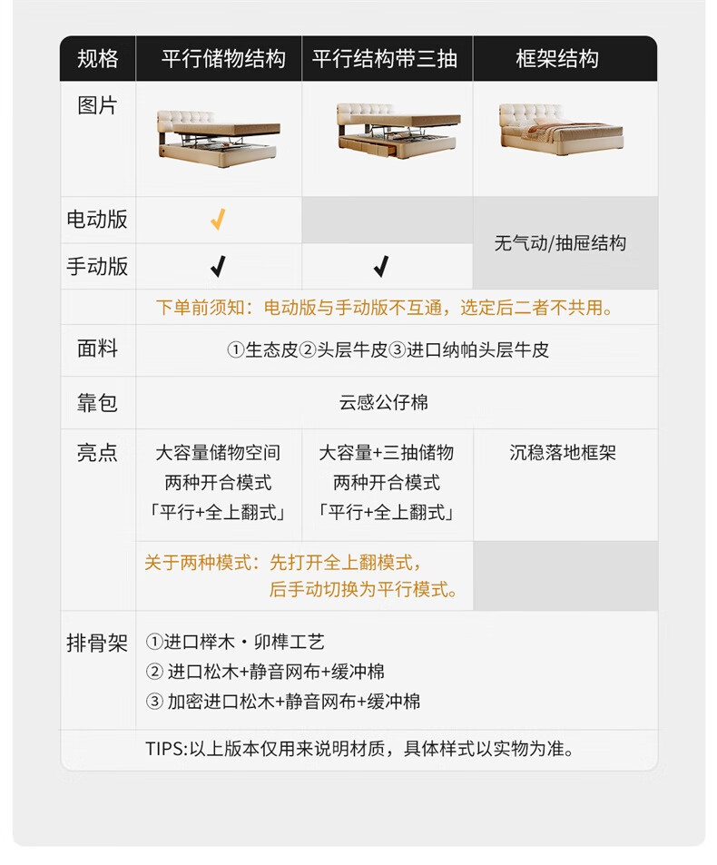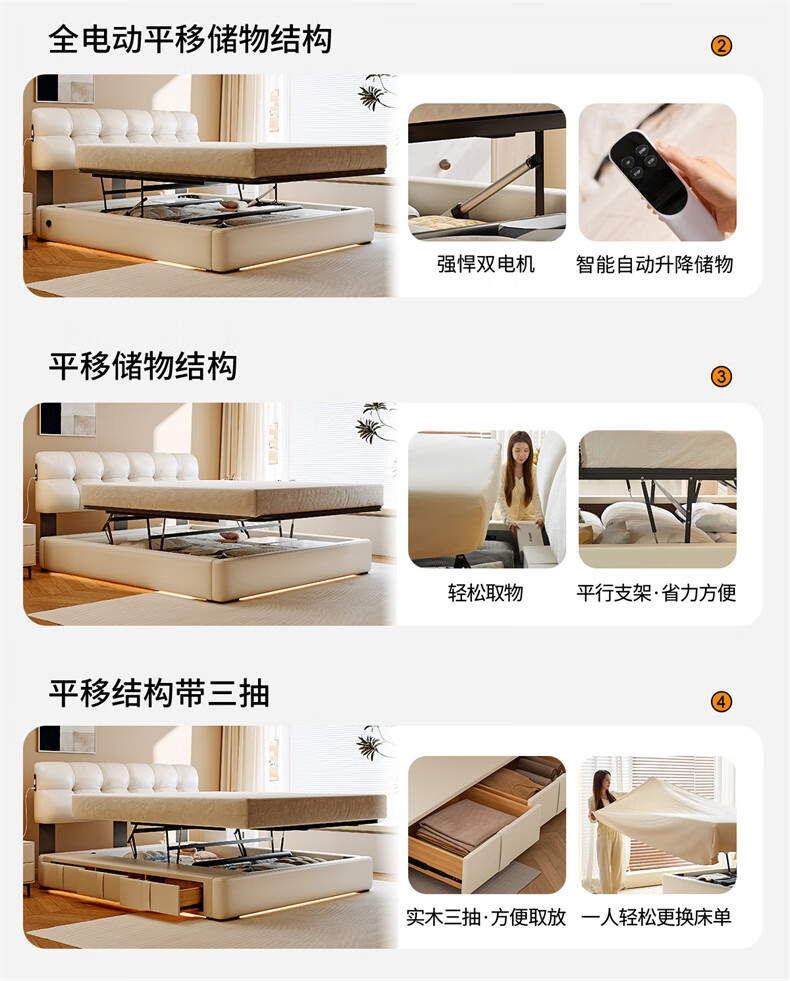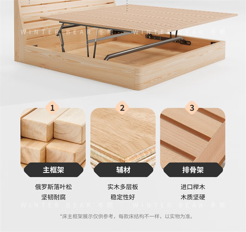 Winter Bear Puff Leather Bed Ultra-Thin Bedside Small Apartment Space-Saving Double Master Bedroom Cream High Box Sliding Storage Bed Ecological Leather Bed/Full Solid Wood Beech Rib Frame + 5-Star Mattress 1800mm*2000mm Frame Structure