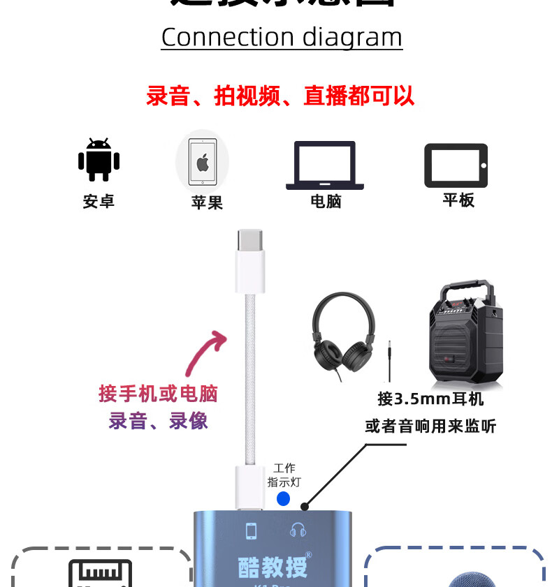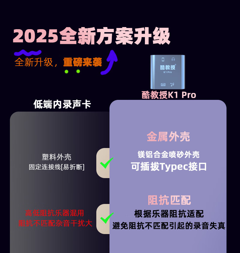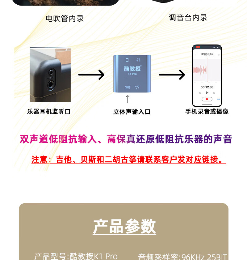 Professor Cool Electric Piano Internal Recording Converter Instrument Internal Recorder Sound Card Electronic Piano Blowing Pipe Mobile Phone Computer Recording Instrument Accessories K1Pro Upgraded High-Fidelity Model (Android + Apple + Computer)