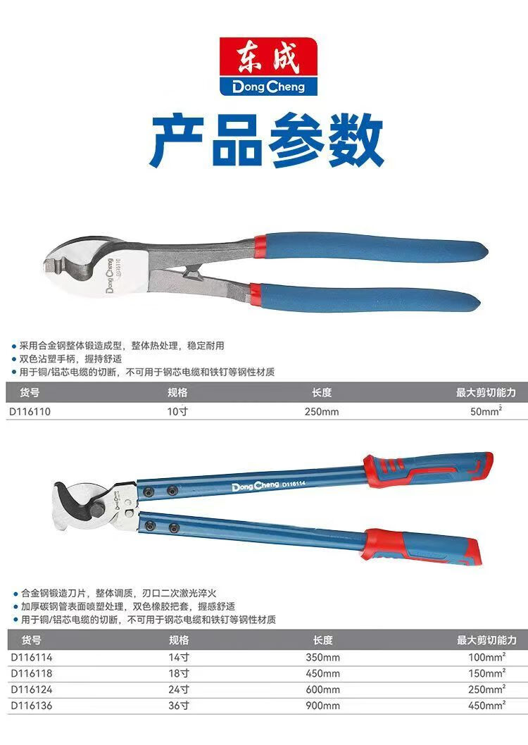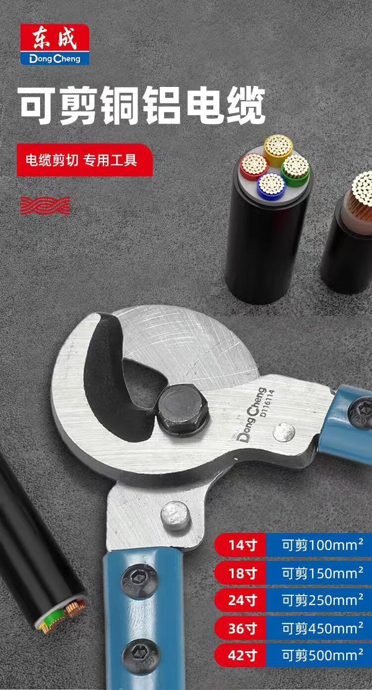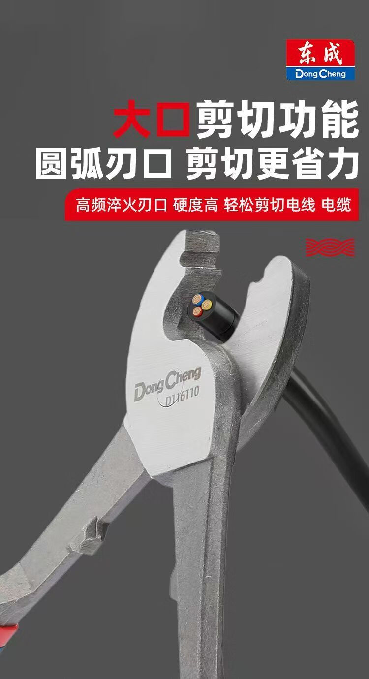 Dongcheng cable cutter, wire scissors, electric pliers, electrician cutting and breaking pliers, manual special big head scissors, 10-inch stranding pliers, 150mm/6 inches, cable cutters (Dongcheng)