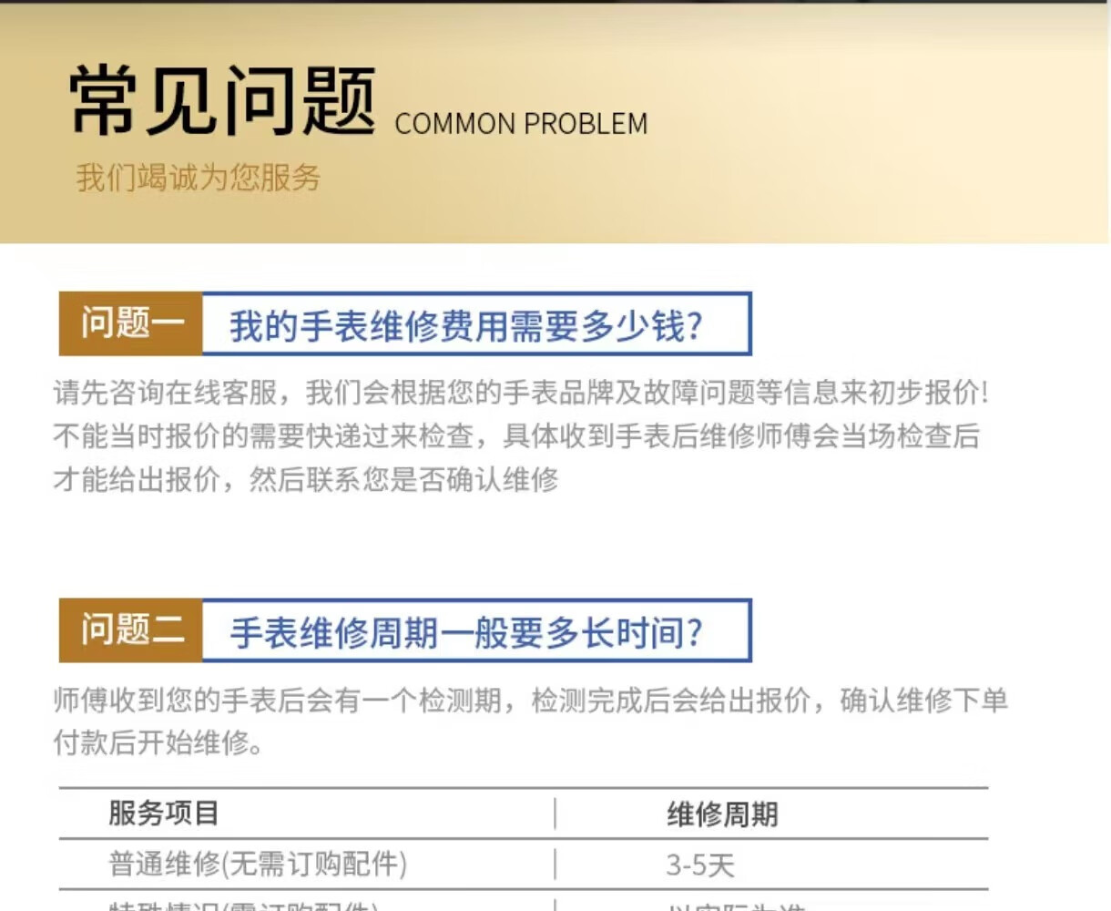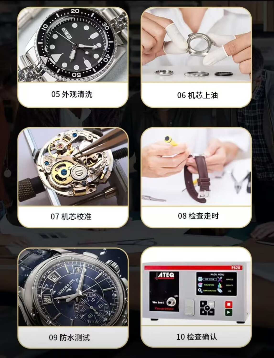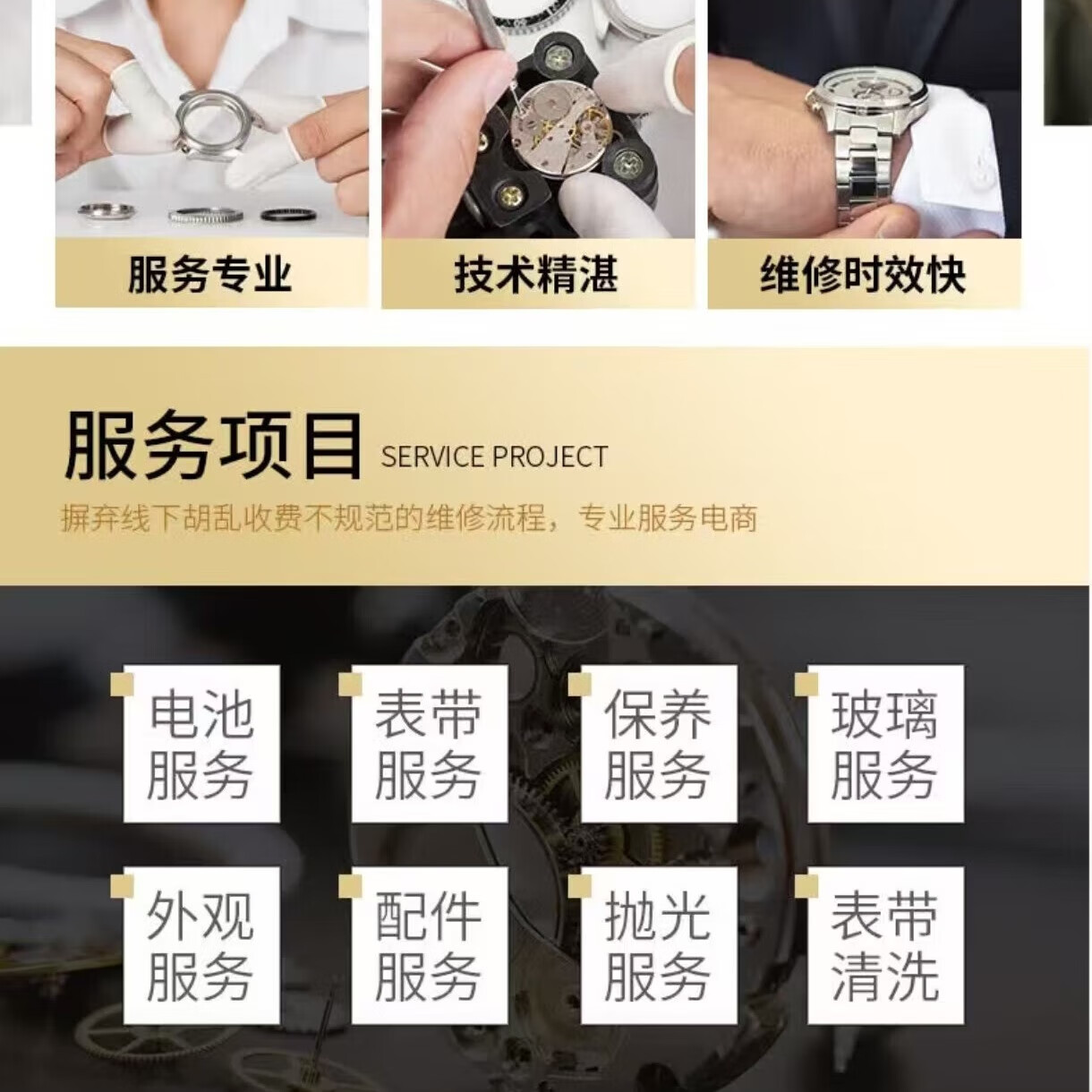 Watch repair and maintenance, battery replacement, watch mirror and strap service, watch movement cleaning, oil maintenance, polishing and refurbishment, watch repair and maintenance