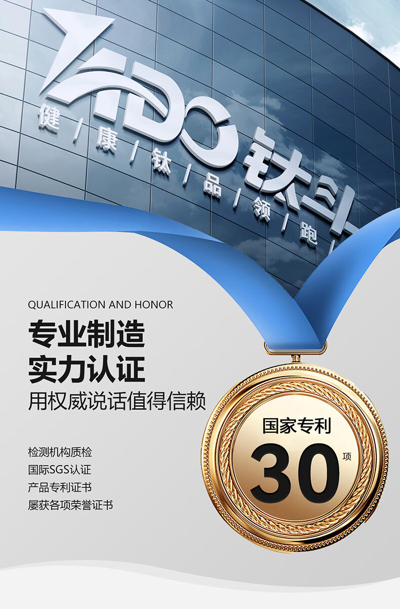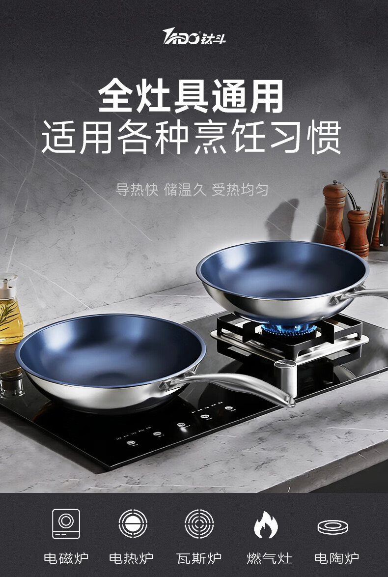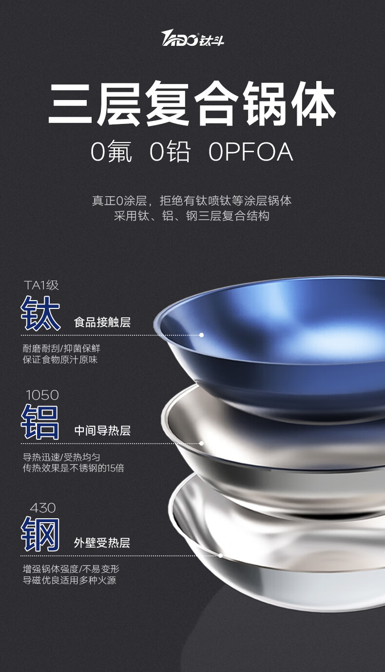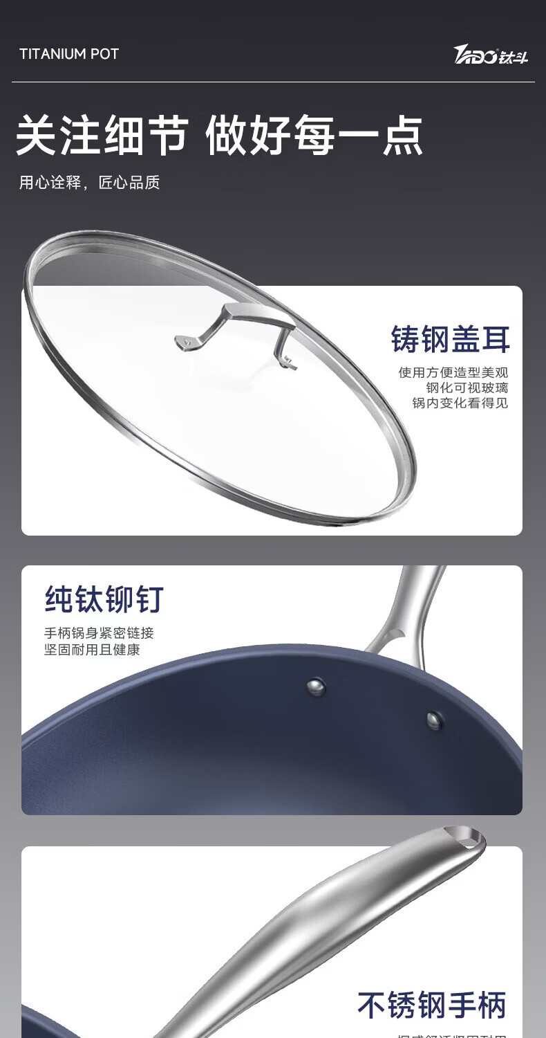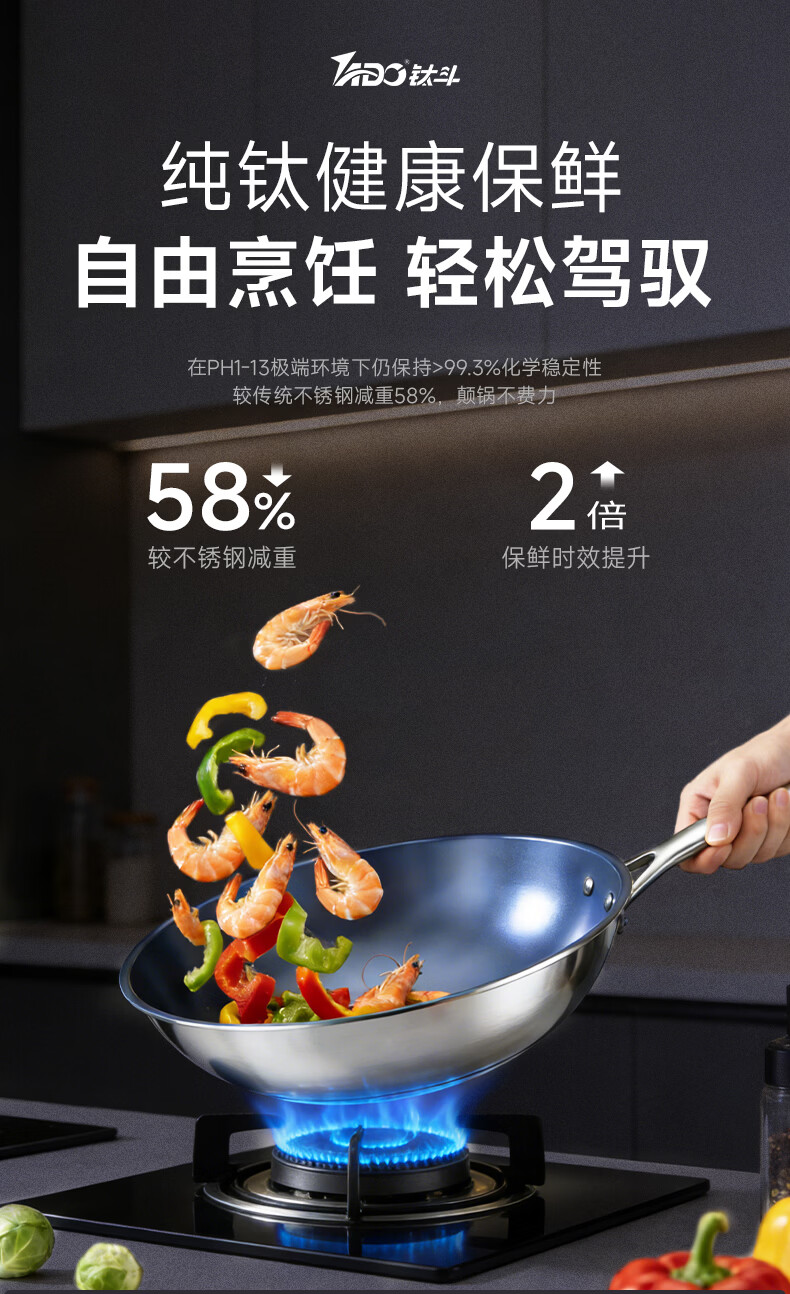 TADO titanium bucket titanium pot pure titanium wok uncoated frying pan frying pan gas induction cooker universal wok New Year gift for 2-4 people recommended large bottom all-steel handle free glass pot lid 30cm