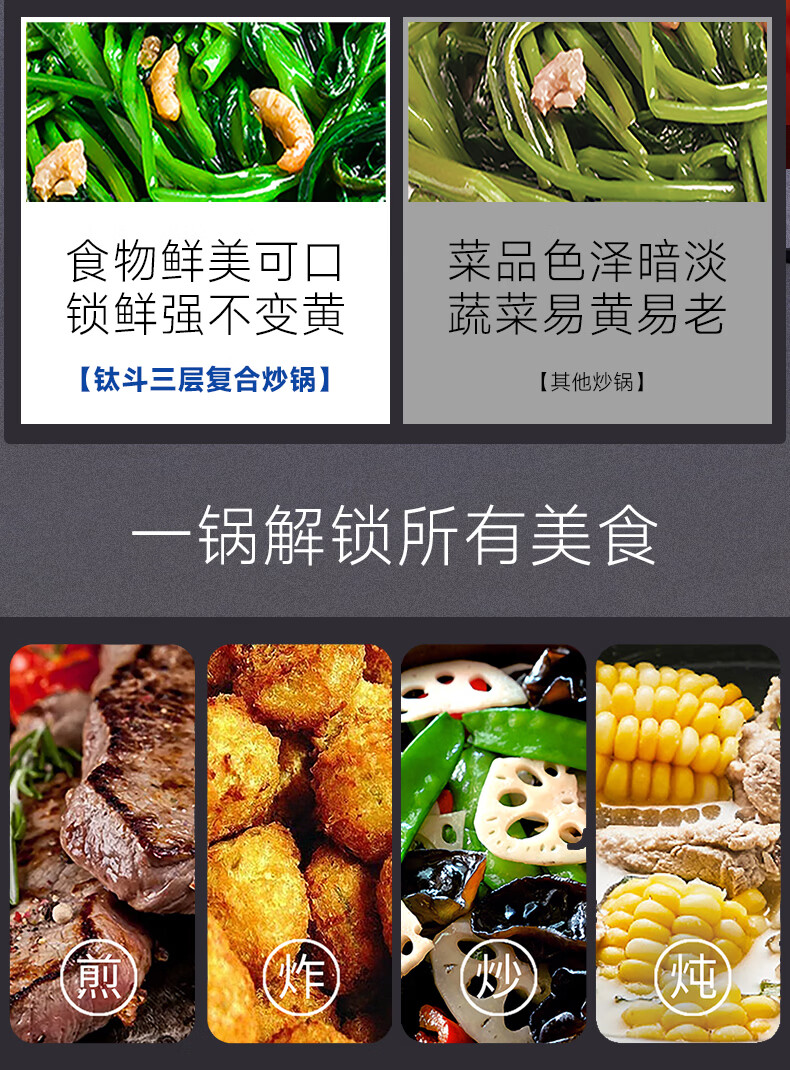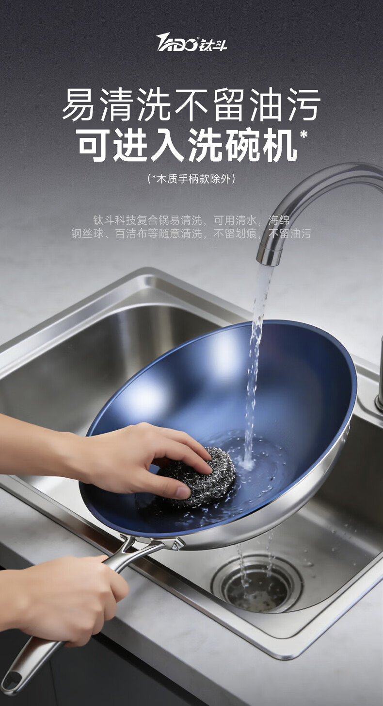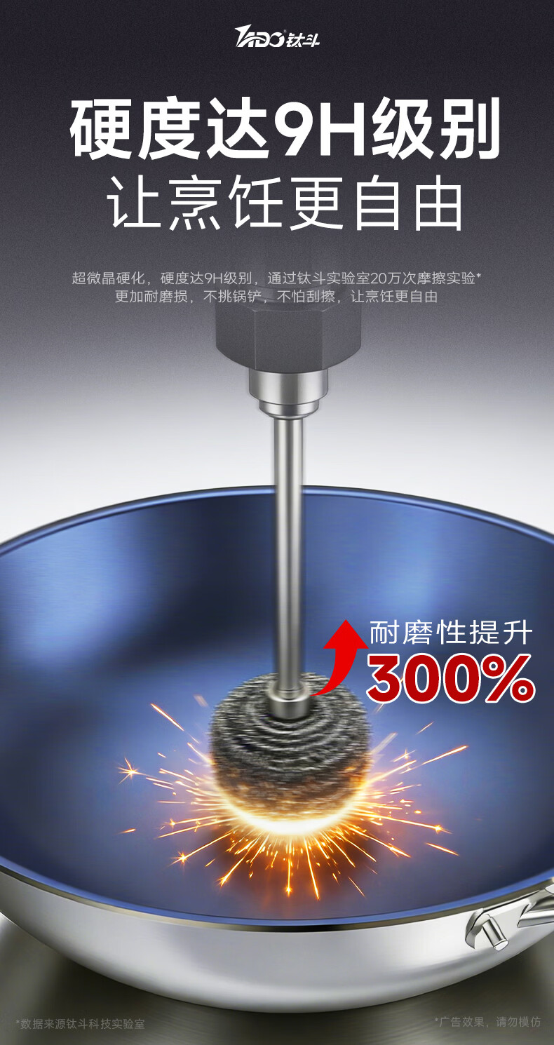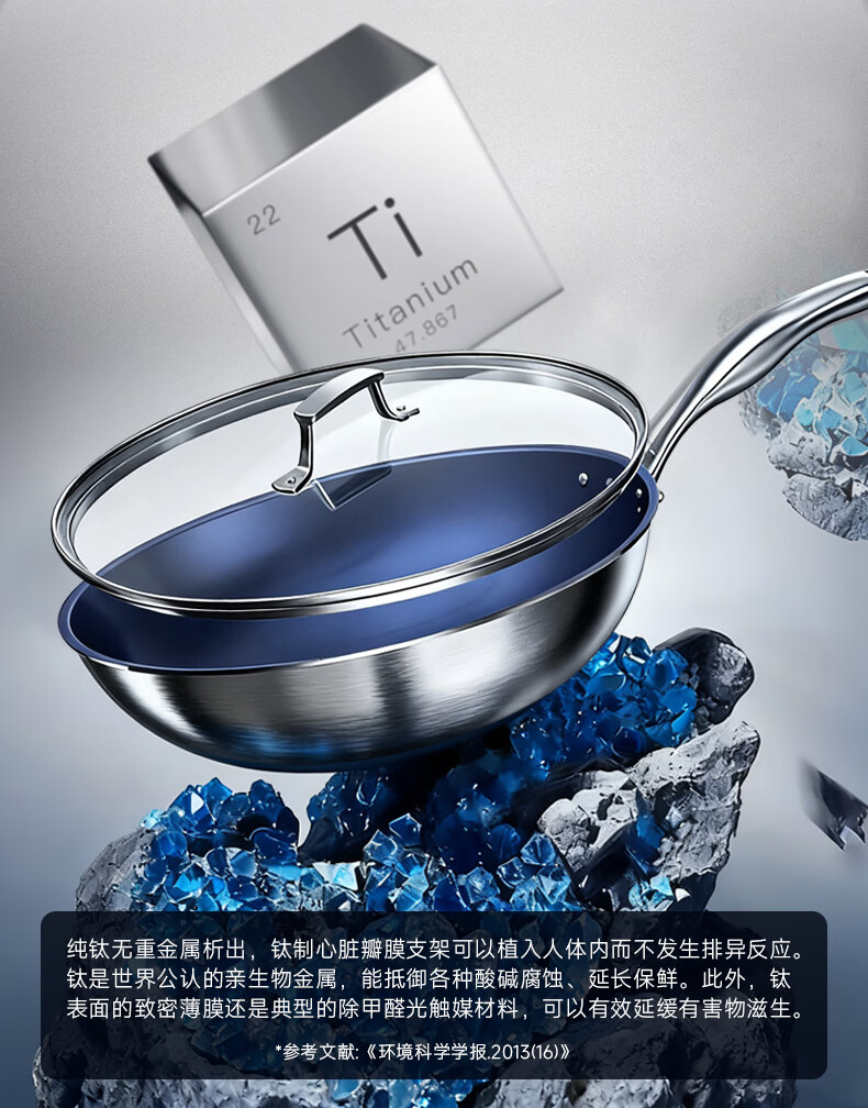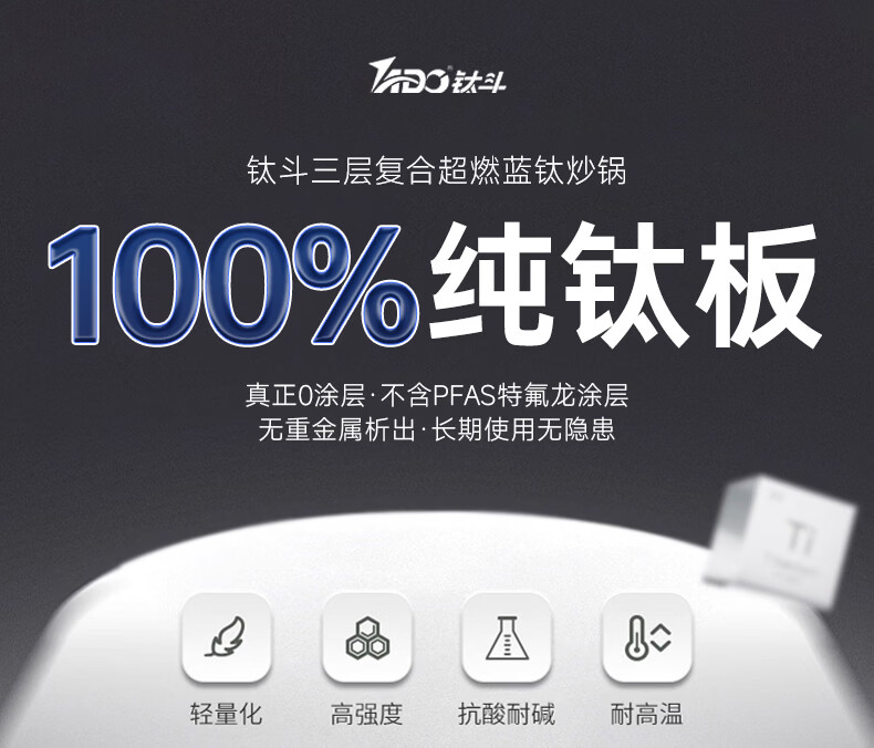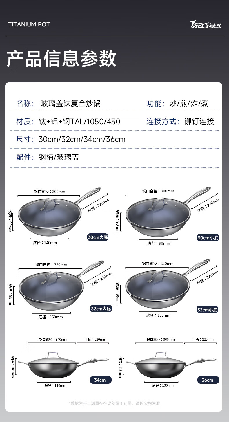 TADO titanium bucket titanium pot pure titanium wok uncoated frying pan frying pan gas induction cooker universal wok New Year gift for 2-4 people recommended large bottom all-steel handle free glass pot lid 30cm