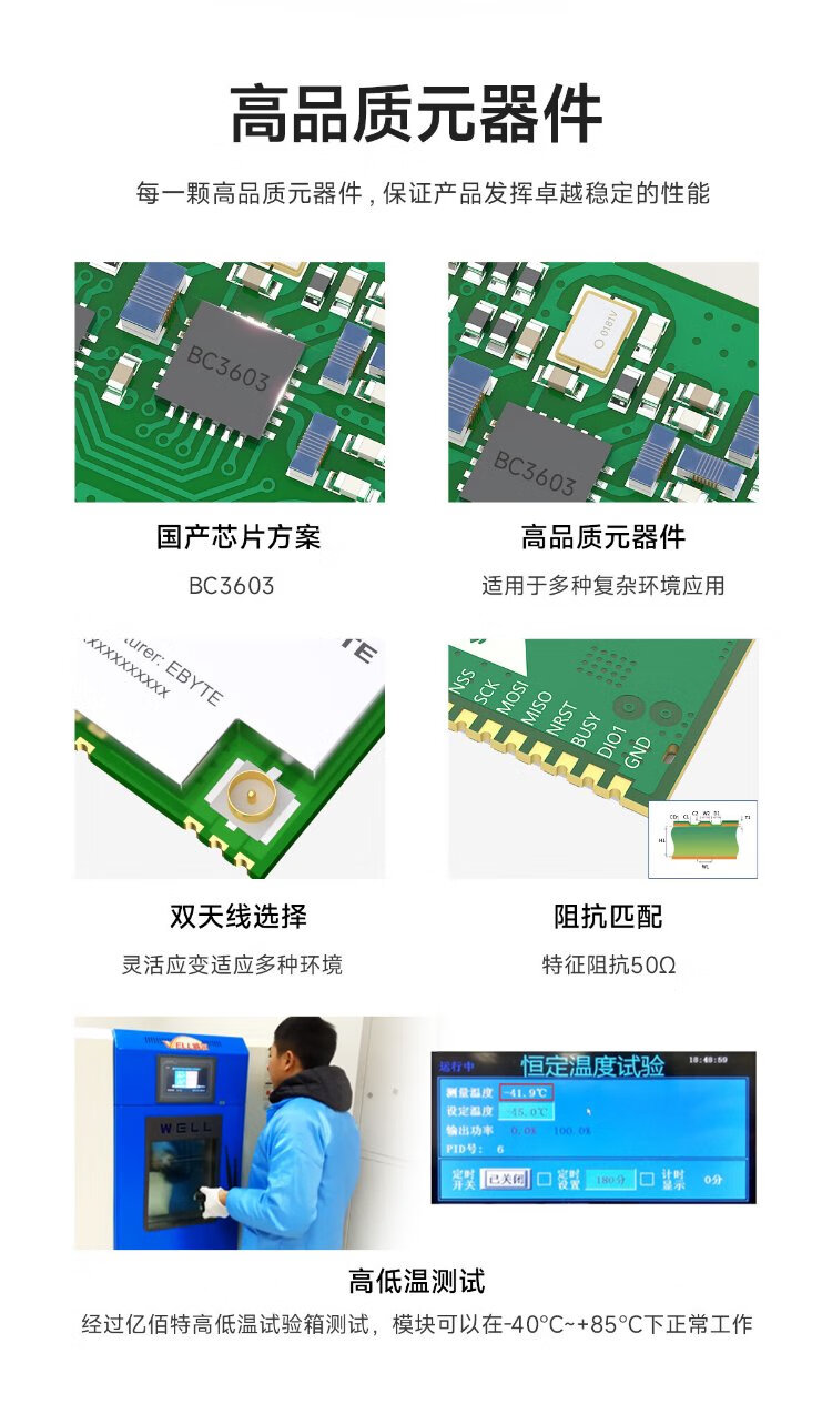 Ebyte 433/470MHz domestic wireless radio frequency module BC3603 solution long-distance communication transmission module industrial-grade small volume transparent transmission SPI EWM47-400MM20S equipped with PFC antenna