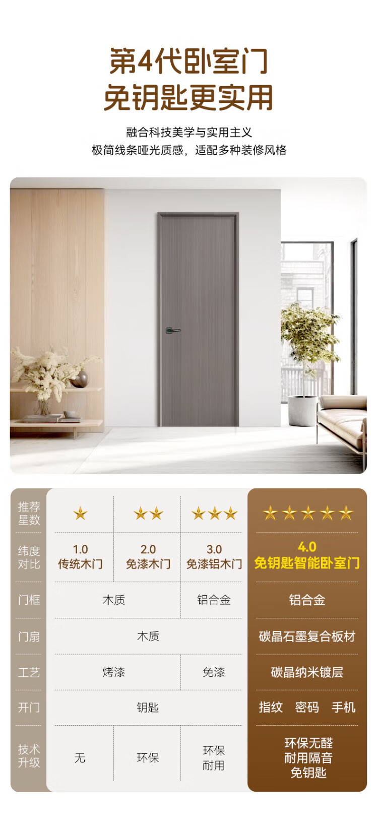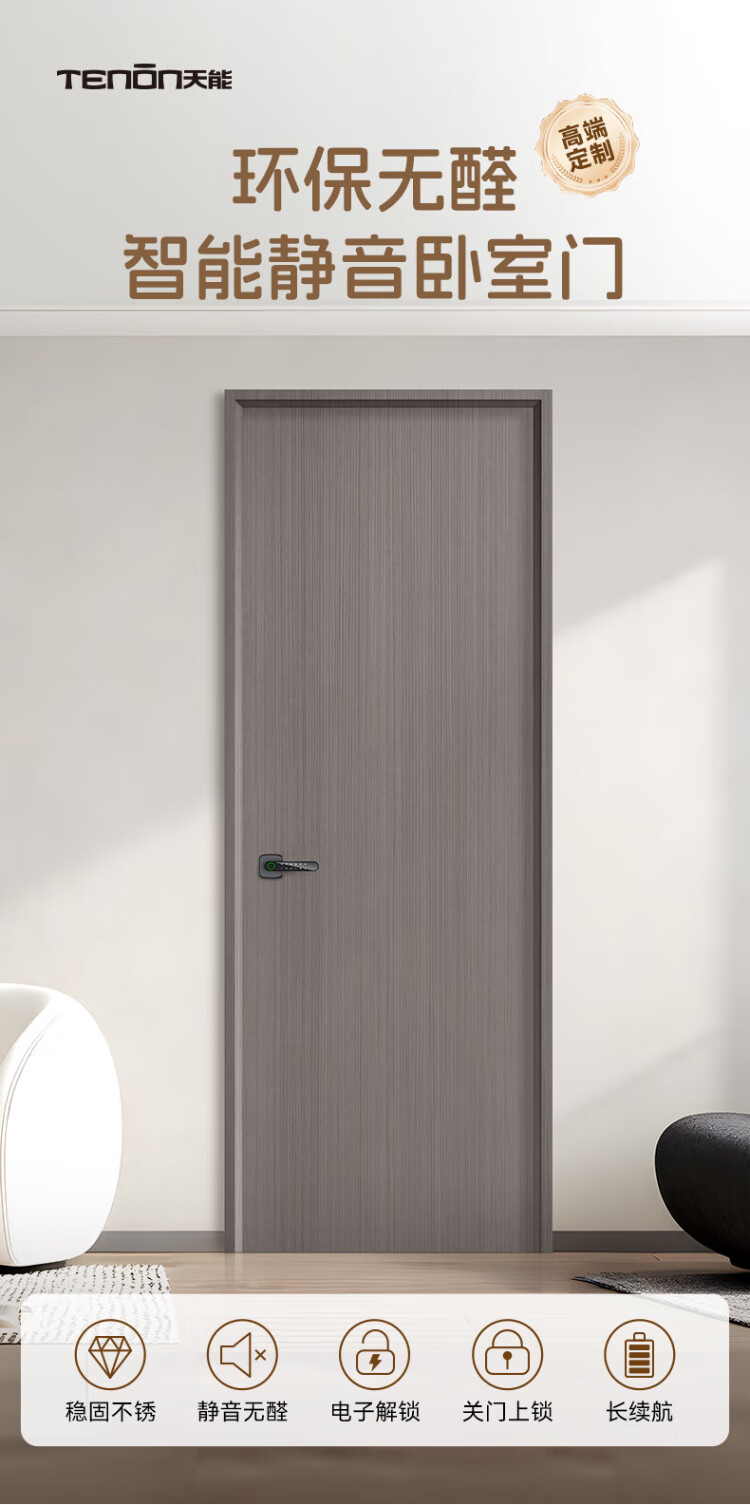 Asia Pacific Tianneng Bedroom Door Smart Wooden Door Room Door Household Aluminum Wood Door Minimalist Interior Door Soundproofing Durable Door Smart Door S1 S1 Straight Grain Oak + Mechanical Lock (Installation Included + Hardware Included)