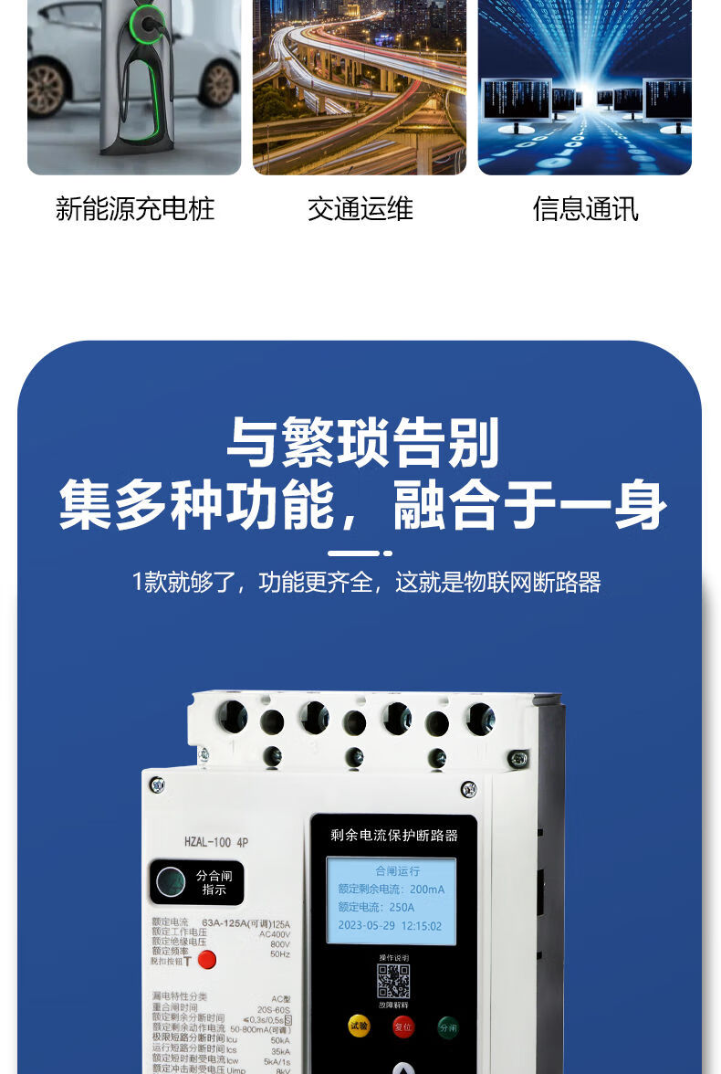 Zhewei 4G plastic case circuit breaker Internet of things residual current action leakage protection reclosing circuit breaker 125A25 800A4P without leakage guarantee 3 years of flow