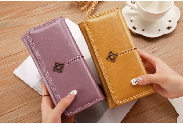 2025 New Wallet Women's Long Multifunctional Mobile Phone Bag High-Looking Buckle Practical Wallet for Mom Shopping Yellow
