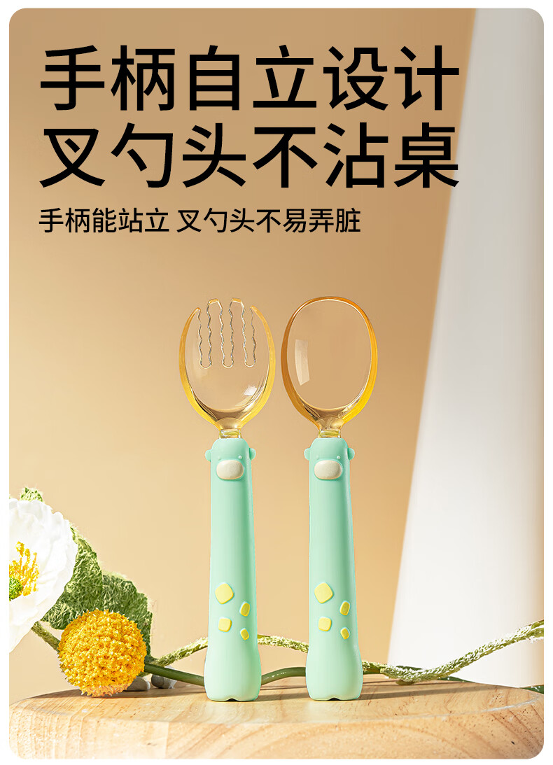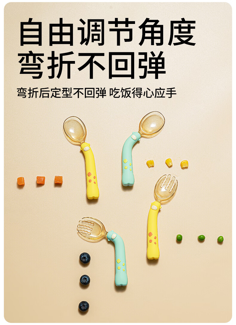 Shantou Lincun baby spoon learns to eat, trains baby to eat independently, silicone spoon, bendable fork spoon, food spoon, children's tableware PPSU fork and spoon set, light orange