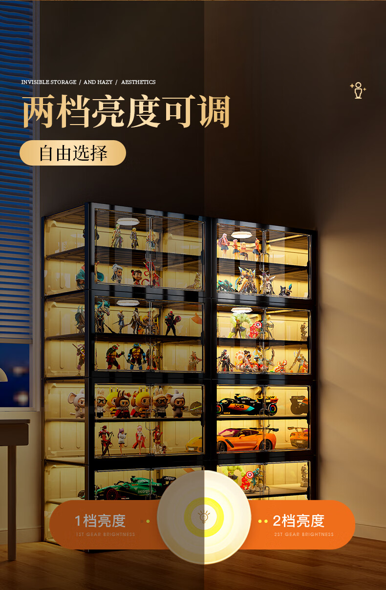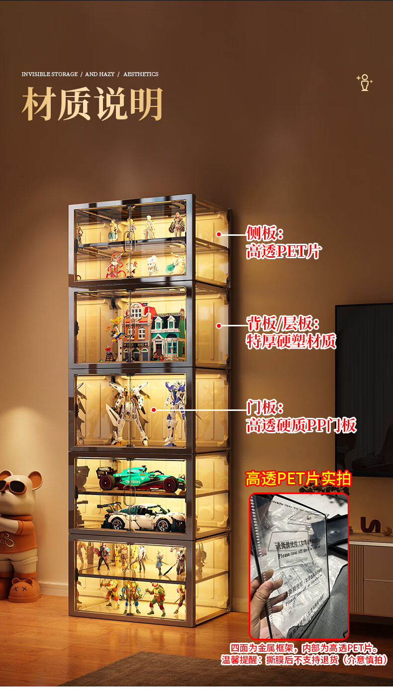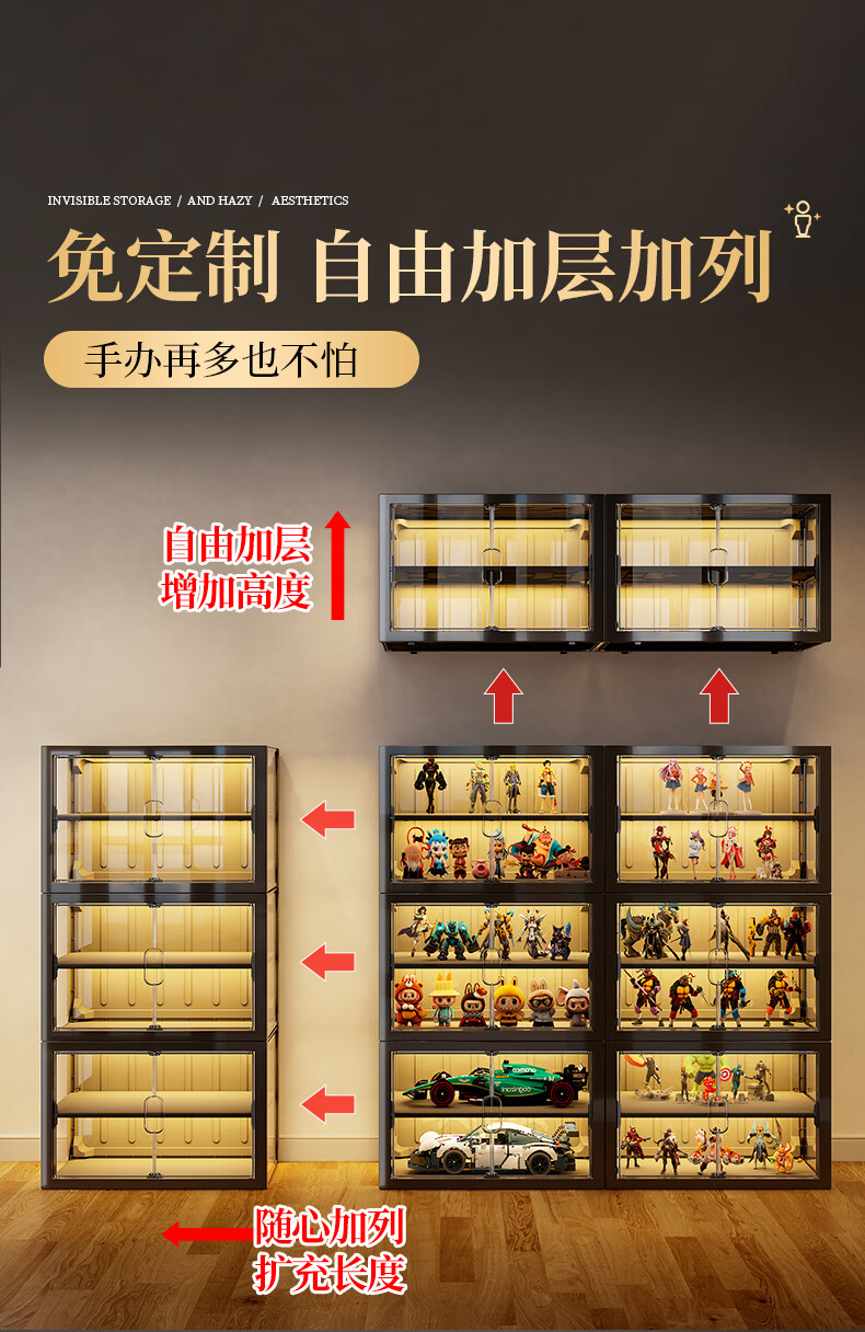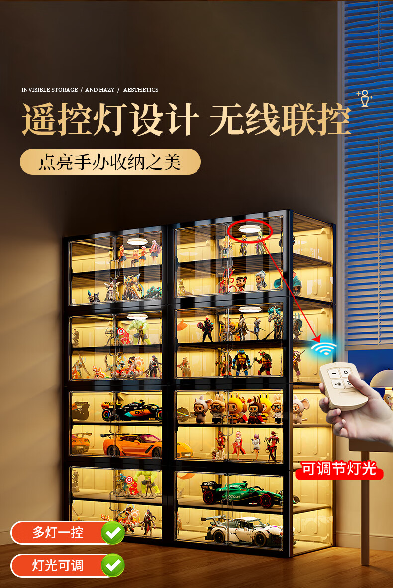 ColesHome figure display cabinet blind box display shelf up to household toy building blocks transparent applicable model storage box remote control lamp * 4 47 wide 7 layers with 3 partitions - with battery