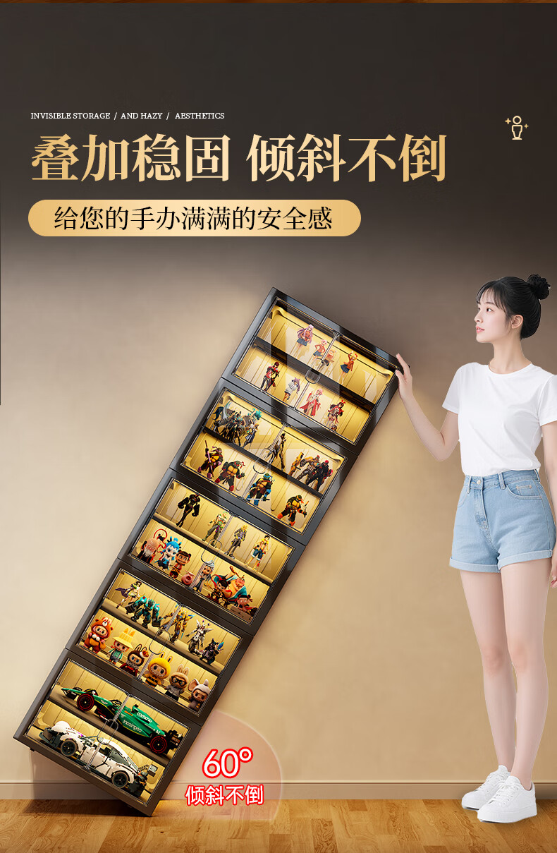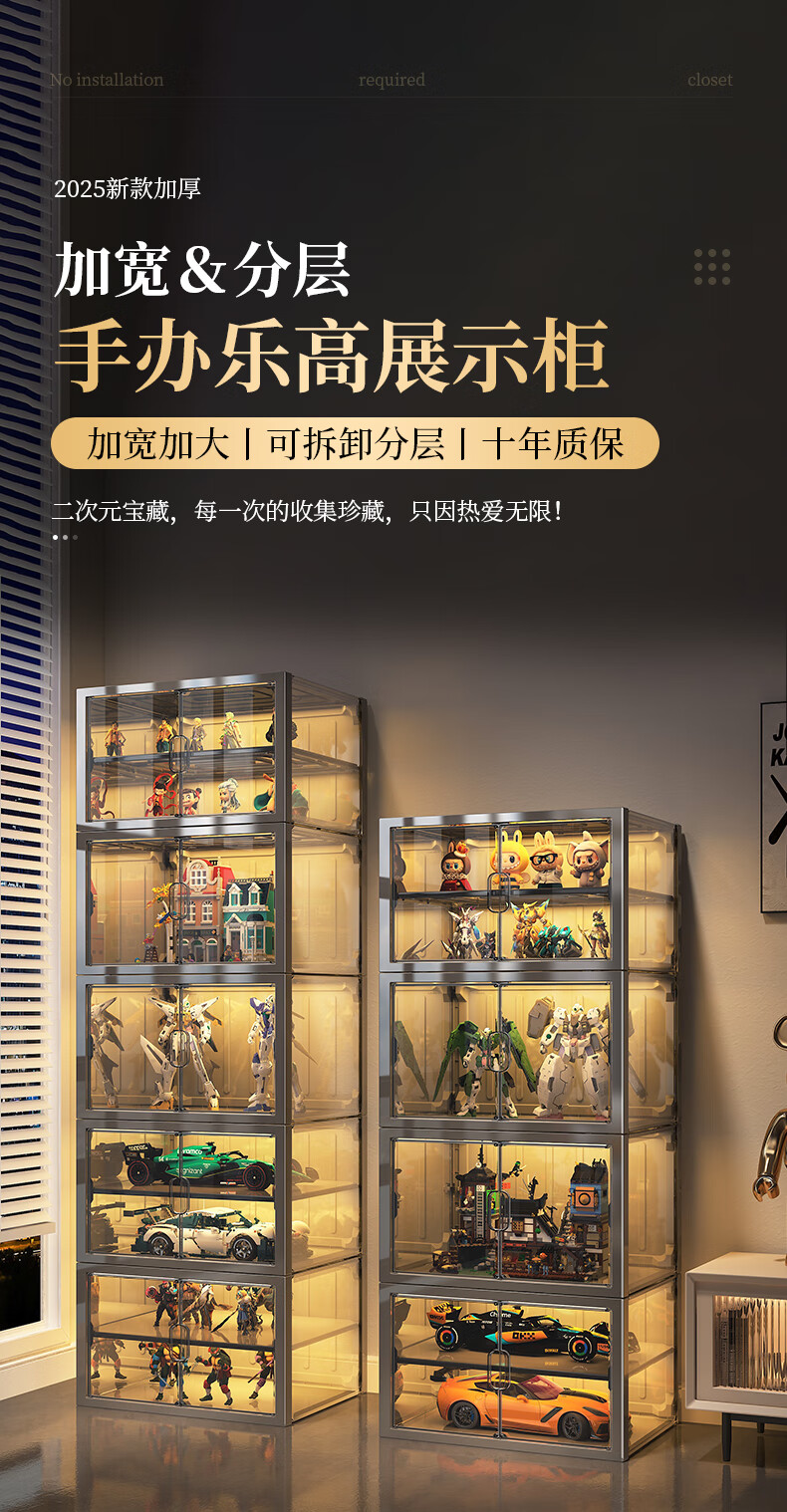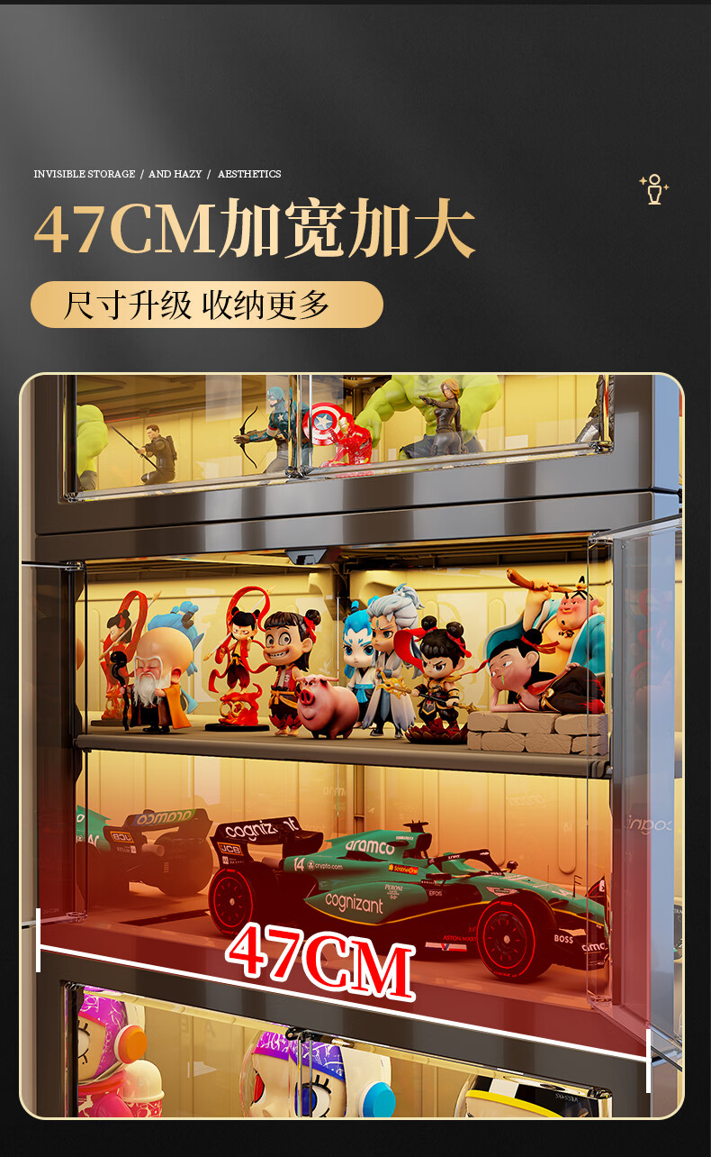 ColesHome figure display cabinet blind box display shelf up to household toy building blocks transparent applicable model storage box remote control lamp * 4 47 wide 7 layers with 3 partitions - with battery