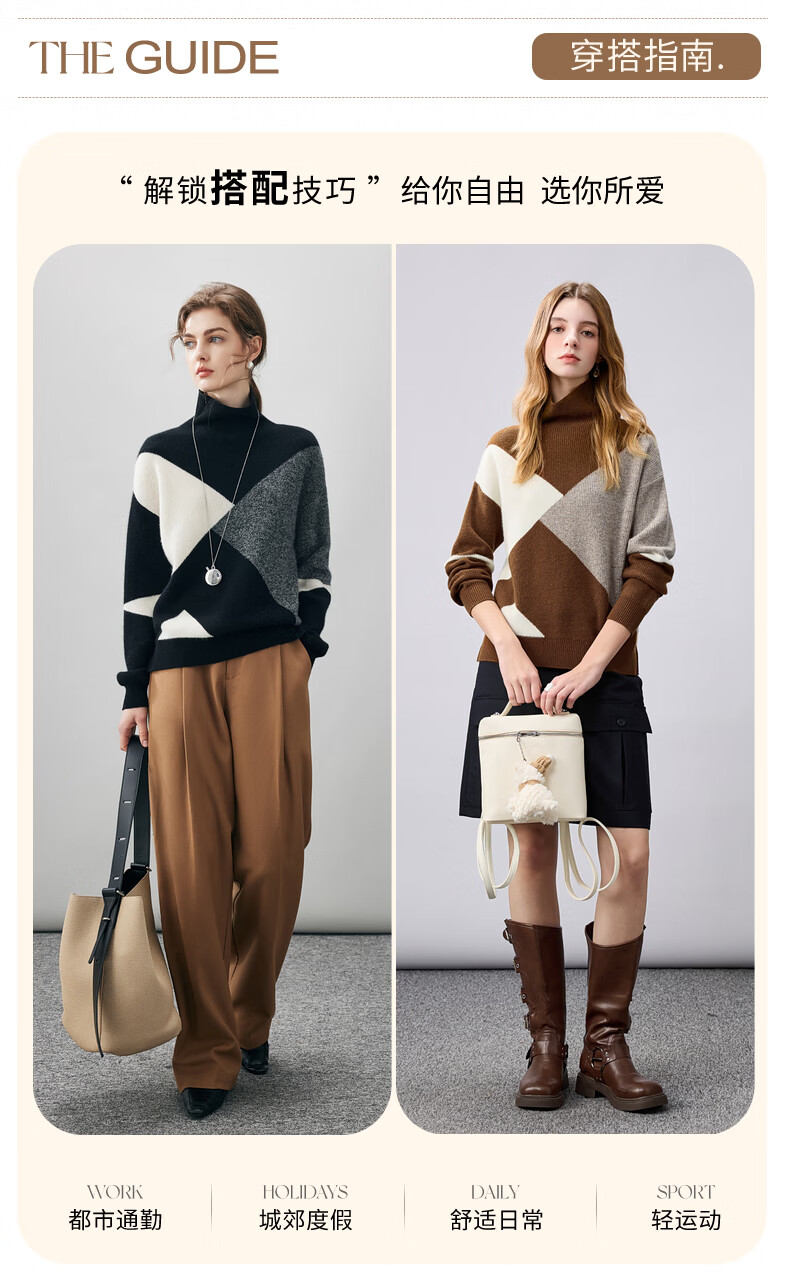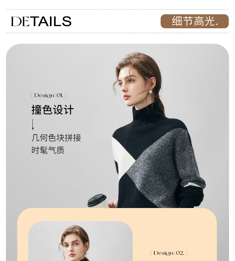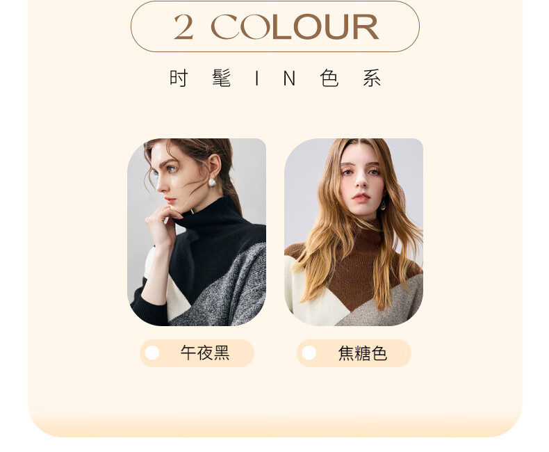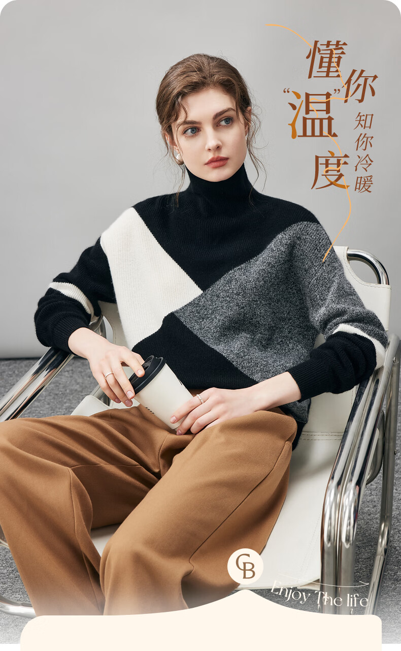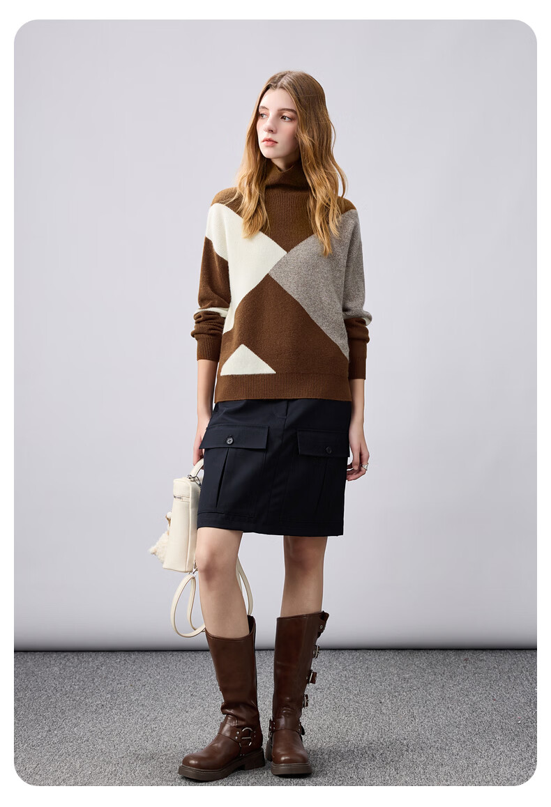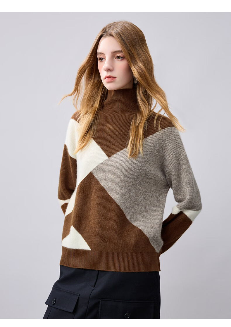 Komenboca 2025 autumn and winter new color block splicing cashmere sweater women's turtleneck sweater loose bottoming sweater midnight black XL