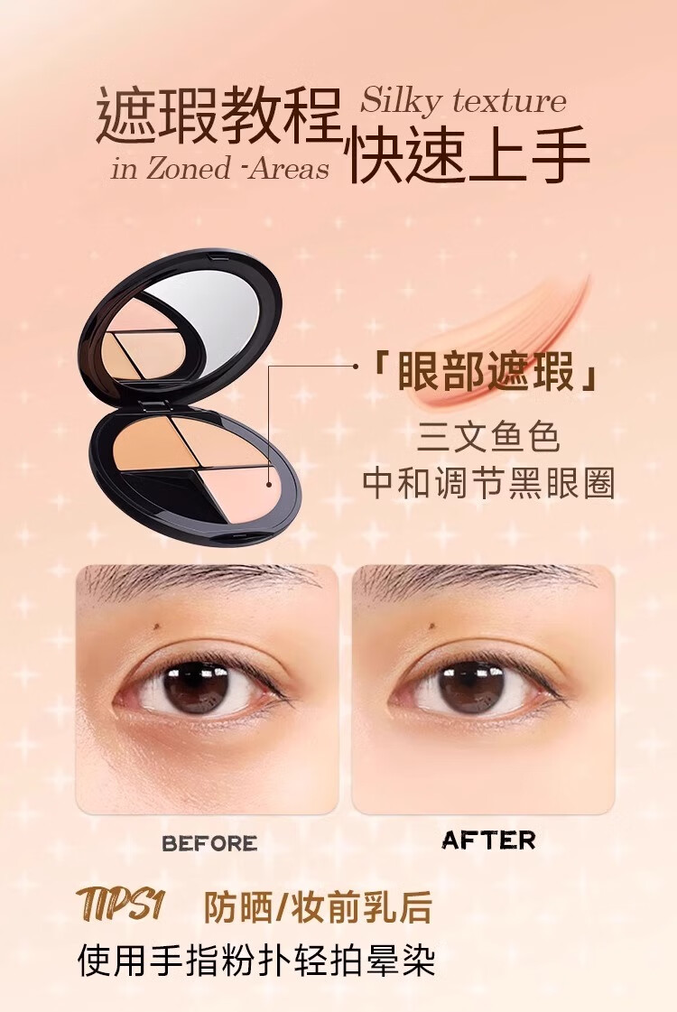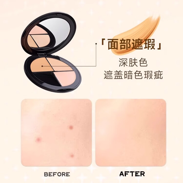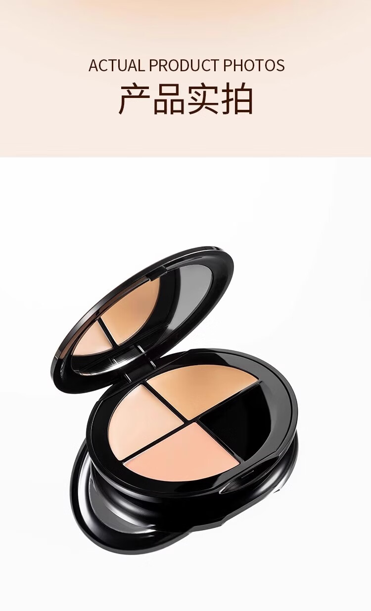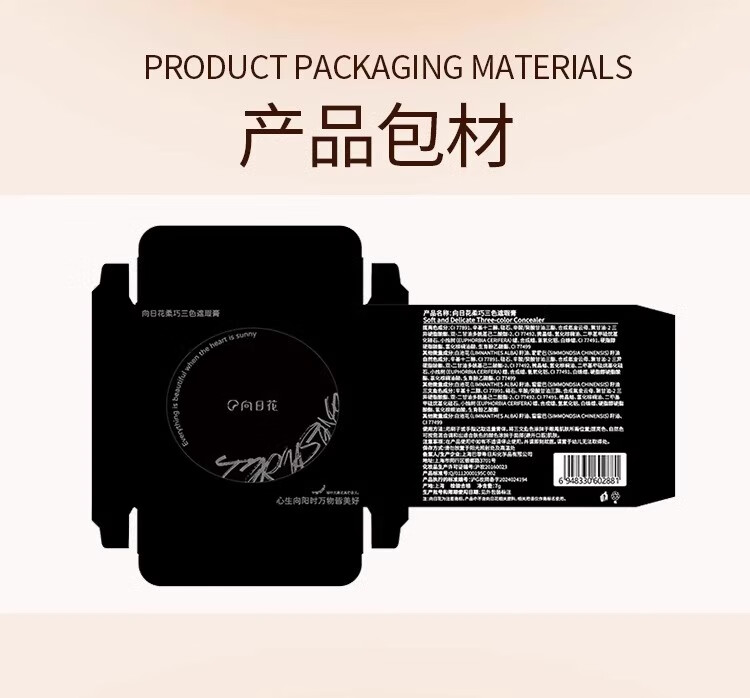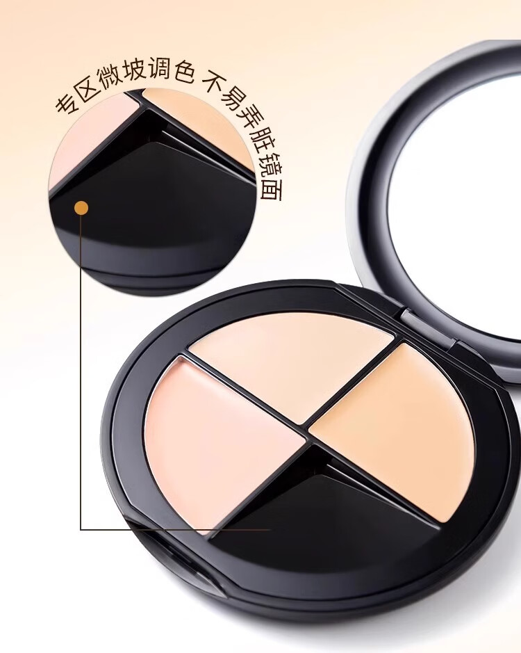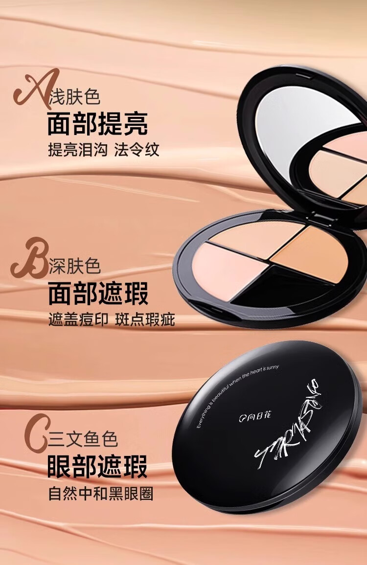 Sunflower three-color concealer palette covers acne marks, spots, dark circles, tear troughs, and nasolabial folds. Sunflower three-color concealer is compliant and long-lasting.