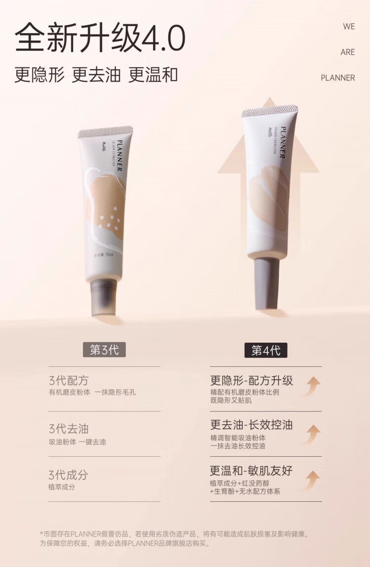 PLANNER (PLANNER) Makeup artist's same style PLANNER makeup primer matte 4.0 invisible pore remover, greasy, smooth microdermabrasion isolation makeup primer 30ml*1