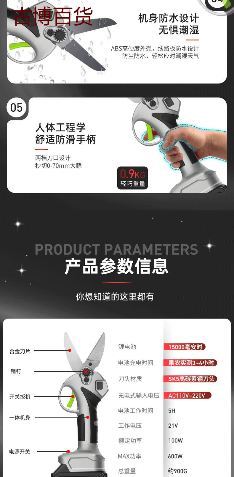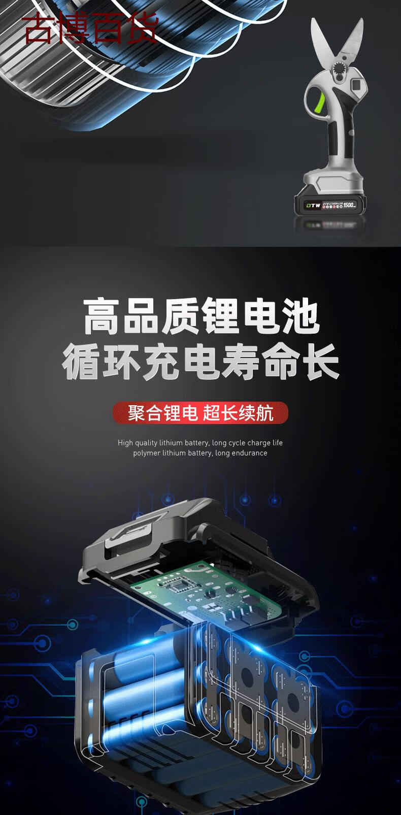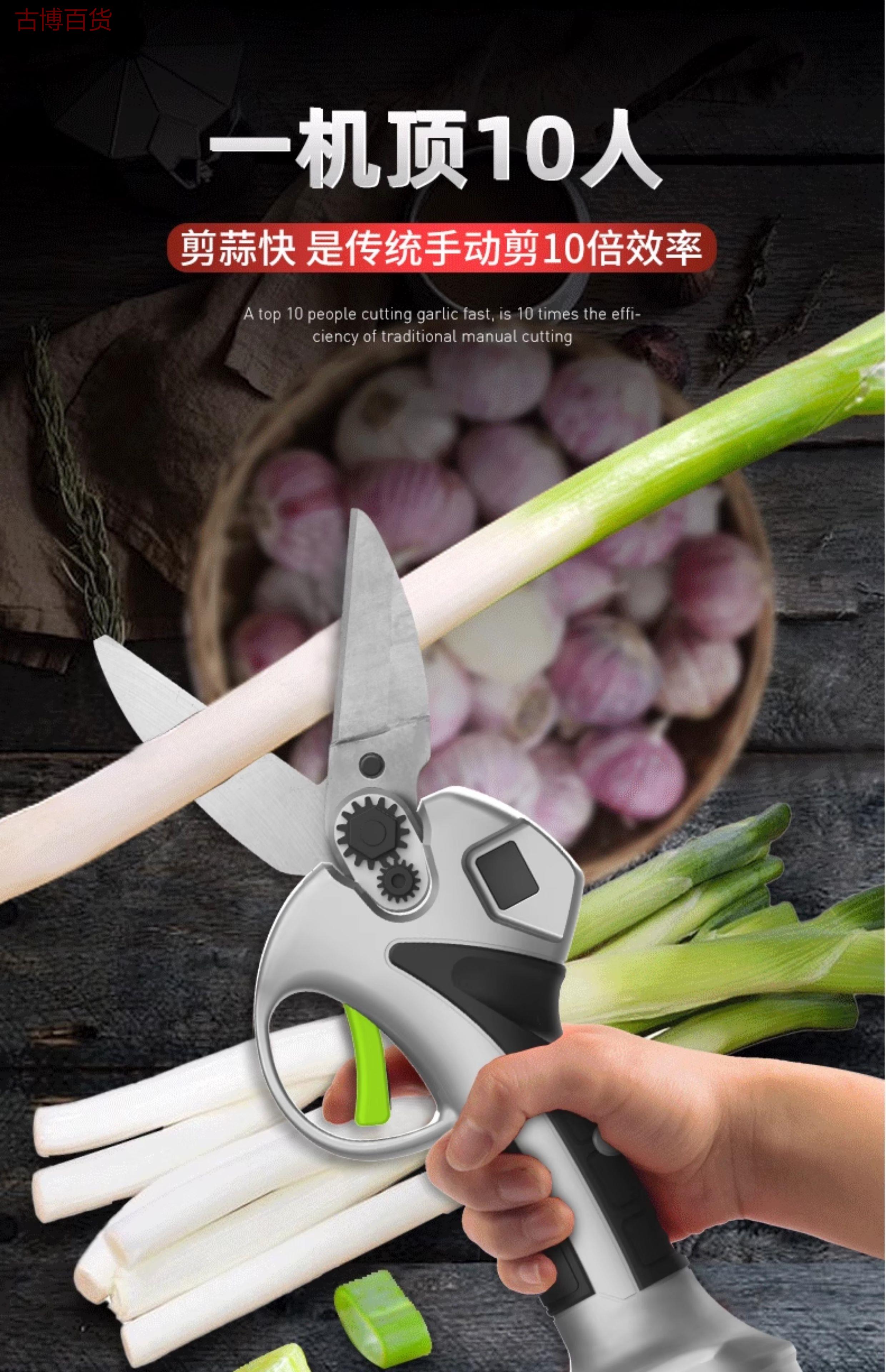 Duntewei labor-saving garlic shears lithium battery household kitchen tools brushless shear rate second cut lithium battery pruning shears new pure copper brushless garlic shears 15-core two-power digital display model