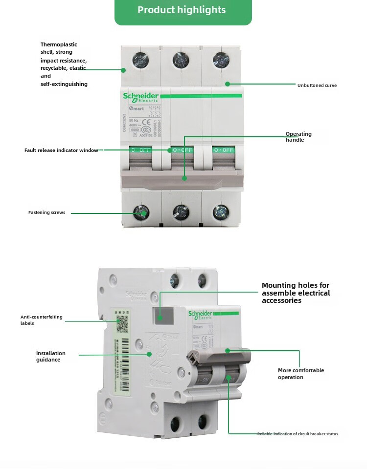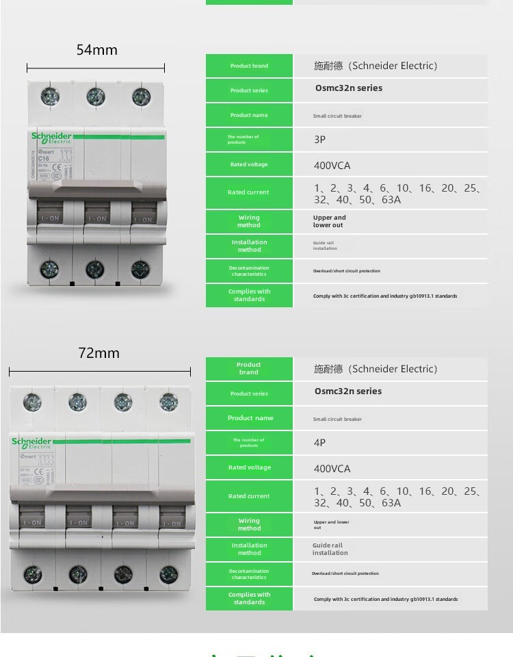 Schneider Osmc32N circuit breaker type C 1P2P3P4P-10A16A20A25-63A air switch 10A 3P