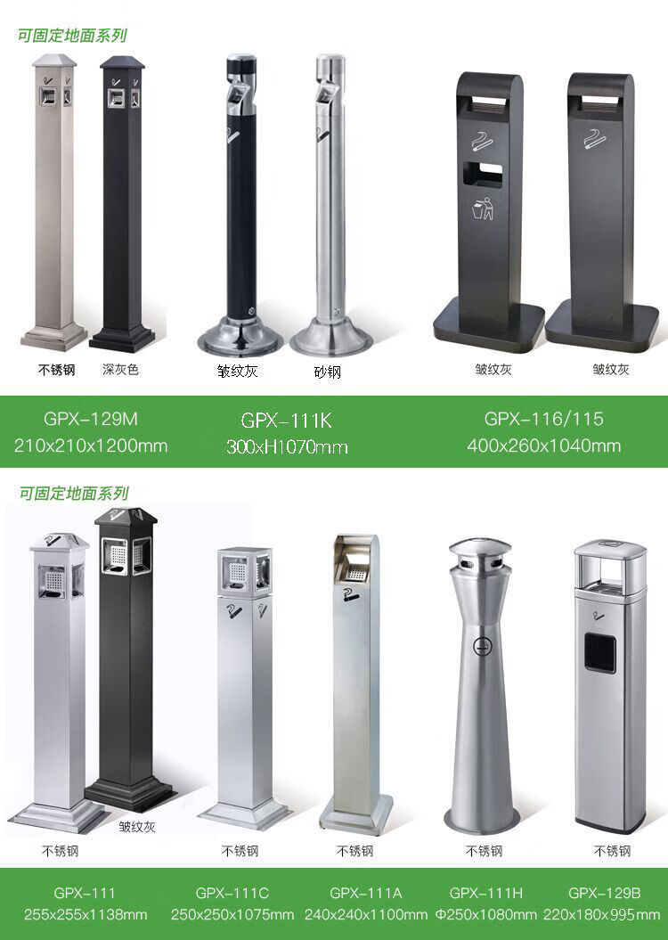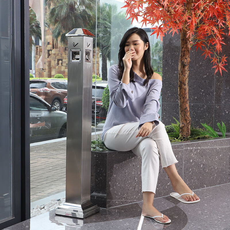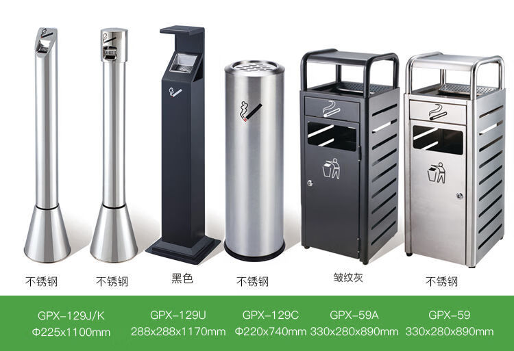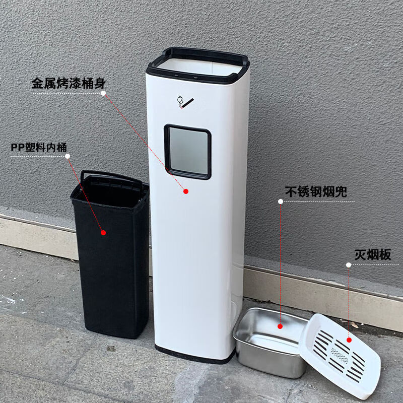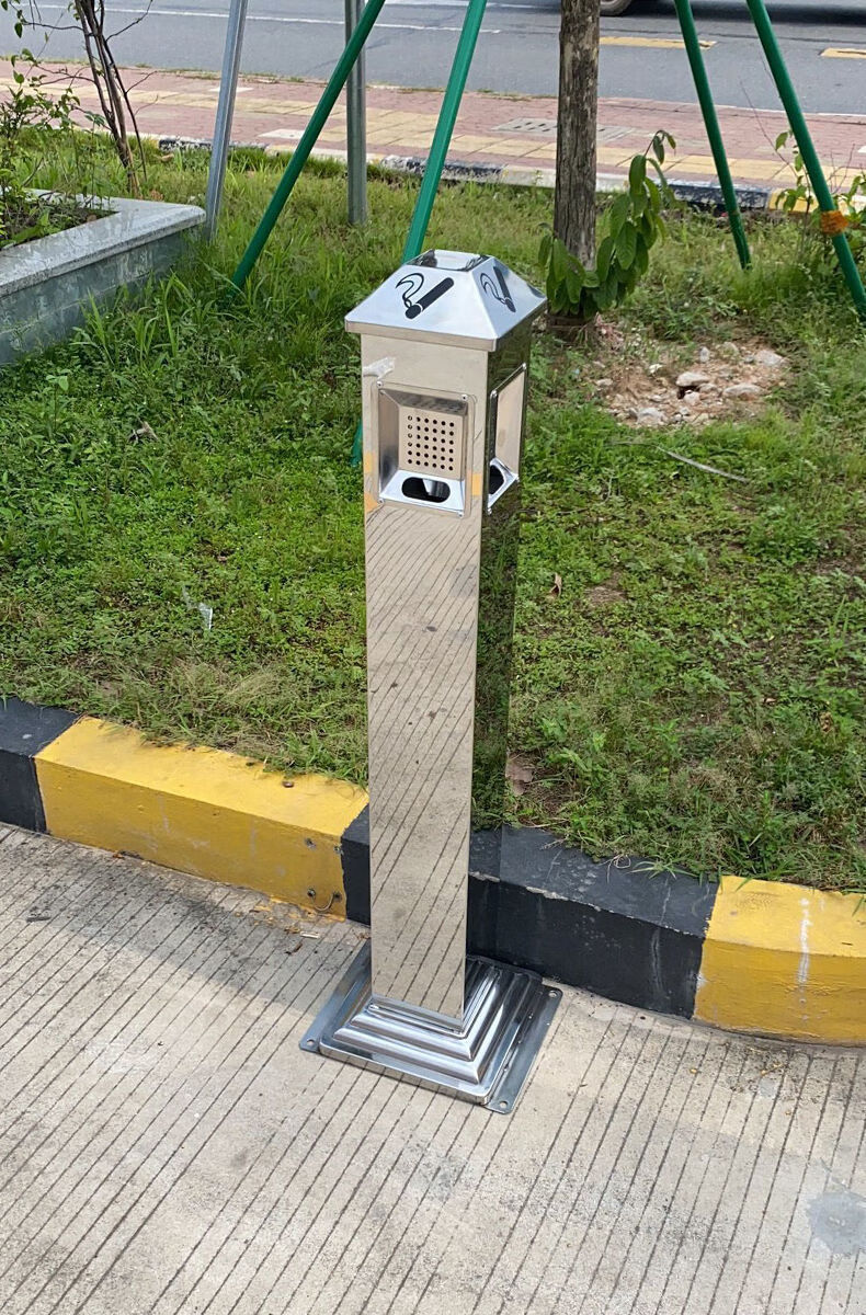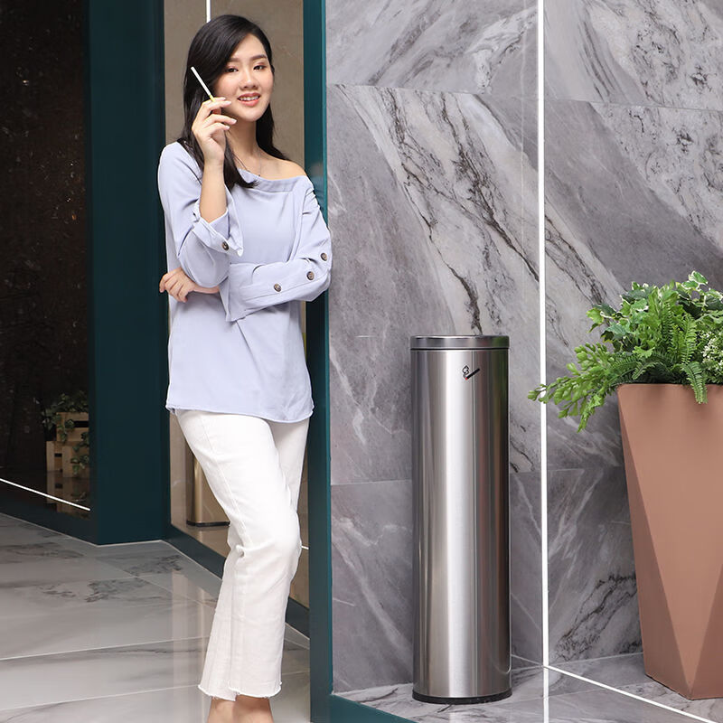 MPPMCK stainless steel vertical ash column outdoor trash can with ashtray outdoor smoking area smoke extinguishing barrel large ash thickening can be fixed 111C