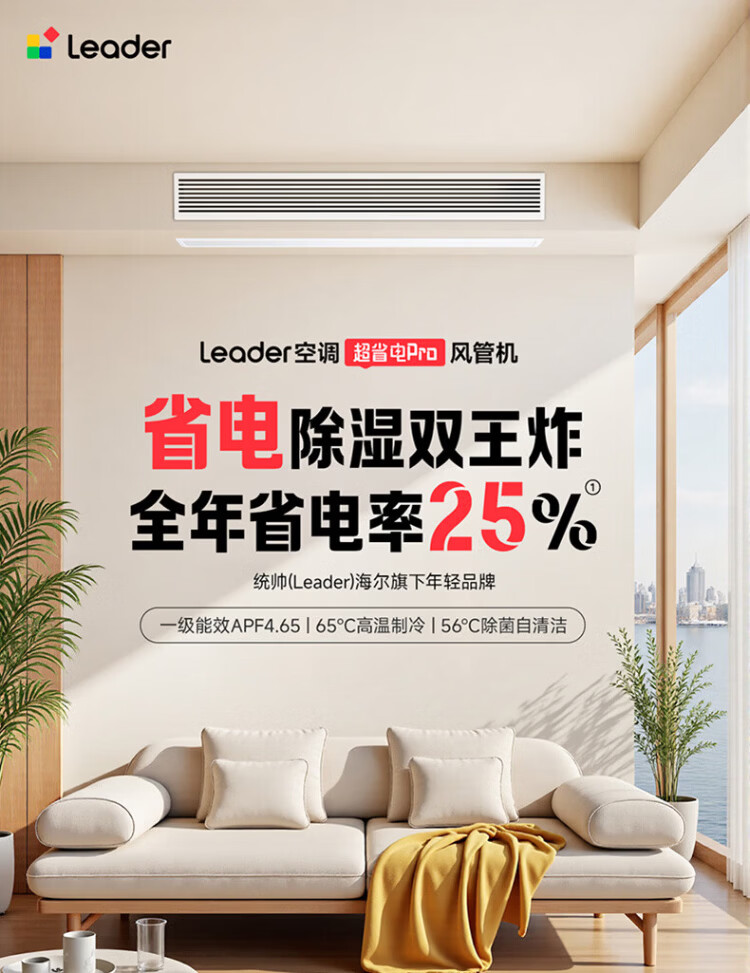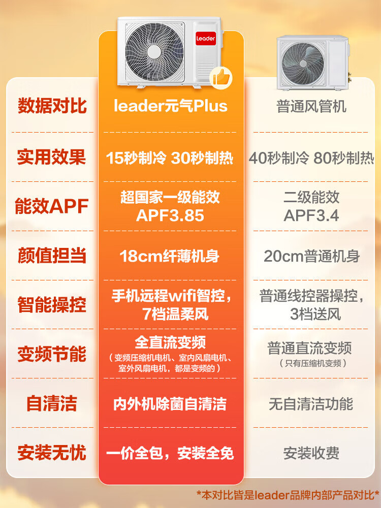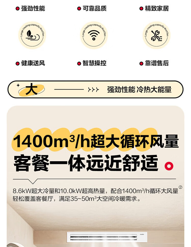 Haier produces Leader super energy-saving PULS Yuanqi 3 hp central air conditioner, one-to-one appliance, 4 hp home living room duct machine frequency conversion first-level energy efficiency package installation, small 4 hp first-level energy efficiency Yuanqi Plus (preferred for large living rooms)