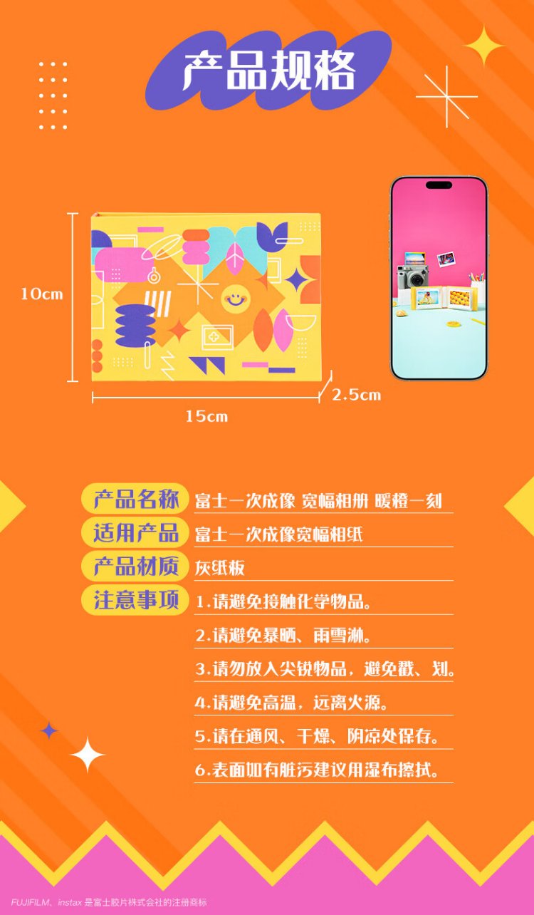FUJIFILM one-time imaging instax wide format photo album warm orange moment wide format photo album warm orange moment