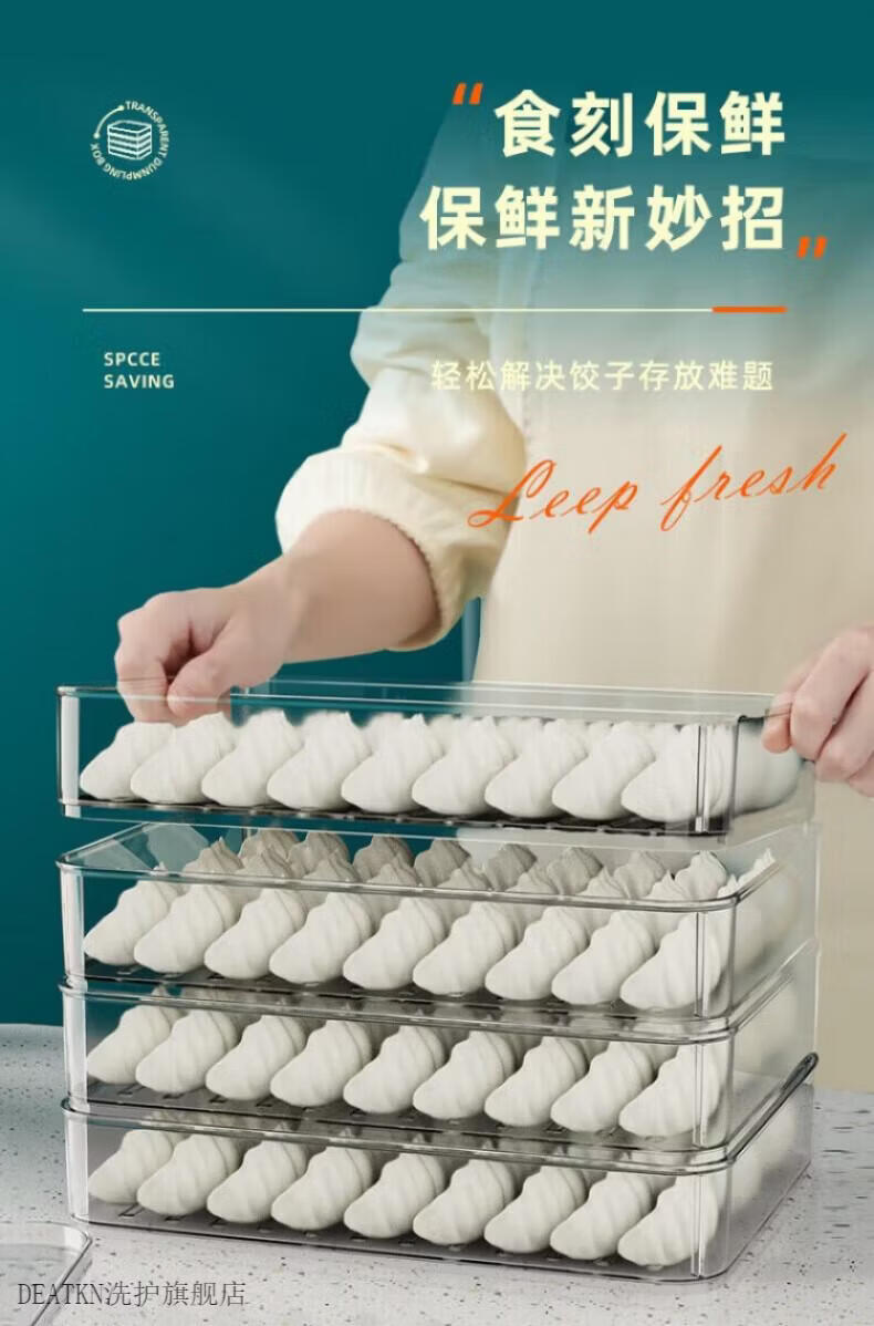DEATKN German dumpling box refrigerator storage freezer box wonton crisper quick-frozen compartment multi-layer packaging large capacity two covers and two layers can hold about 80-100 dumplings by default