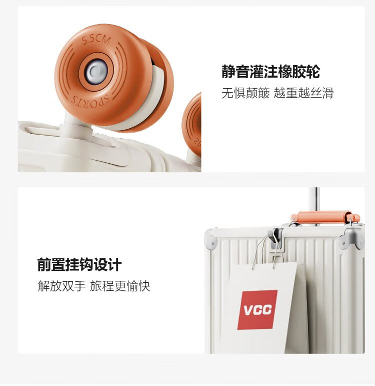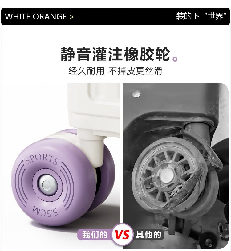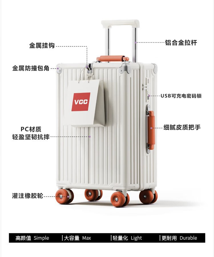 VCC suitcase for women, good-looking, large-capacity trolley case, password box, cocoa suitcase, business trip, student suitcase, male, white and purple, 20 inches