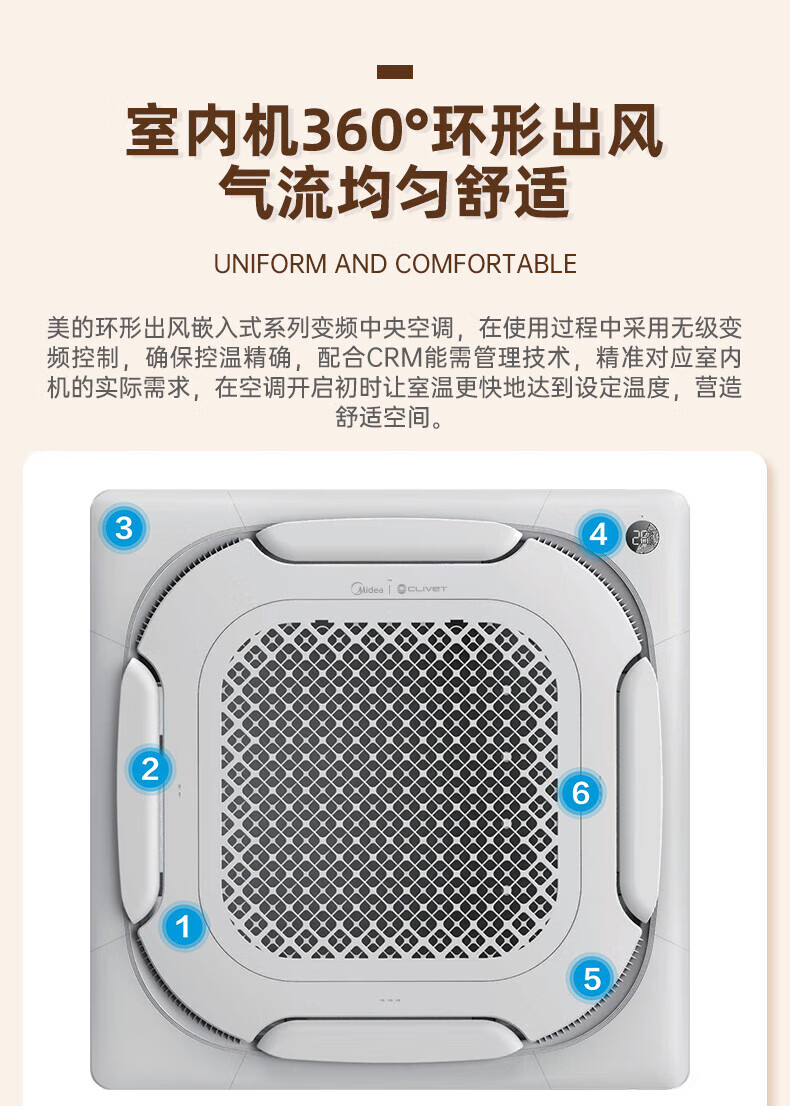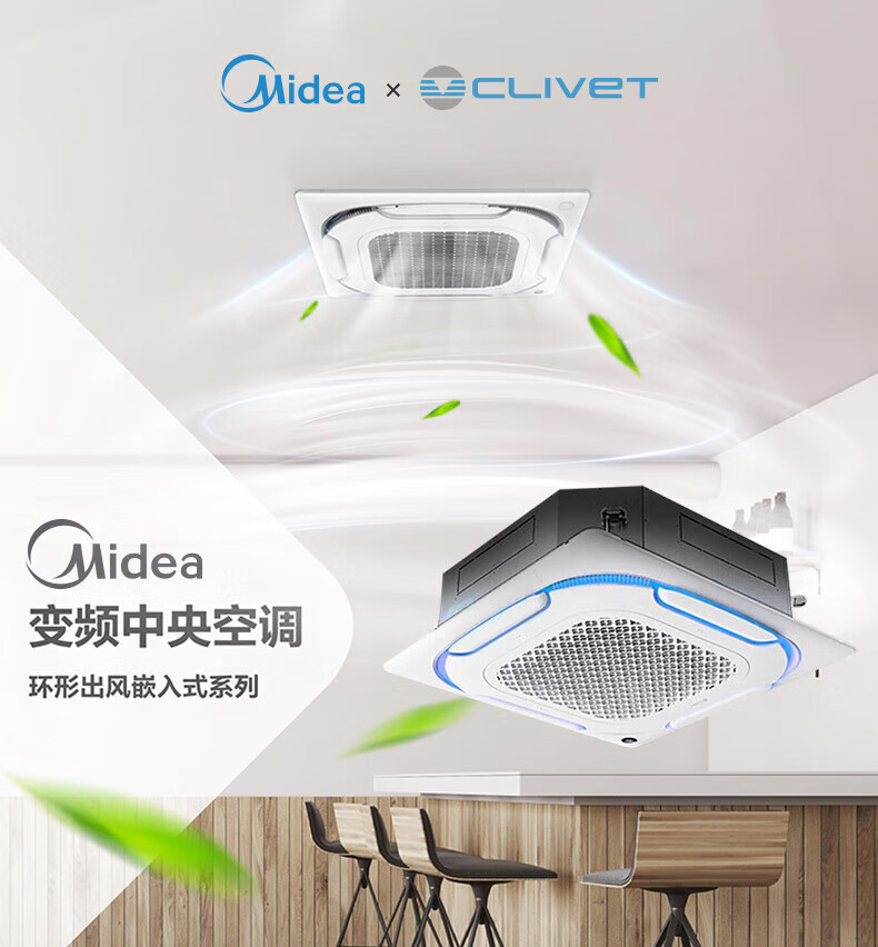 Midea five-horsepower ceiling machine, high static pressure, high energy efficiency central air conditioner, 2-horsepower, 3-horsepower Clavo series ceiling air conditioner, inverter heating and cooling, embedded office ceiling 220V patio machine, 5-horsepower, secondary energy efficiency 220V (bare metal)