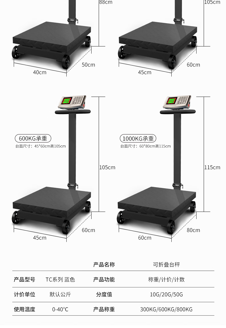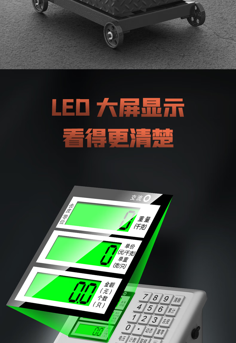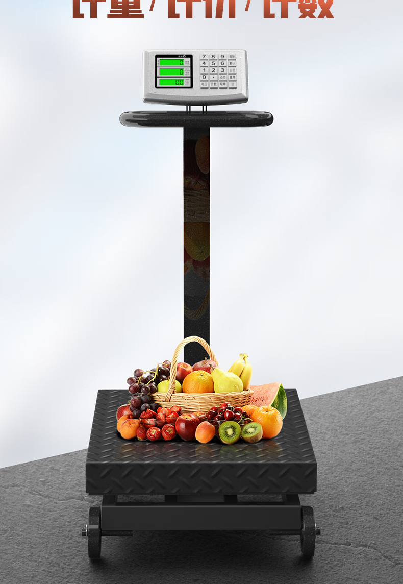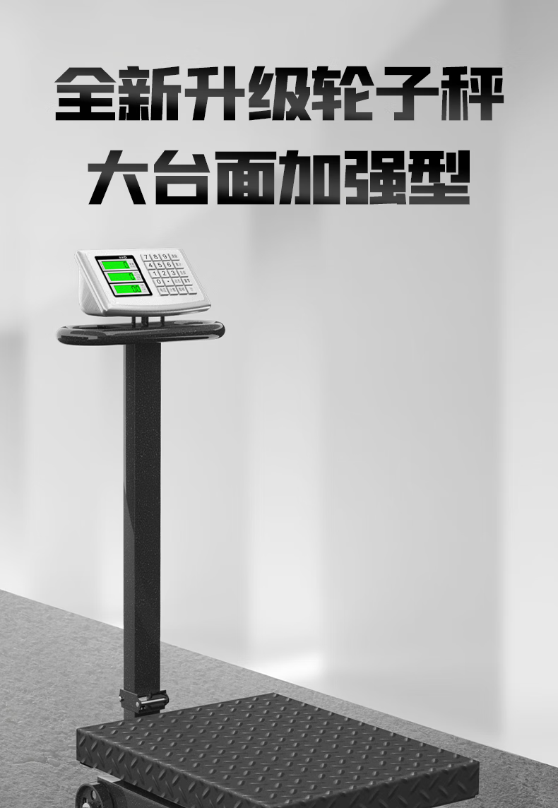 Jingxi Selection Floor-standing electronic scale with wheels weighing commercial platform scale cargo scale pricing large 300kg dual display wheel scale platform scale, 40X50cm large table