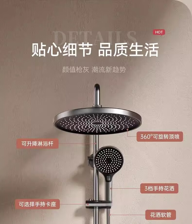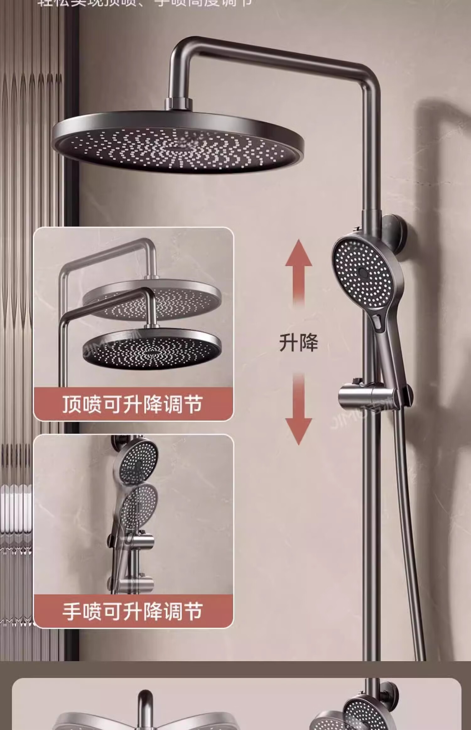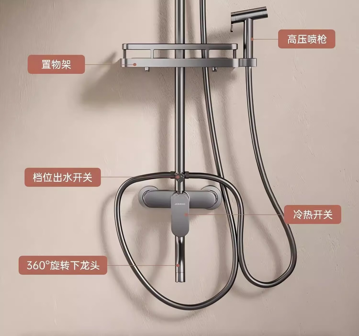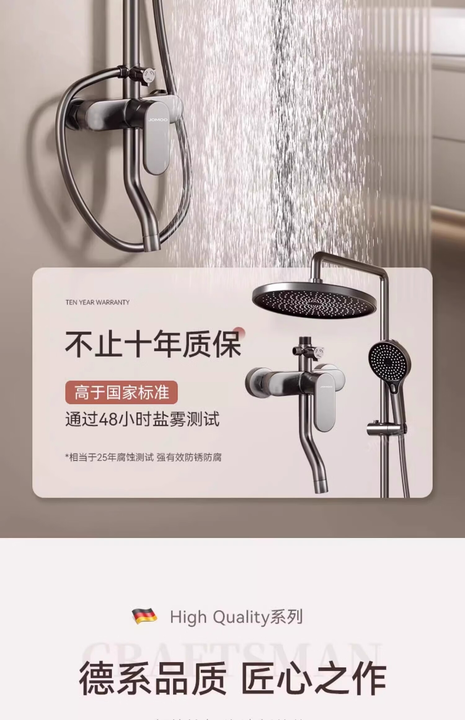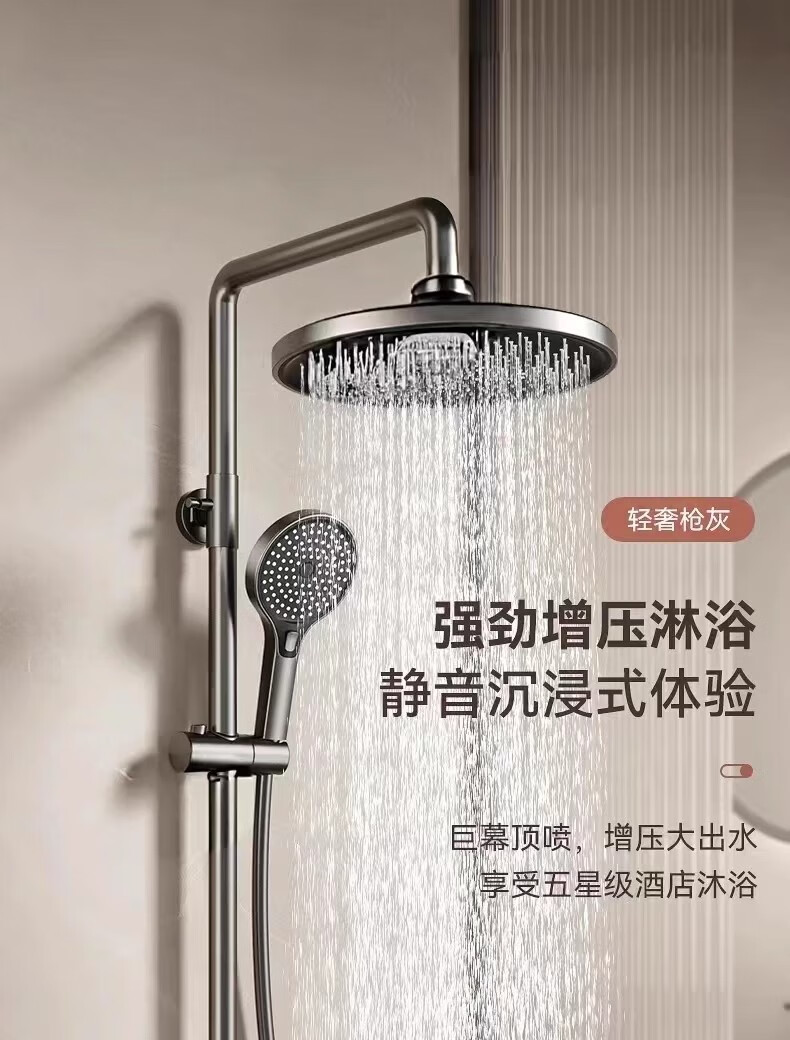 JOMOO's official flagship shower head, a complete set of all-copper supercharged gun ash automatic descaling essence copper waterway smart shower, supercharged easy-clean three-function round nozzle, silver
