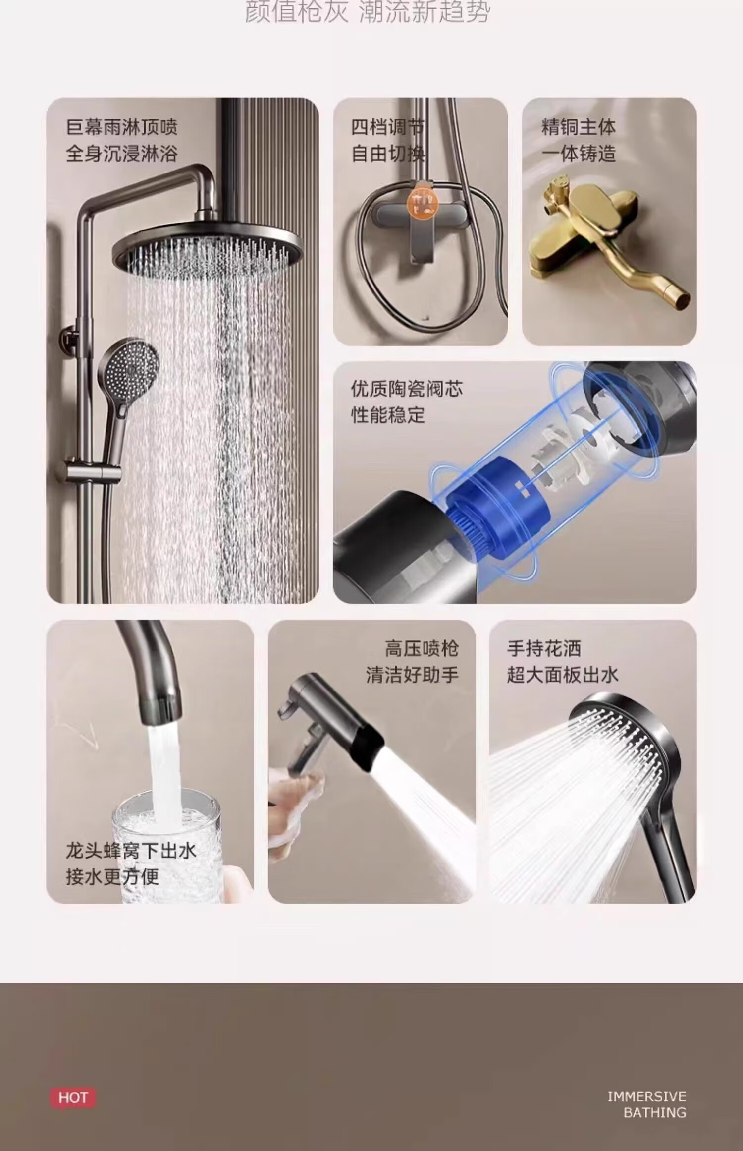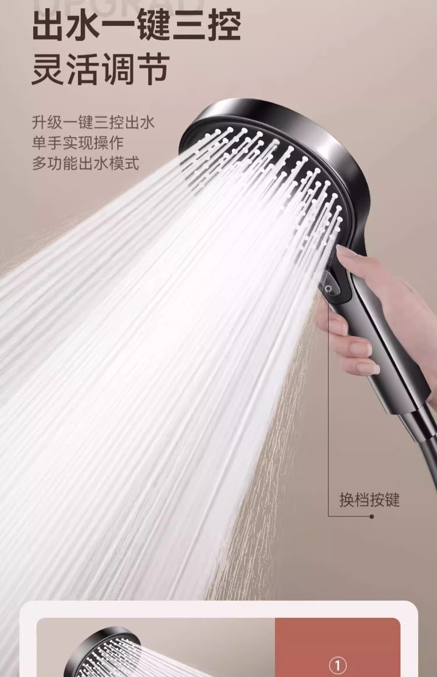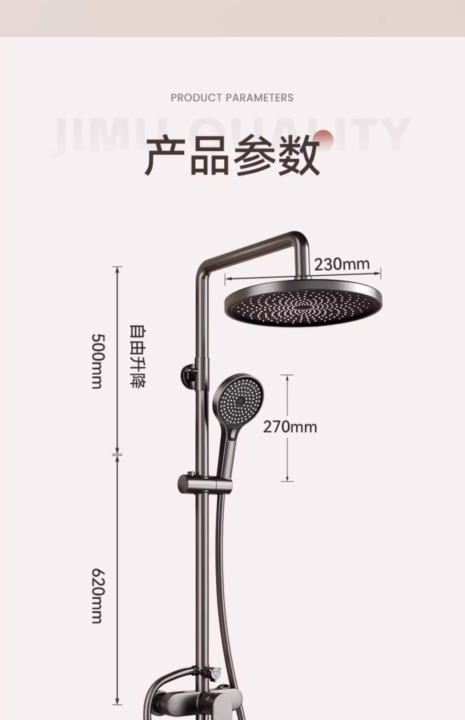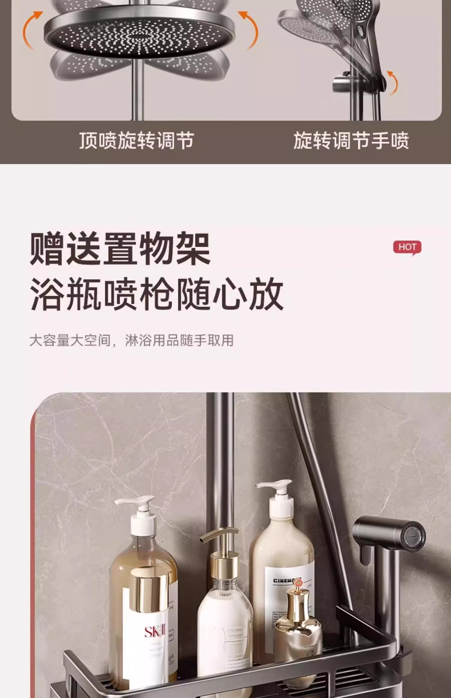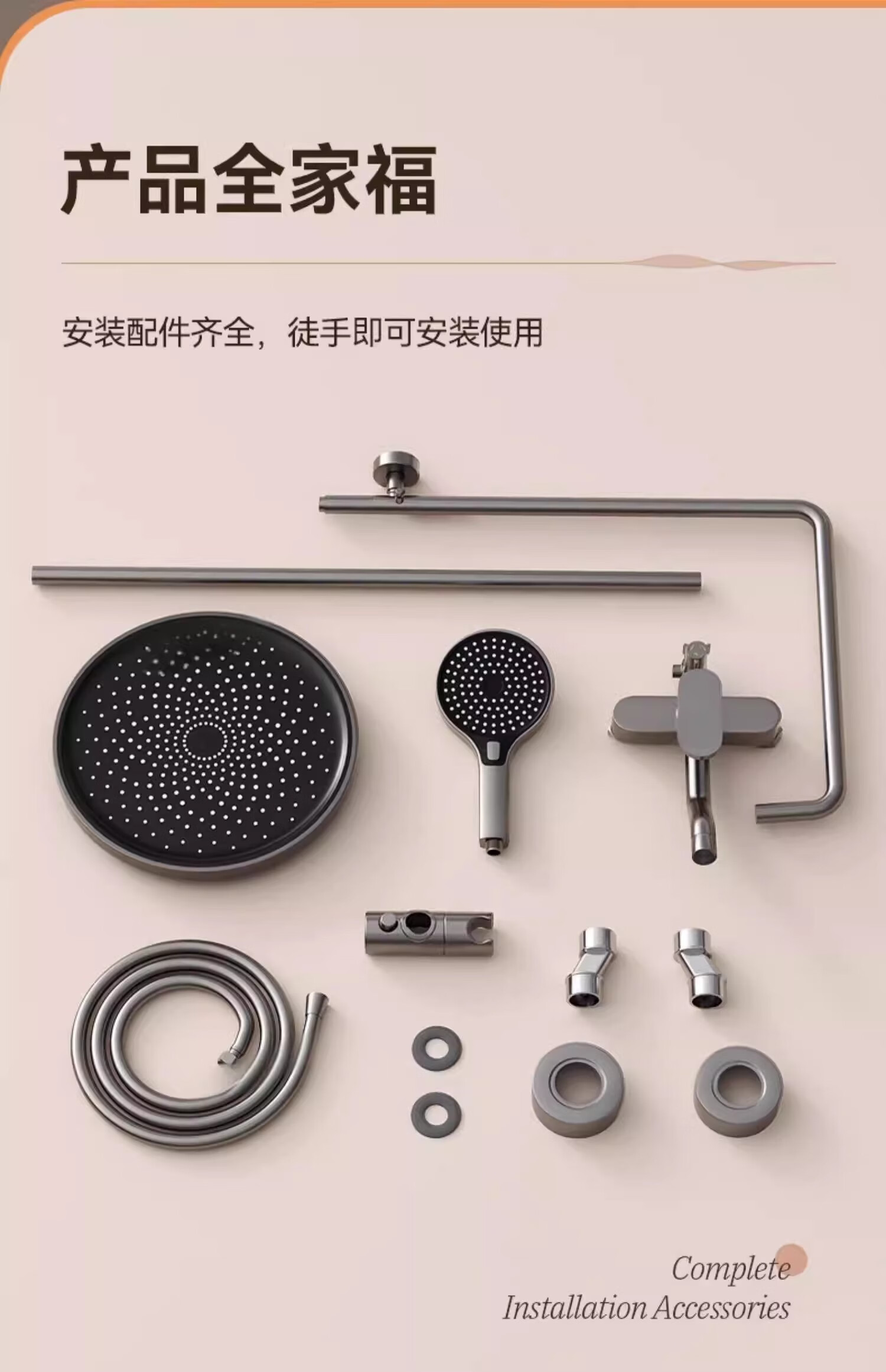 JOMOO's official flagship shower head, a complete set of all-copper supercharged gun ash automatic descaling essence copper waterway smart shower, supercharged easy-clean three-function round nozzle, silver