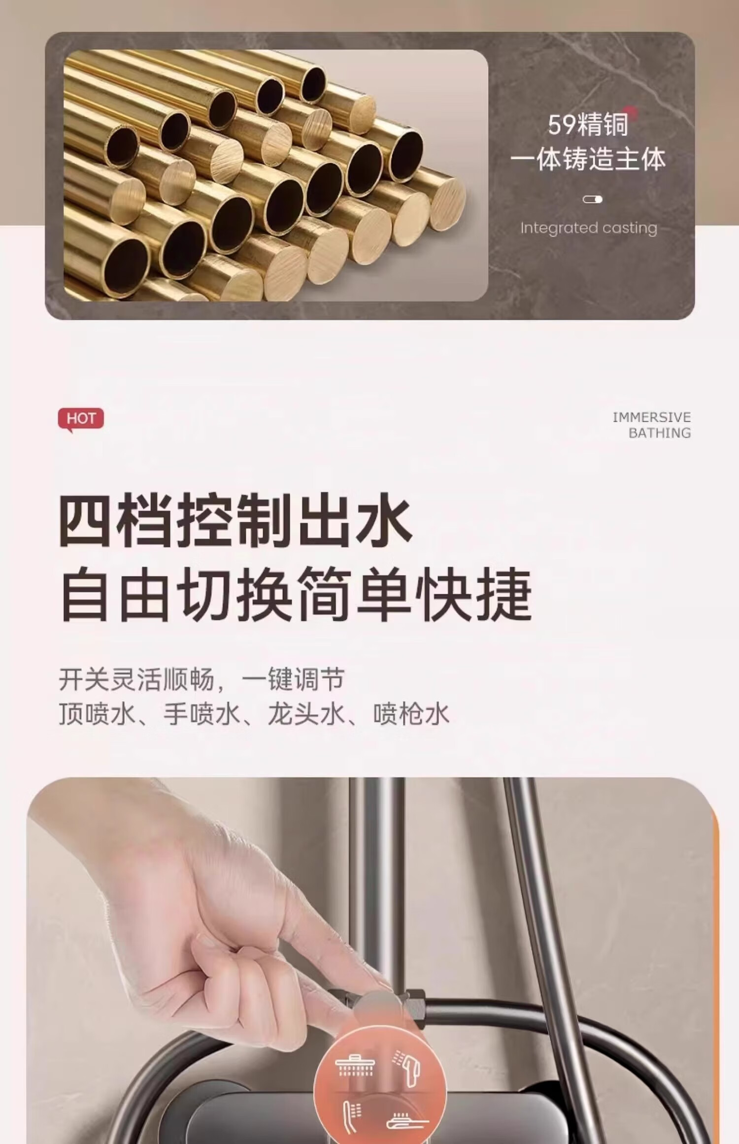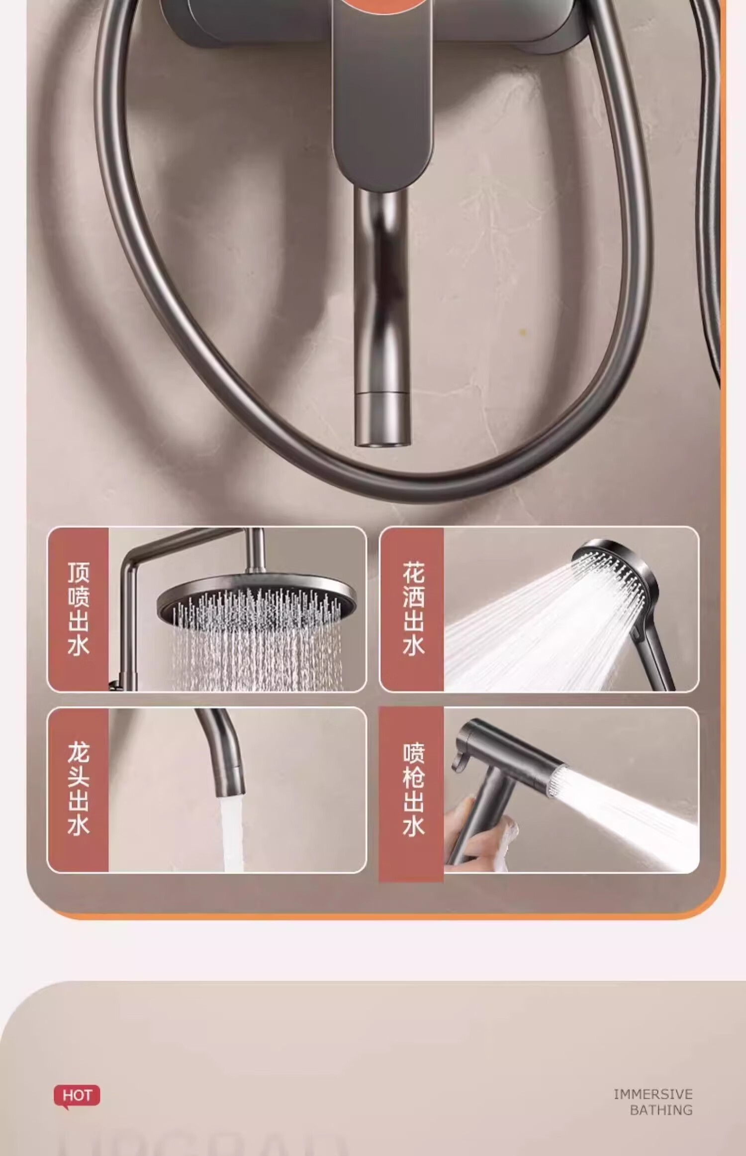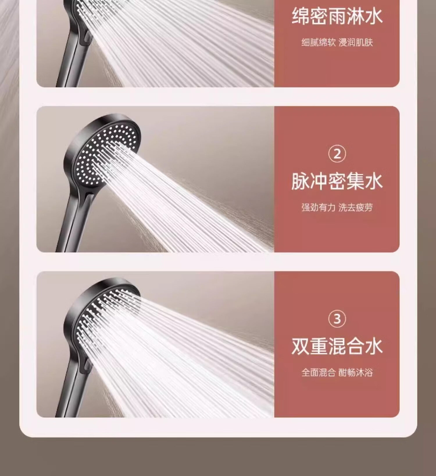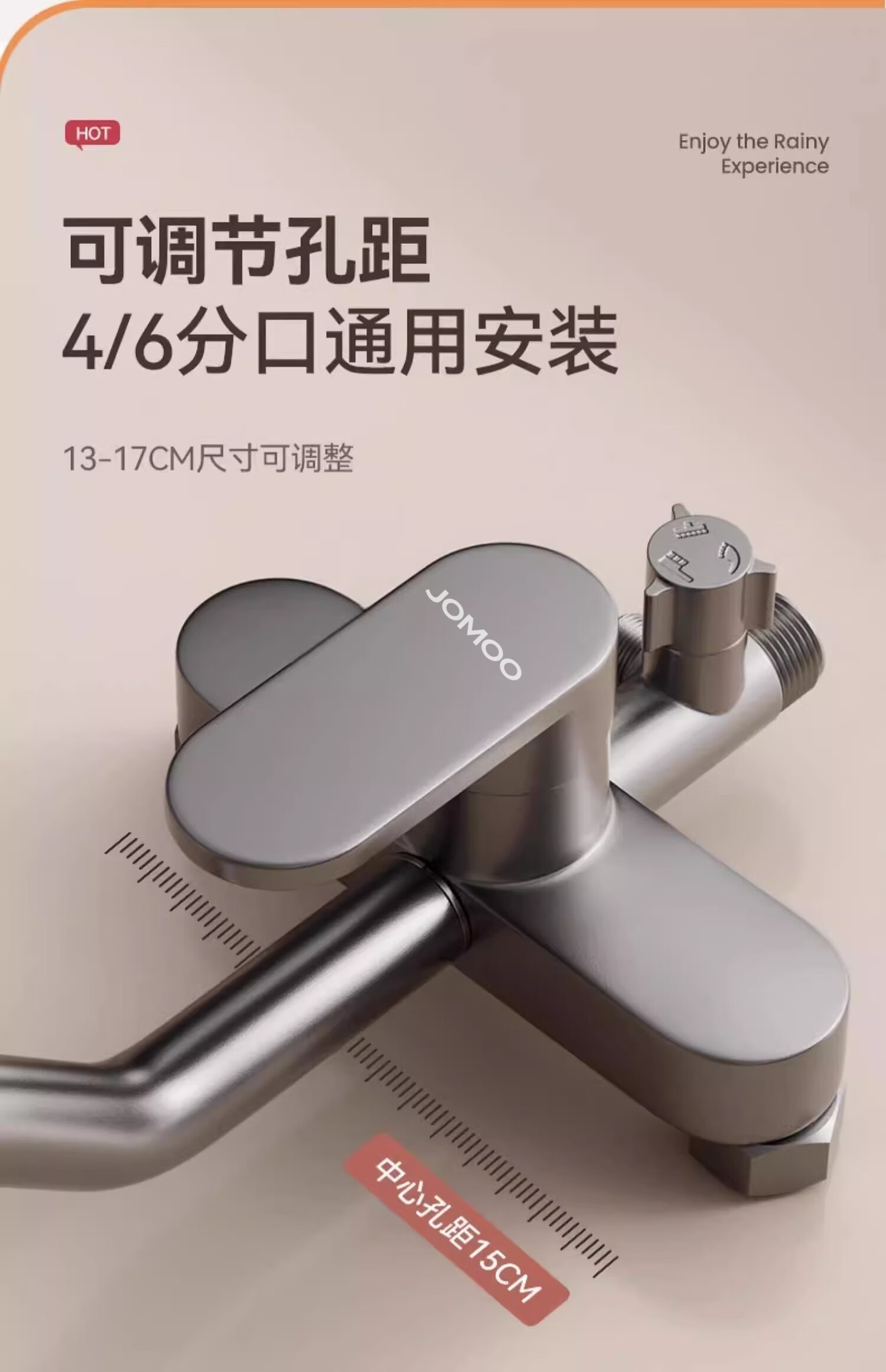 JOMOO's official flagship shower head, a complete set of all-copper supercharged gun ash automatic descaling essence copper waterway smart shower, supercharged easy-clean three-function round nozzle, silver