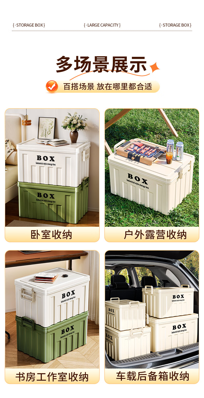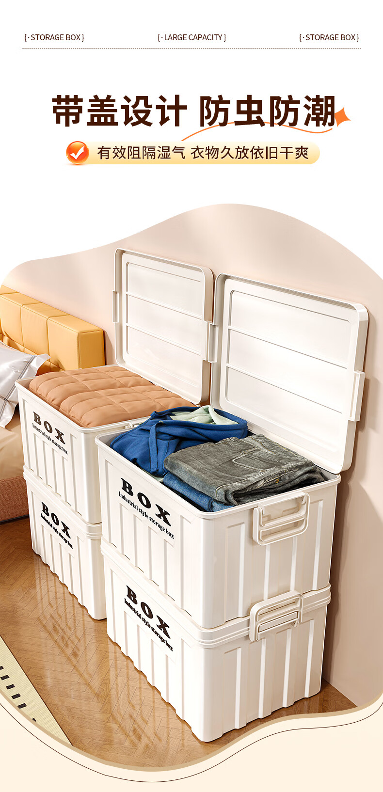 Storage box household large-capacity storage box snack toy storage box clothes storage box with lid handle plastic box forest green extra large 46.5*33.5*26.5cm