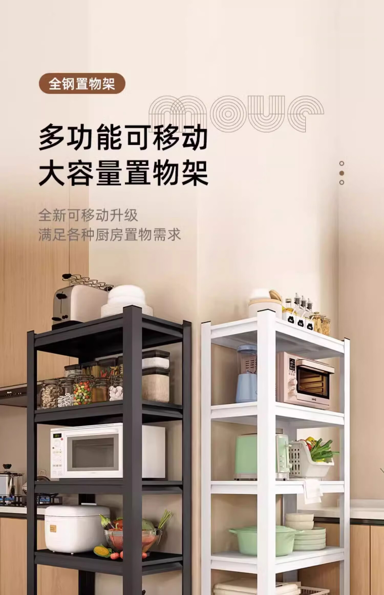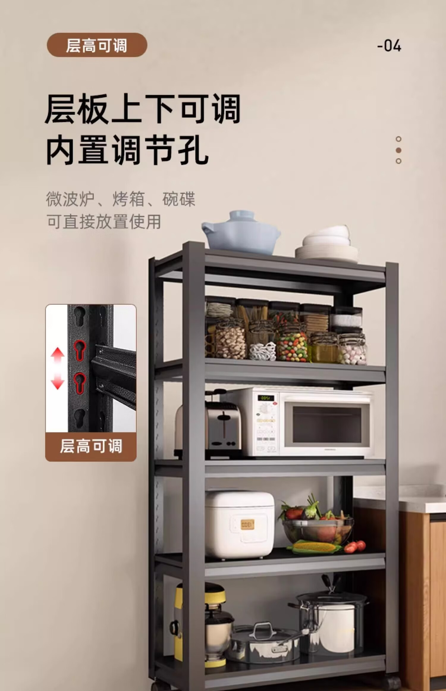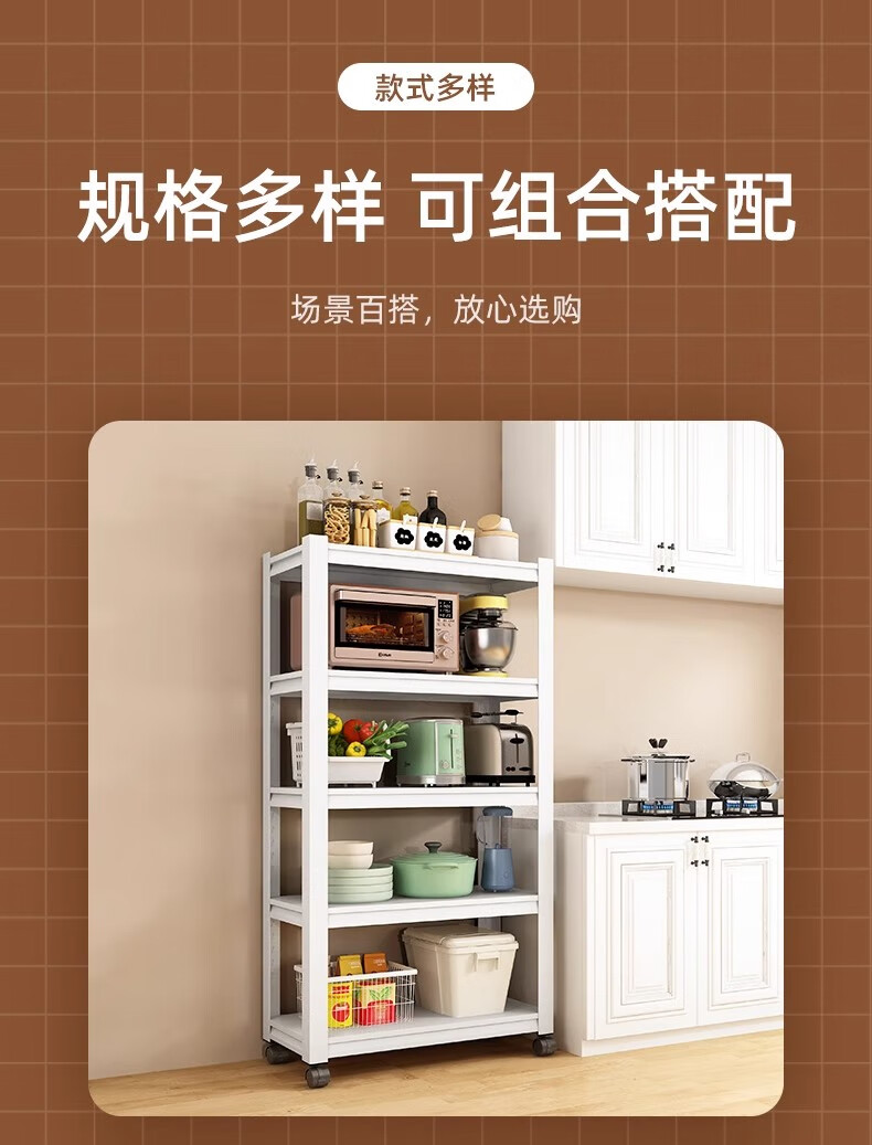 Kitchen rack with wheels floor-standing multi-layer storage microwave oven household multi-function cabinet storage cabinet with door 5 layers 160cm high length 80 width 40 with wheels
