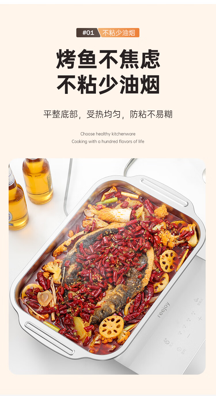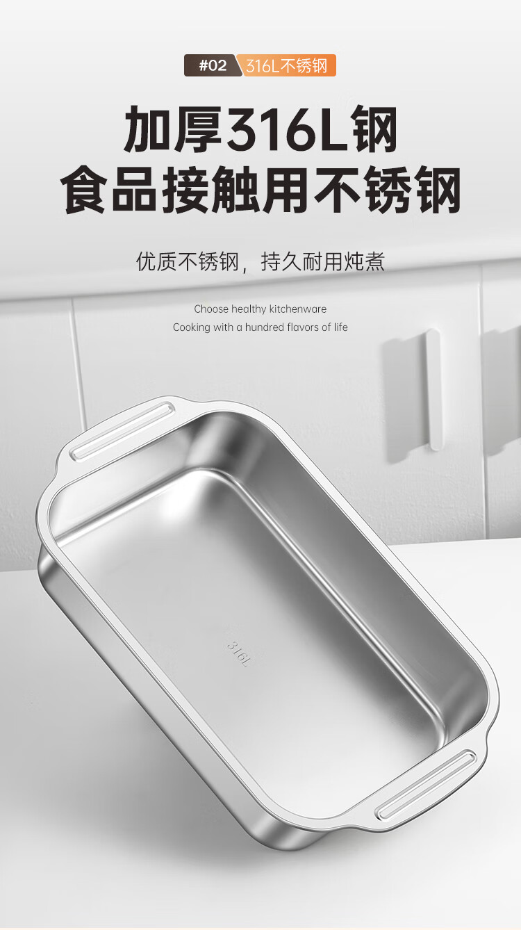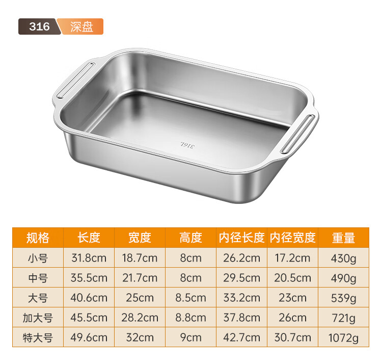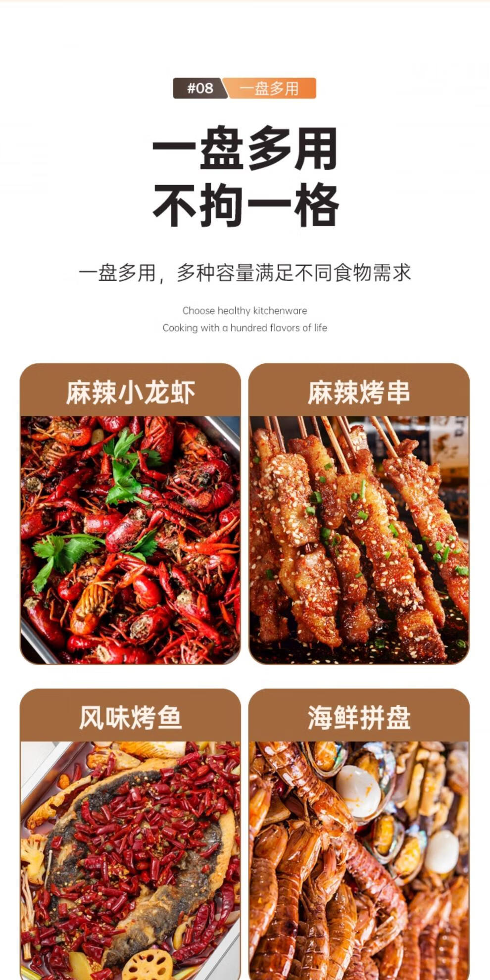 Stainless steel grilled fish plate rectangular household 316 food grade thickened induction cooker grilled fish special plate deep plate 45cm extra large + (tempered glass cover) food grade stainless