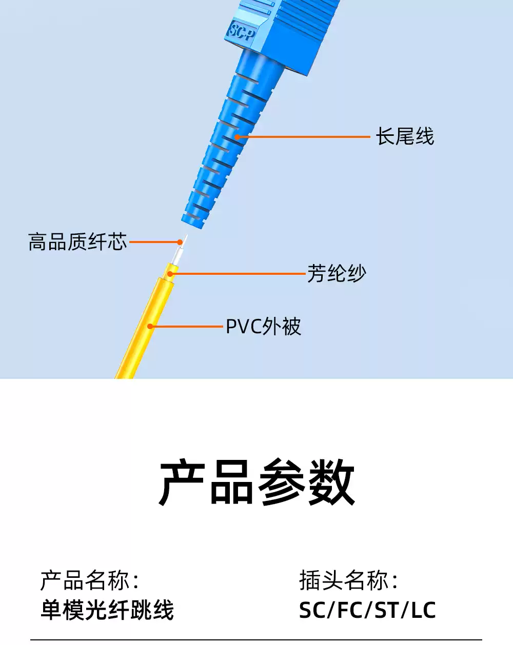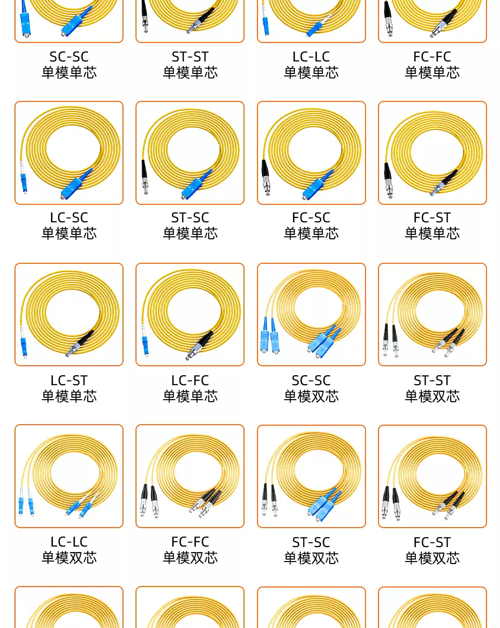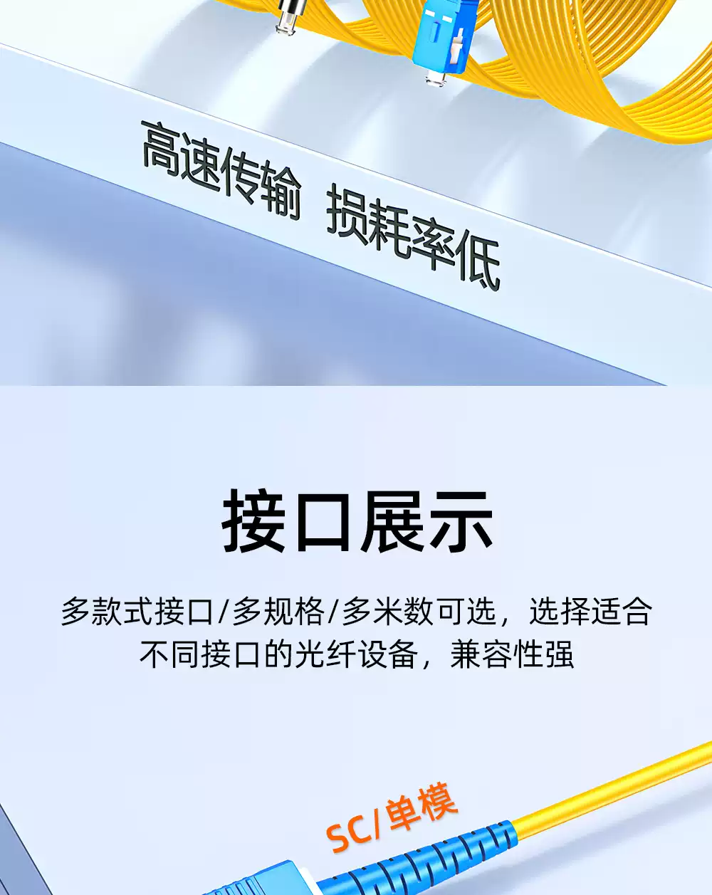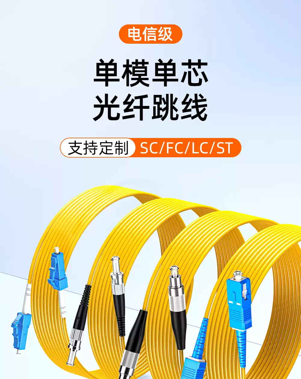 Sai Fiber Broadcasting and Television APC single-mode optical fiber jumper SC/APC-SC/UPC single-core FC to LC-ST oblique octave oblique cable TV optical cable pigtail cable fiber jumper square head pigtail carrier grade 3.0 Broadcasting and Television FC/APC-FC/APC 3m