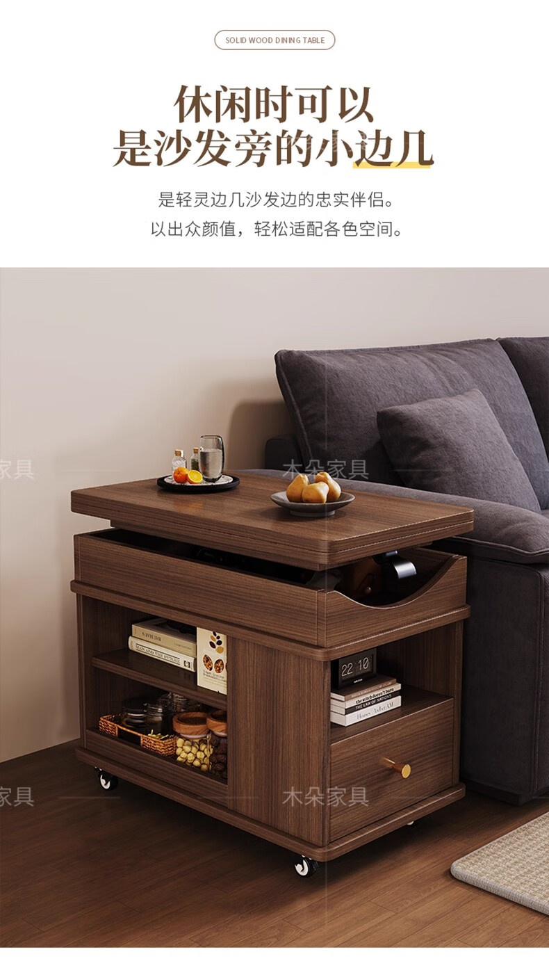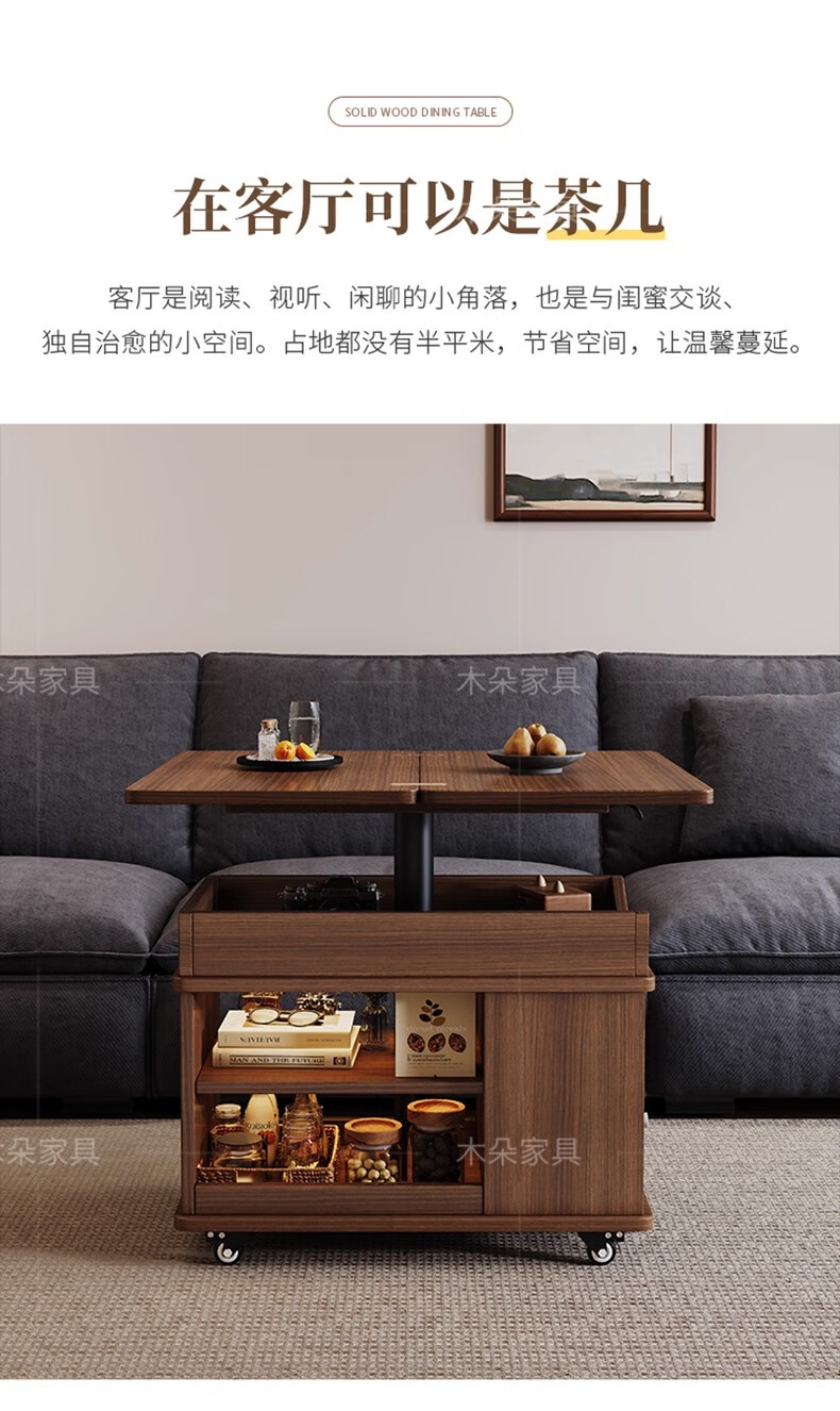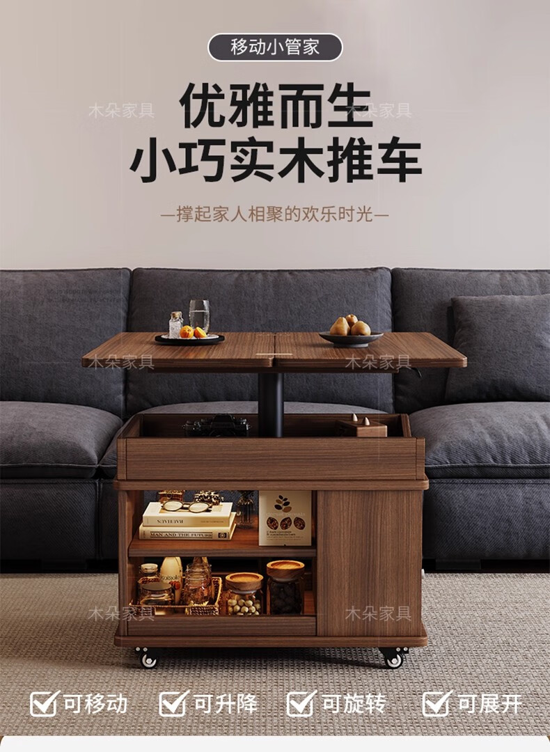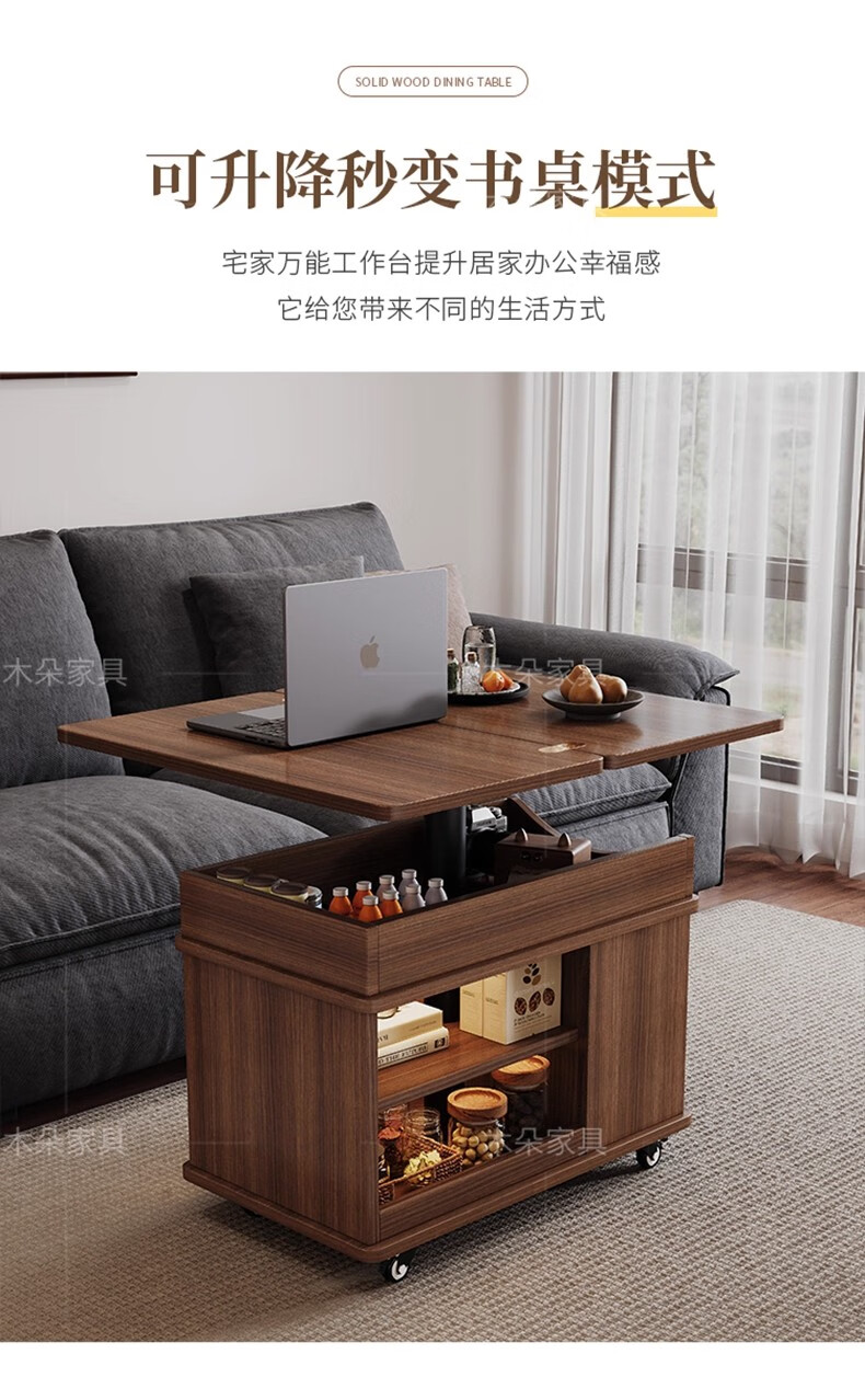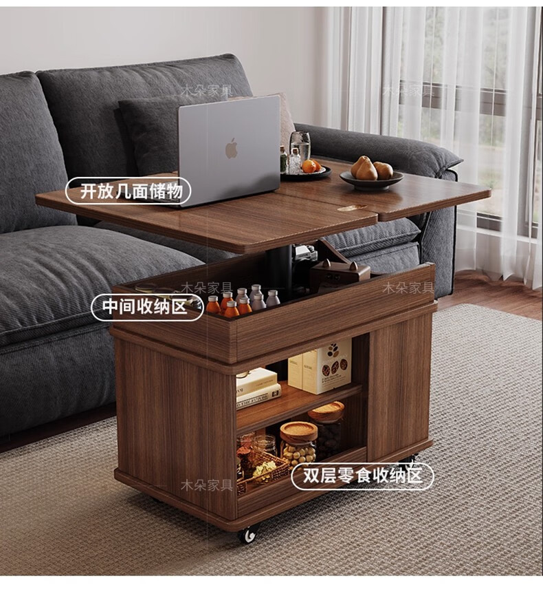 Jingxi Selection Solid Wood Folding Lift Coffee Table Small Apartment Living Room Sofa Side Cabinet Side Table Multi-Function Tea Table Walnut Color