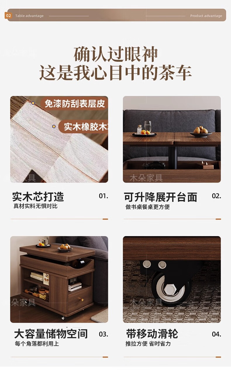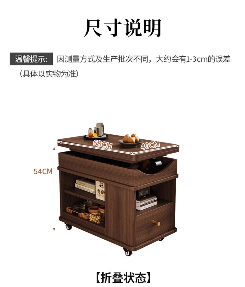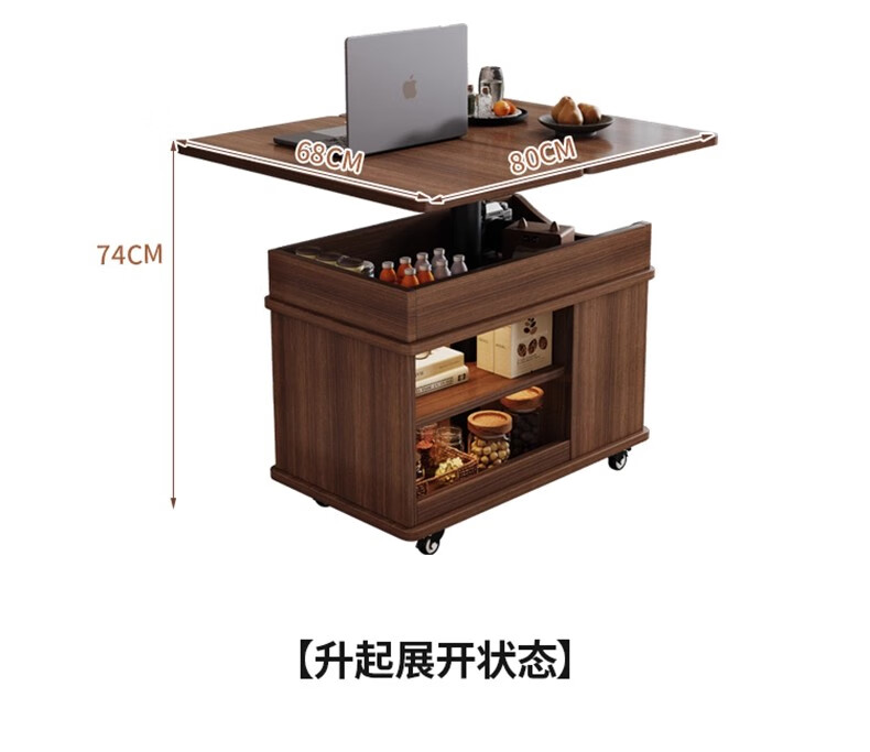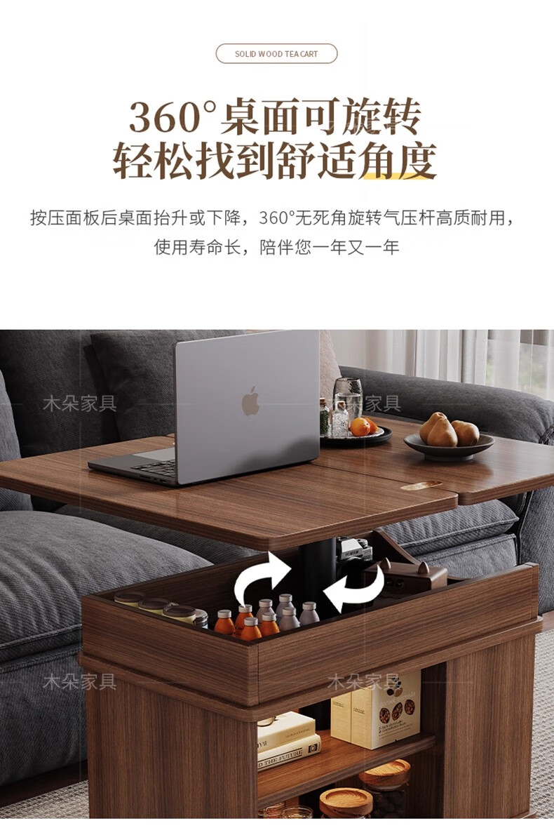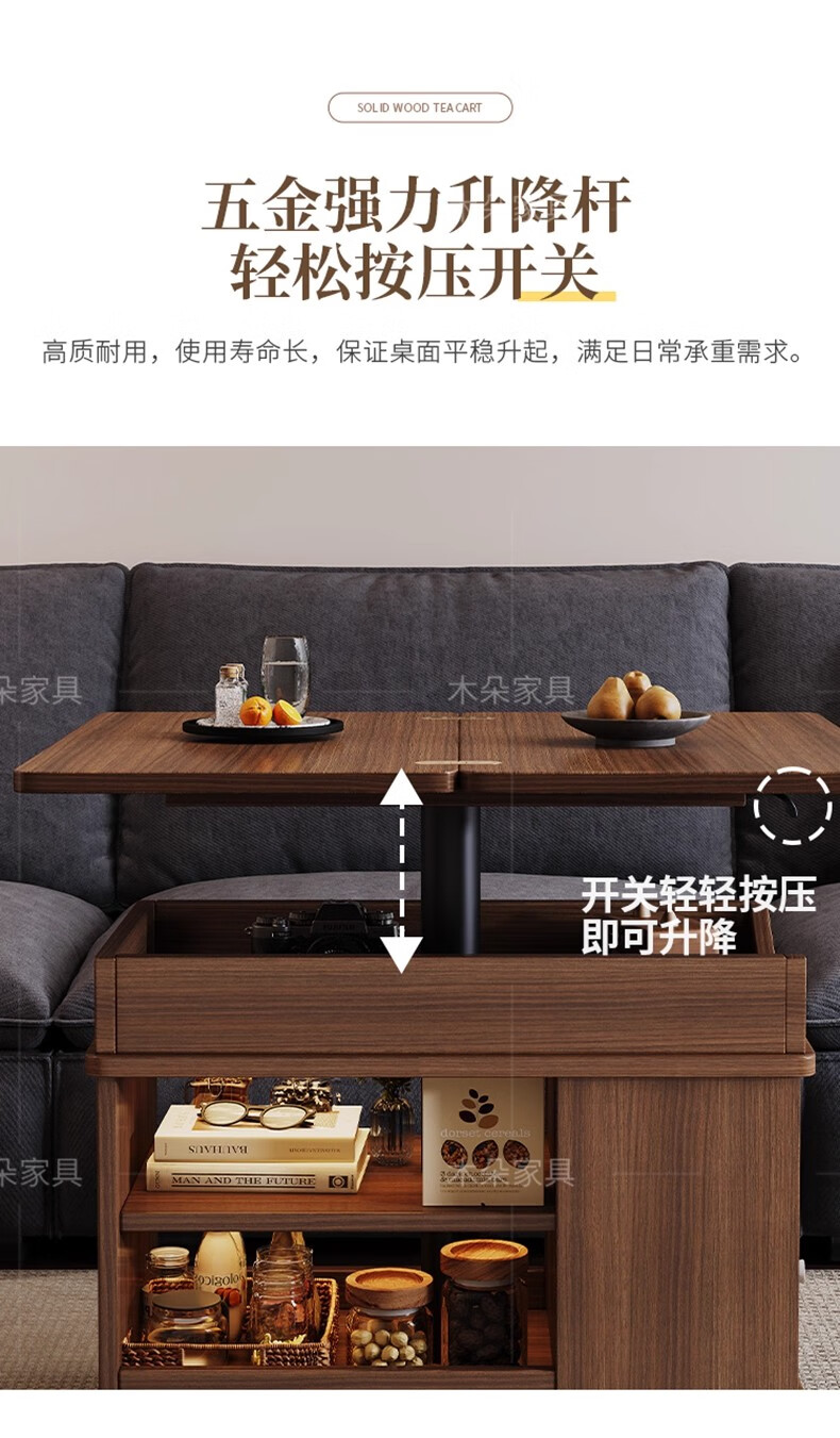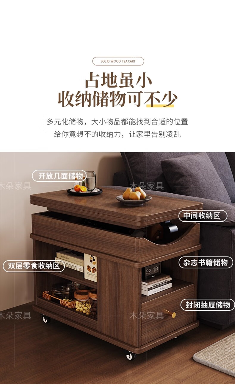 Jingxi Selection Solid Wood Folding Lift Coffee Table Small Apartment Living Room Sofa Side Cabinet Side Table Multi-Function Tea Table Walnut Color
