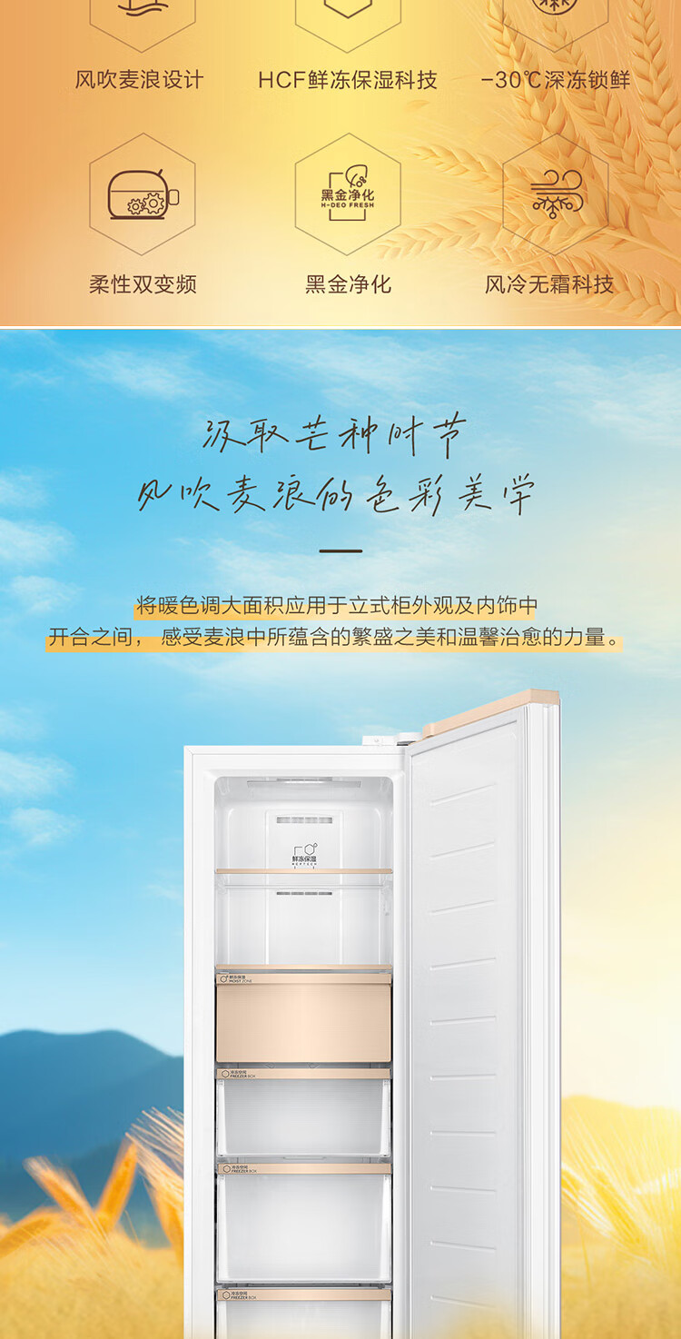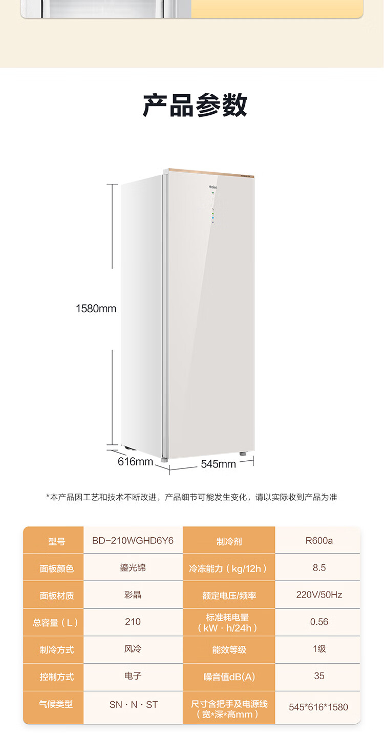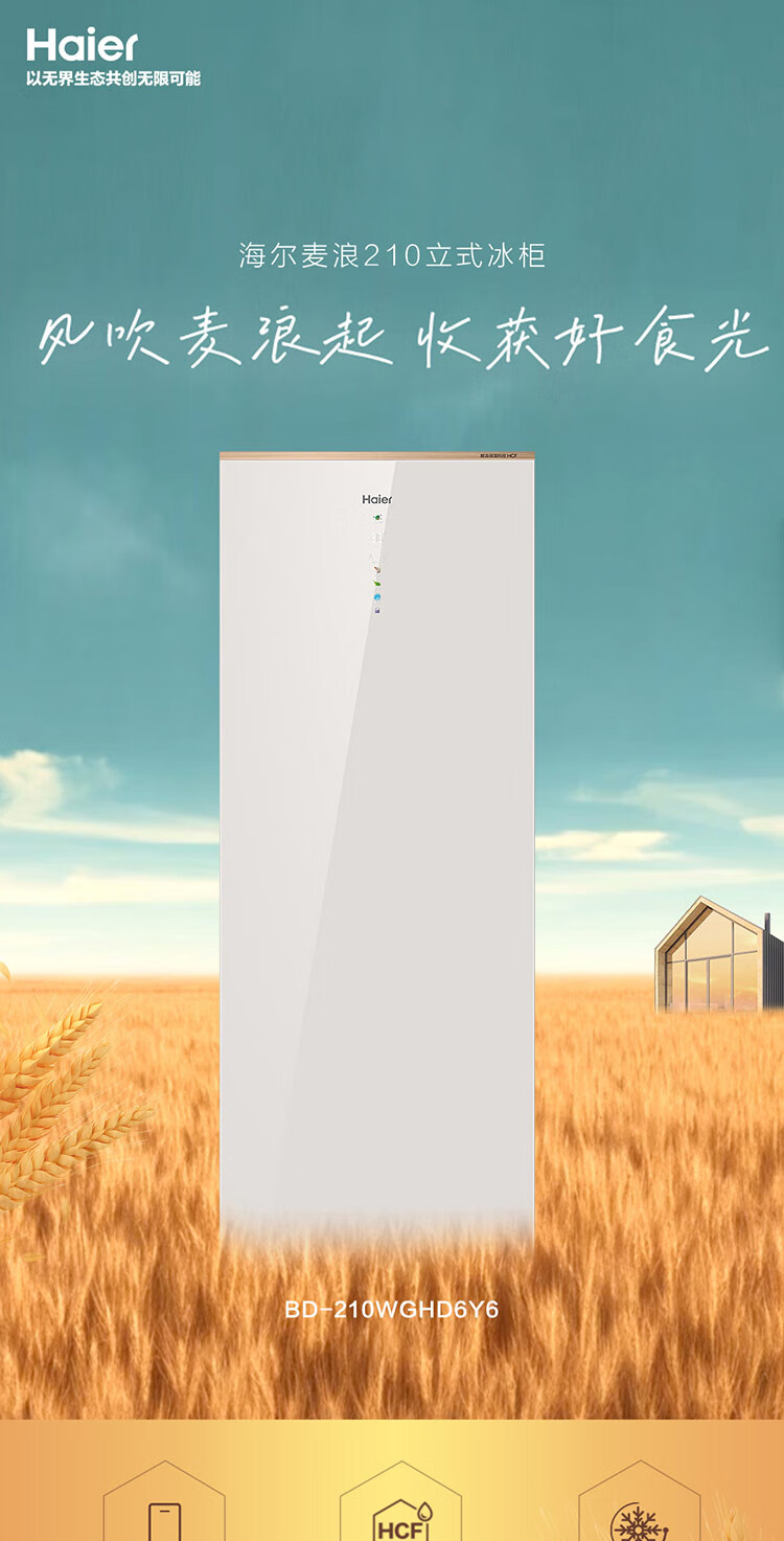 Haier Mailang series 210 vertical freezer household large capacity refrigeration and fresh-keeping cabinet -30 deep-freezing double frequency conversion air-cooled frost-free freezer BD-210WGHD6Y6 Mailangjin 210L BD-210WGHD6Y6