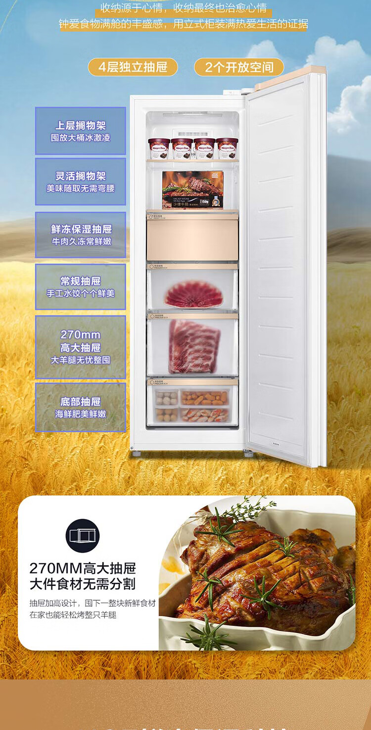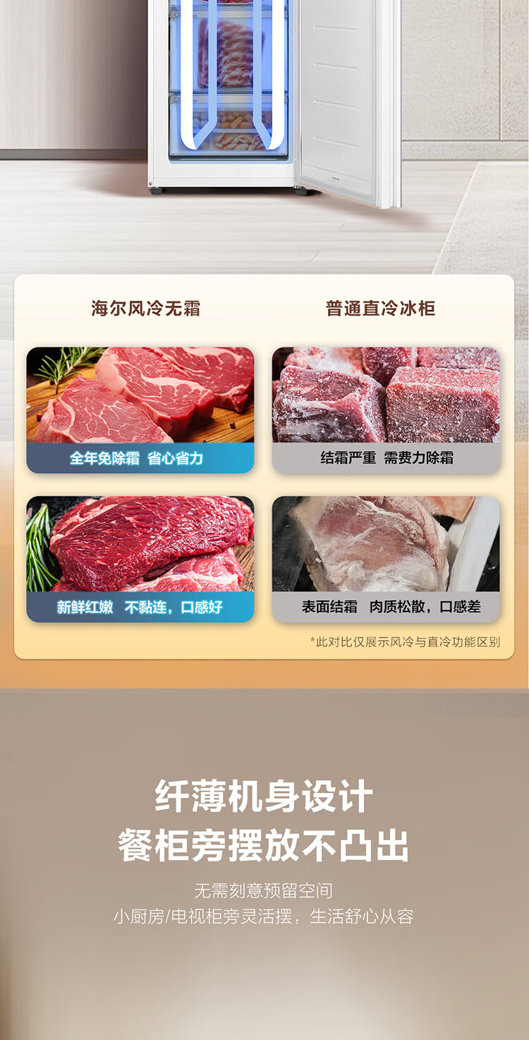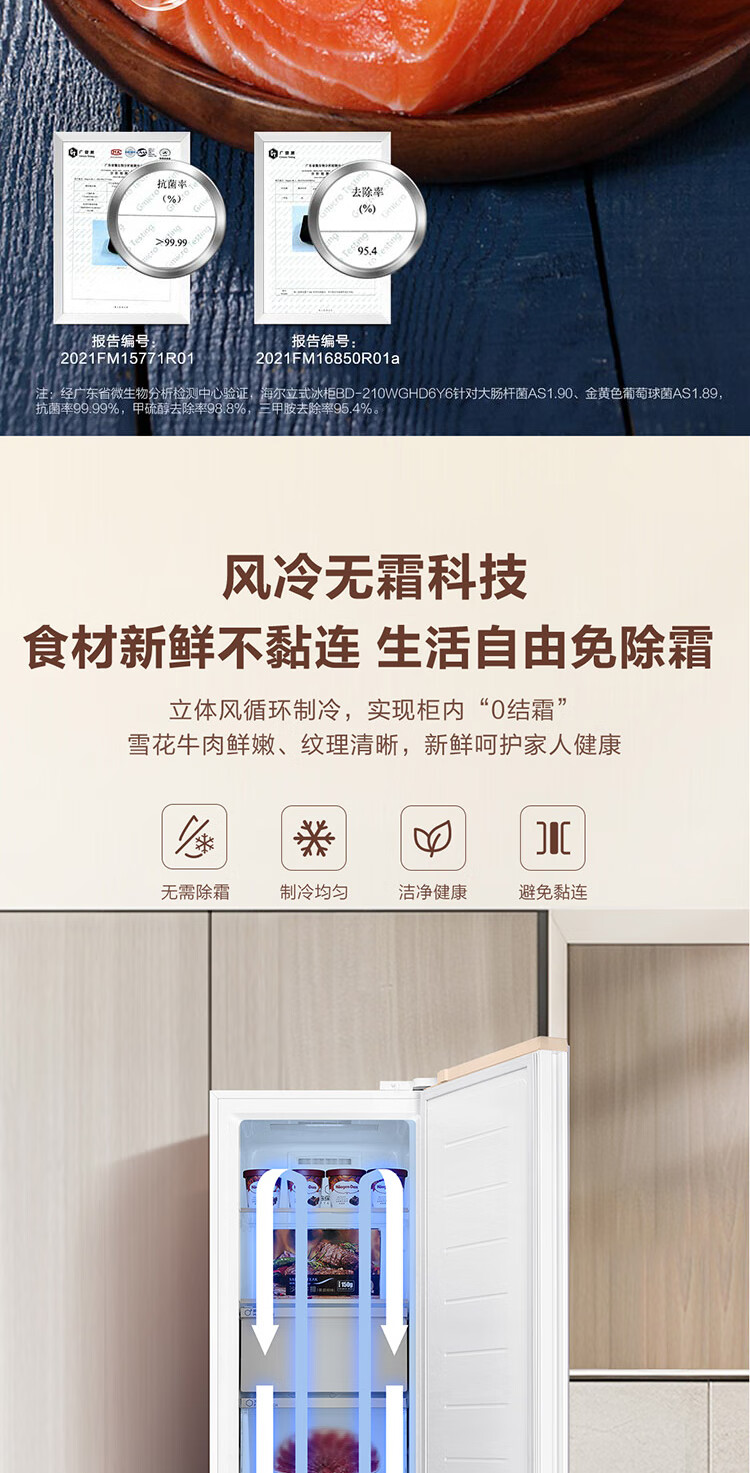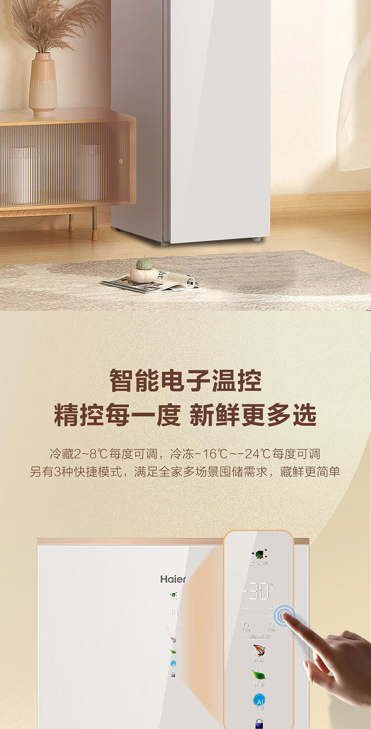 Haier Mailang series 210 vertical freezer household large capacity refrigeration and fresh-keeping cabinet -30 deep-freezing double frequency conversion air-cooled frost-free freezer BD-210WGHD6Y6 Mailangjin 210L BD-210WGHD6Y6