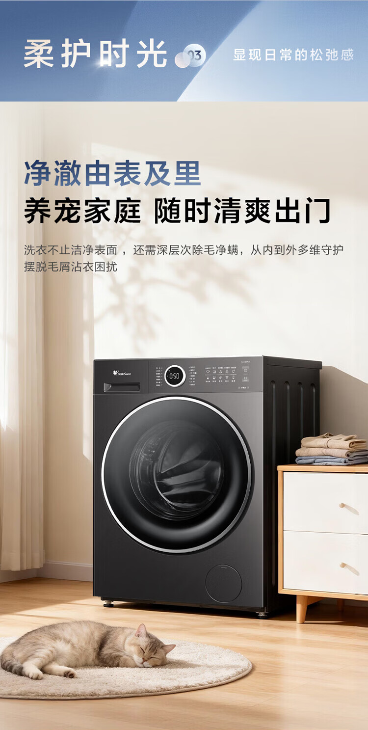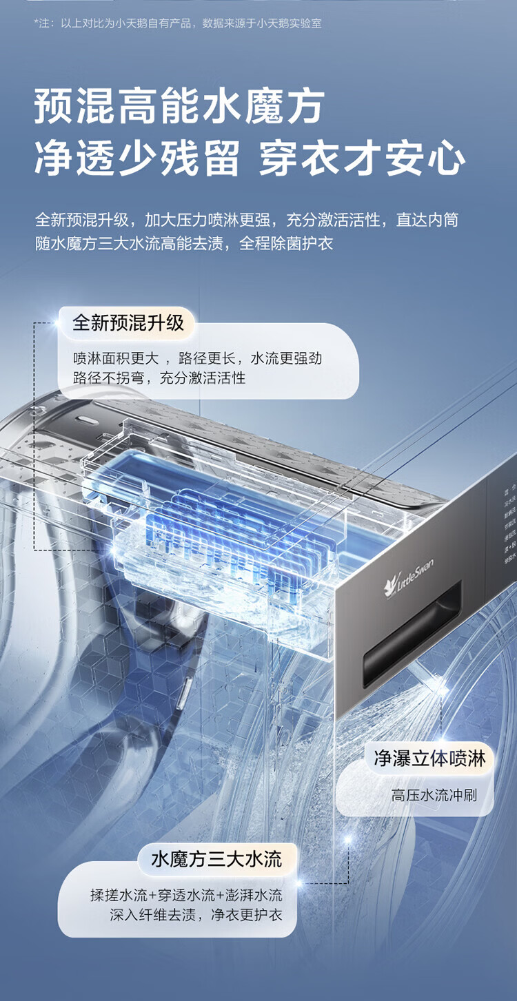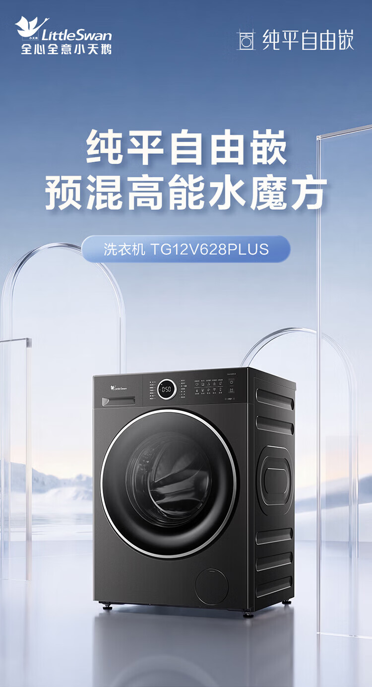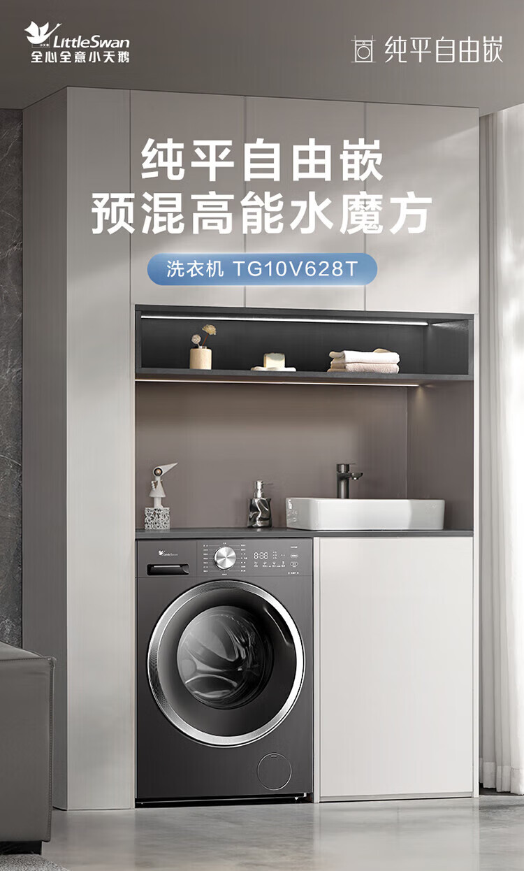 LittleSwan 1.28 washing ratio 10kg fully automatic drum washing machine 628 flat screen free-standing water cube large capacity washing machine sterilization frequency conversion mite removal cleaning sterilization and mite removal丨high energy water cube丨1.28 washing ratio drum