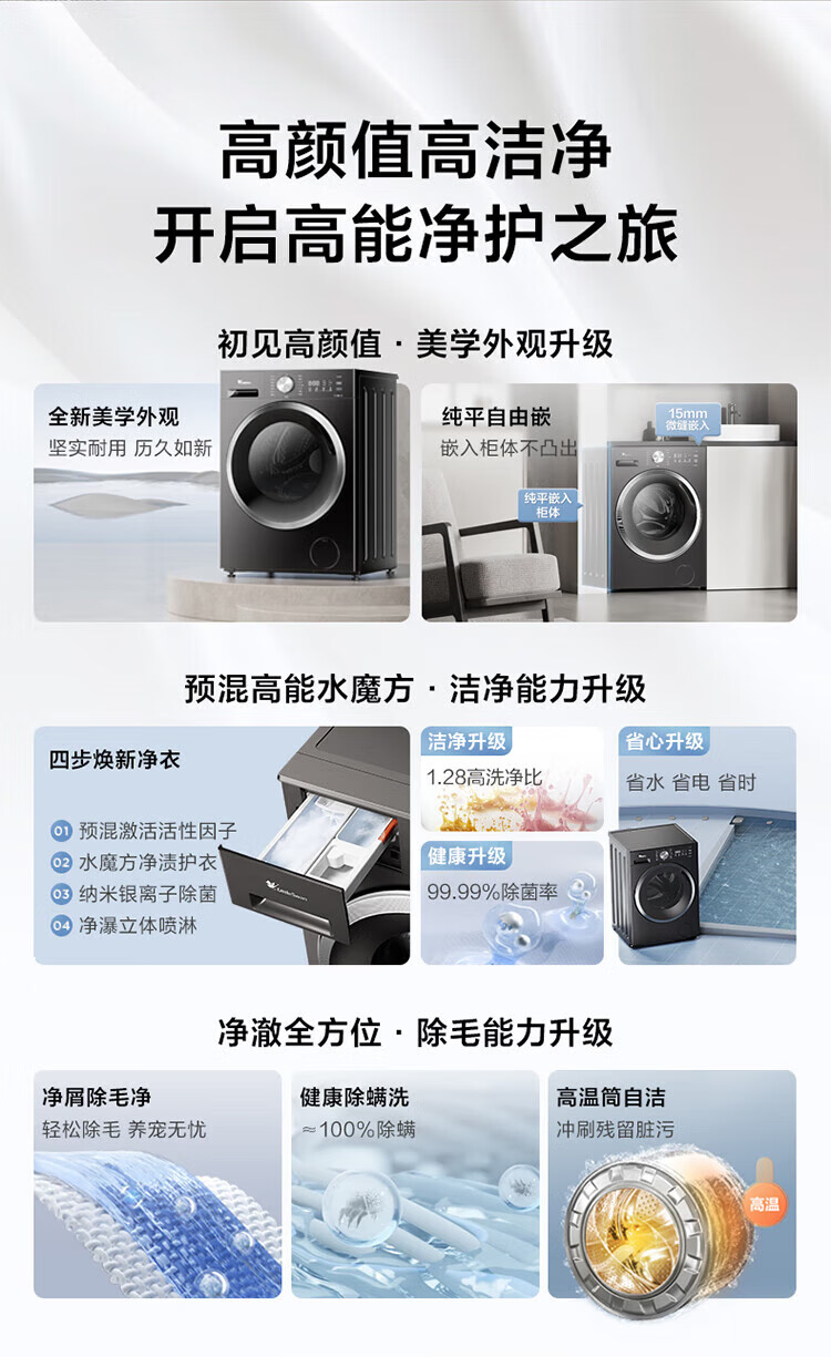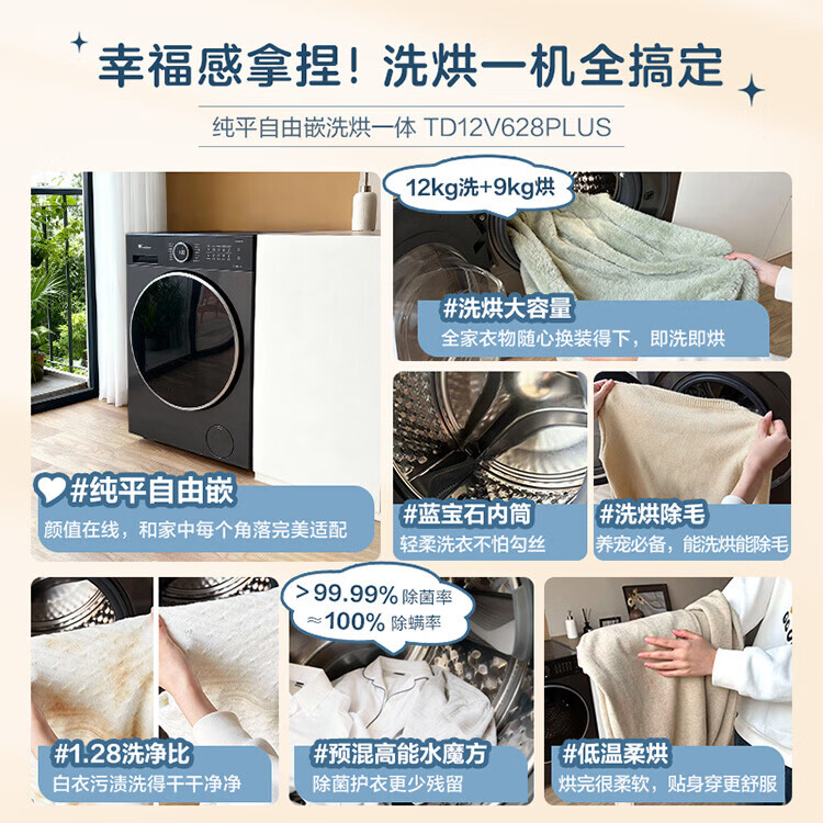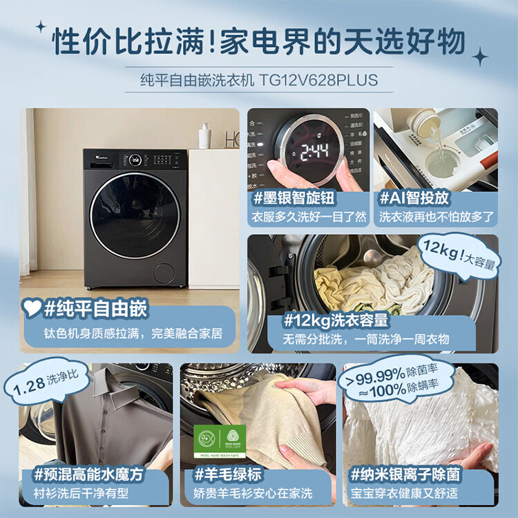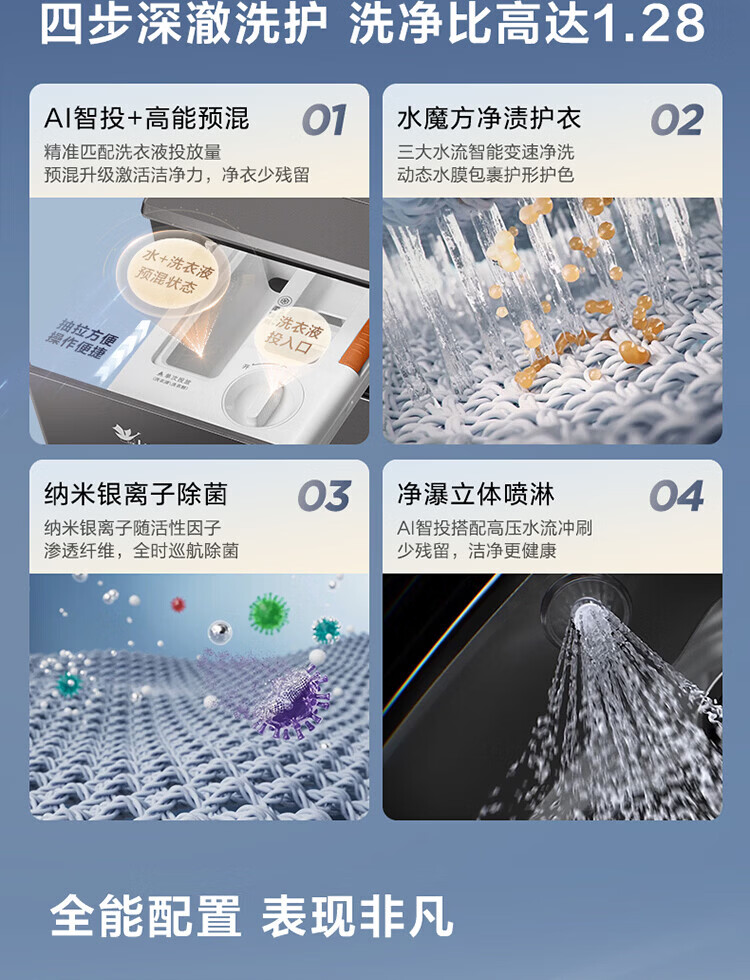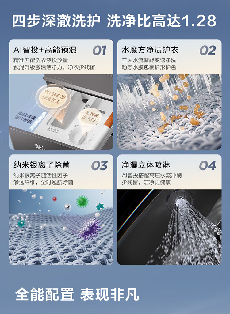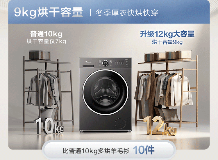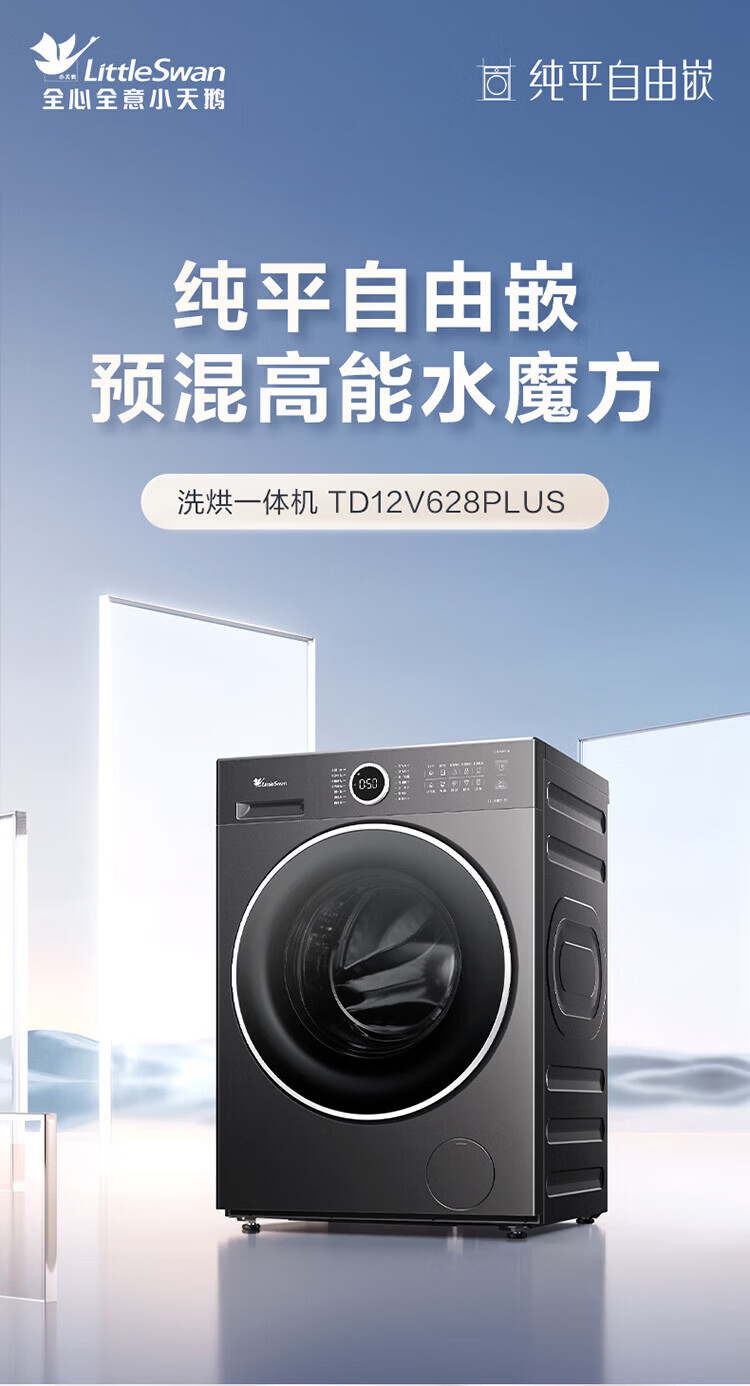 LittleSwan 1.28 washing ratio 10kg fully automatic drum washing machine 628 flat screen free-standing water cube large capacity washing machine sterilization frequency conversion mite removal cleaning sterilization and mite removal丨high energy water cube丨1.28 washing ratio drum