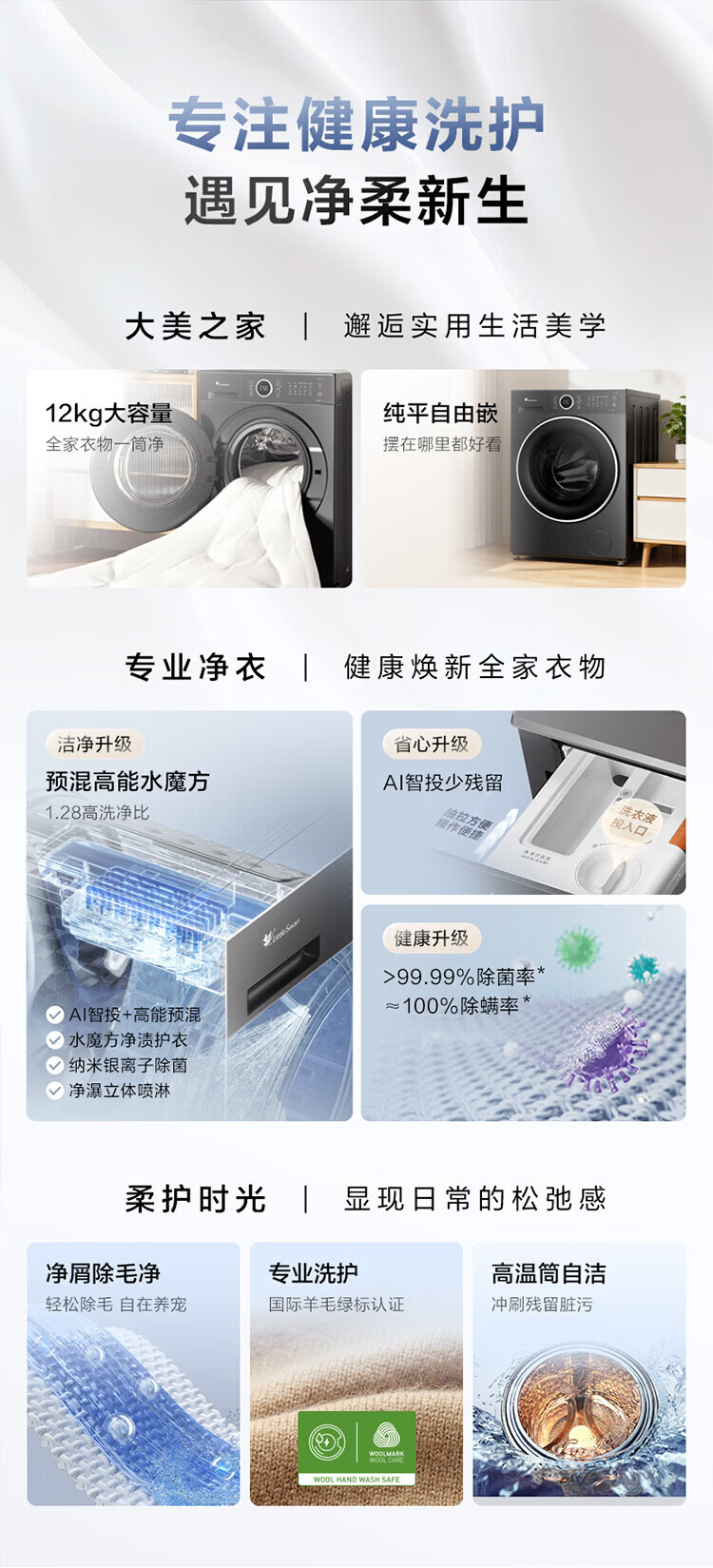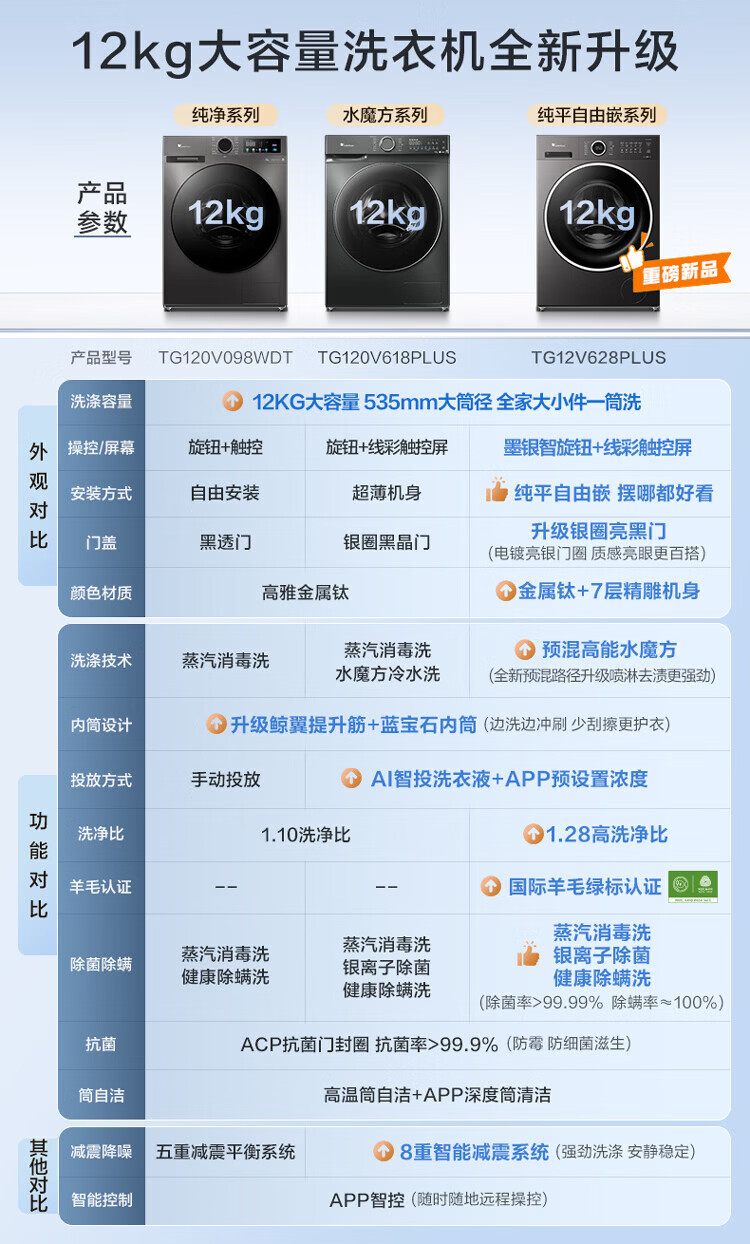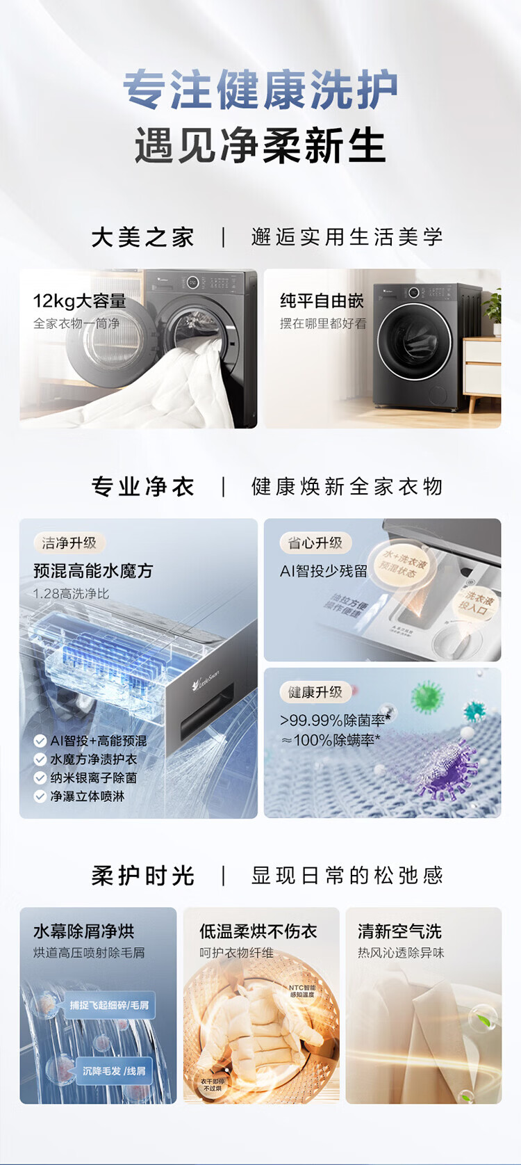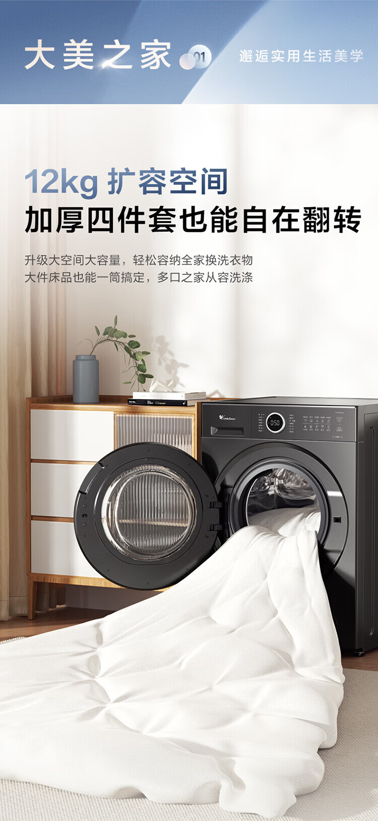 LittleSwan 1.28 washing ratio 10kg fully automatic drum washing machine 628 flat screen free-standing water cube large capacity washing machine sterilization frequency conversion mite removal cleaning sterilization and mite removal丨high energy water cube丨1.28 washing ratio drum