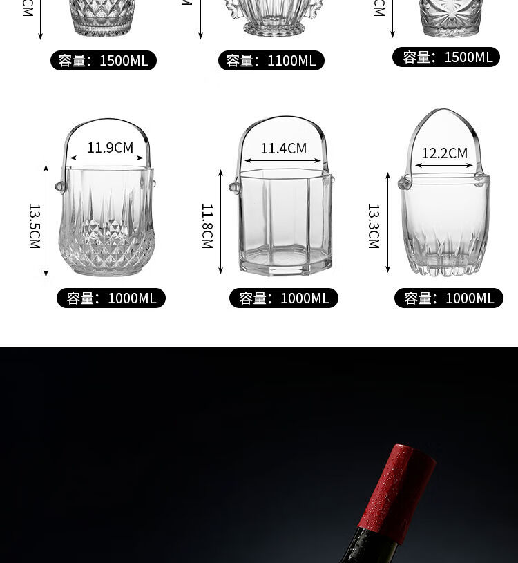 Pupan thickened glass ice bucket red wine beer ice bucket KTV bar large and small ice bucket champagne bucket ice No. 1 diamond glass ice bucket
