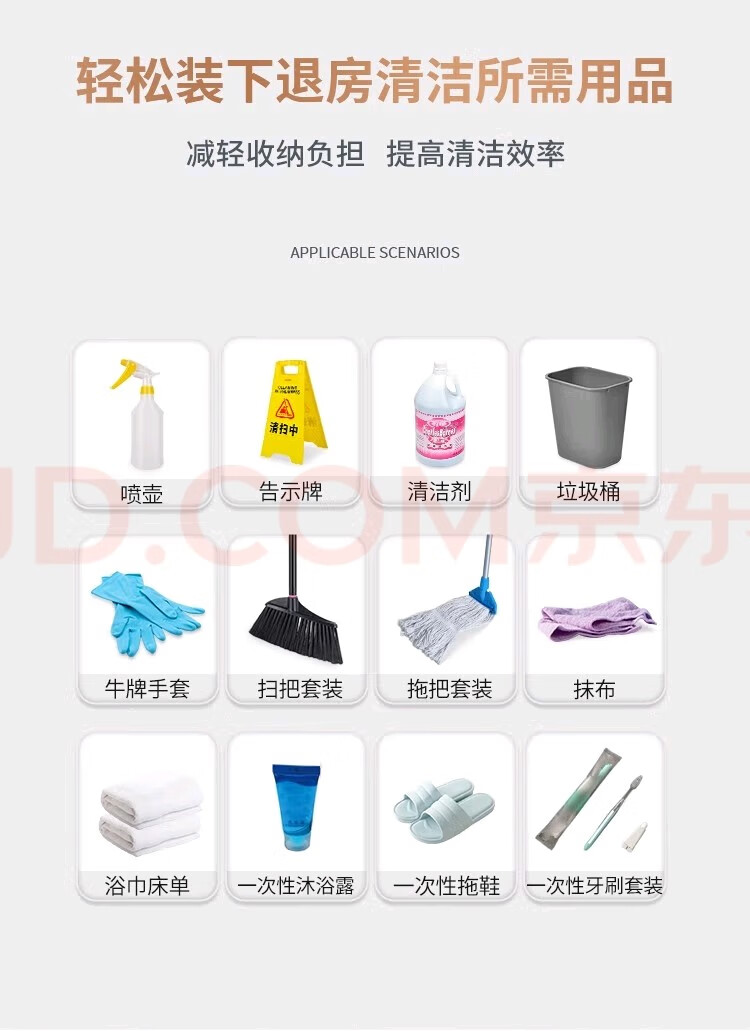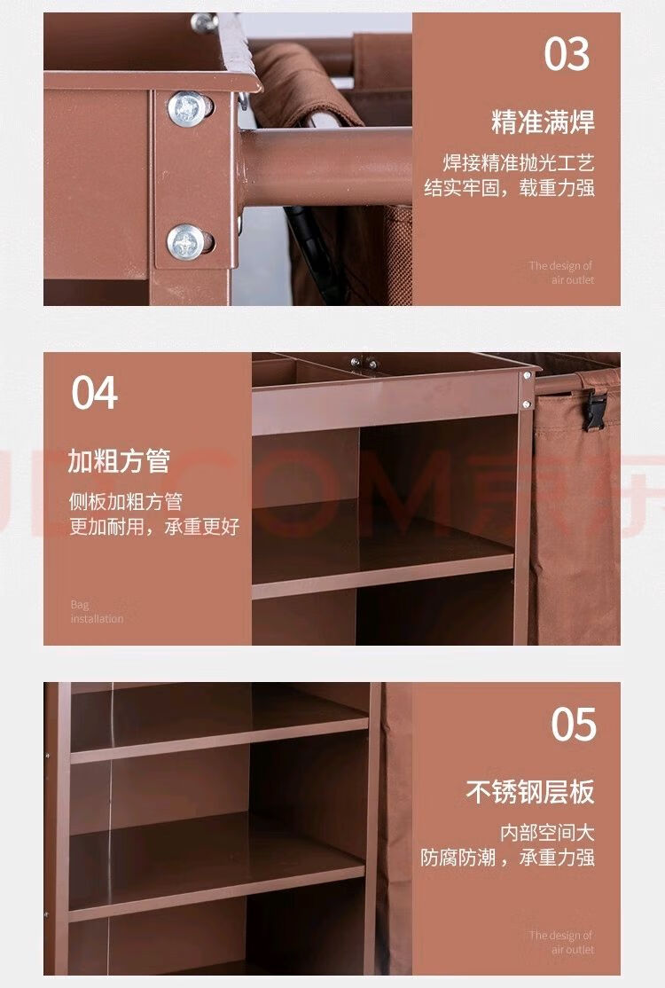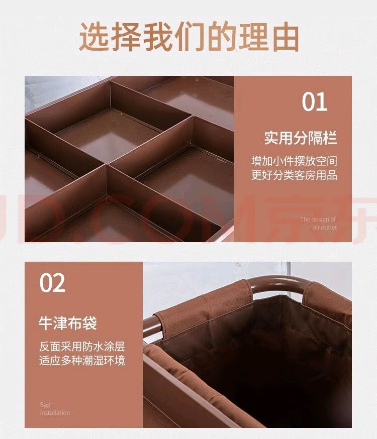 Hotel room multi-function hand push linen cart cleaning work cart cleaning cart cloth bag guest room entrance hygiene service cart brown bilateral service cart 5-inch carpet wheel