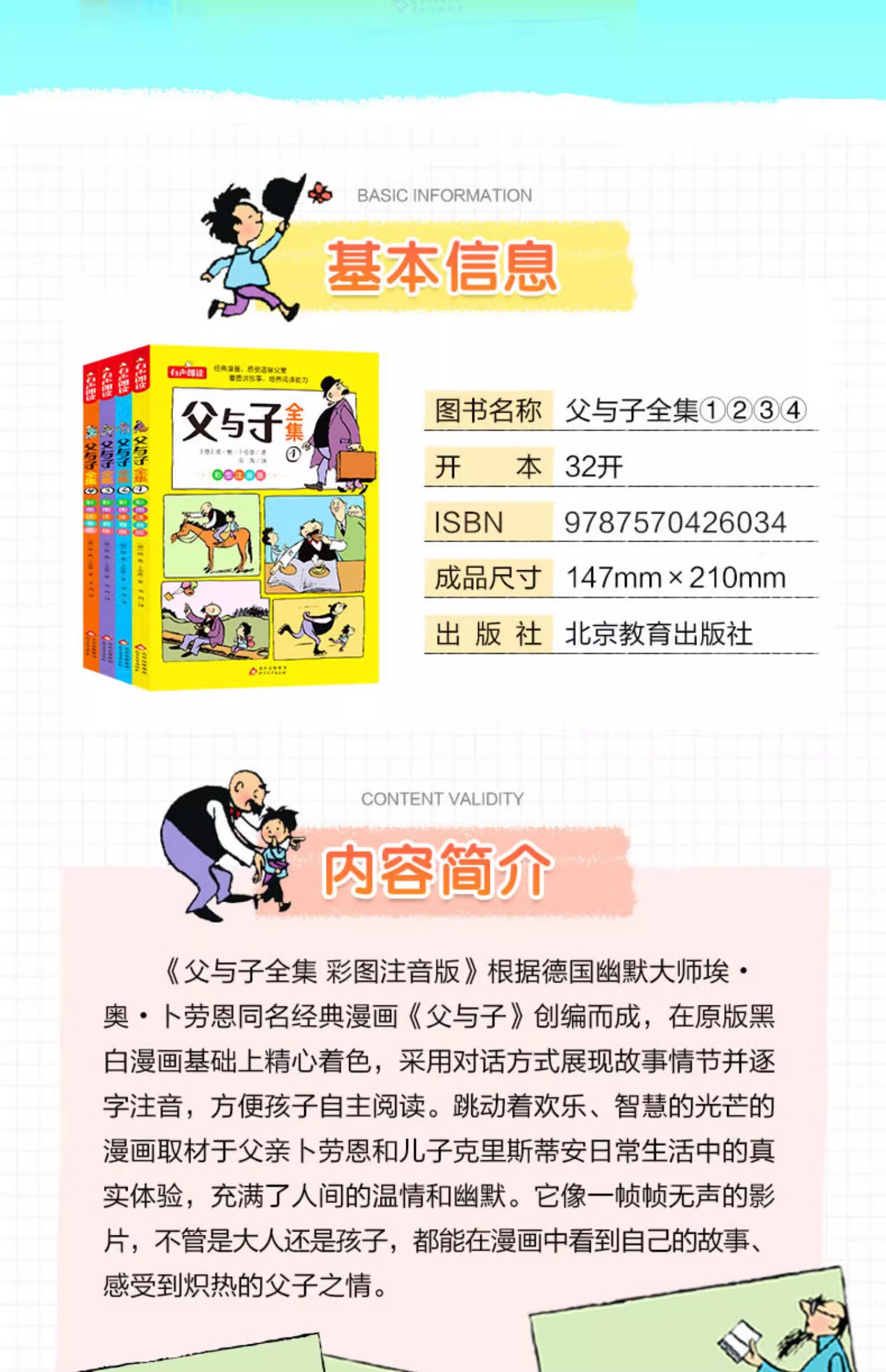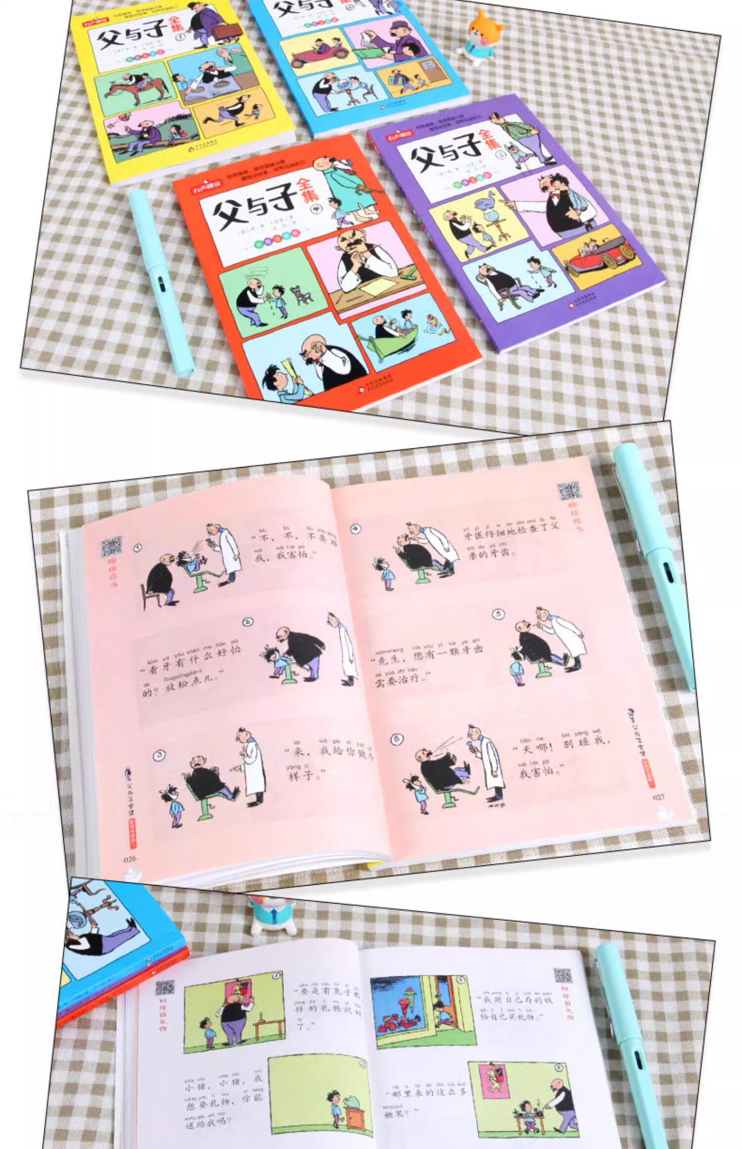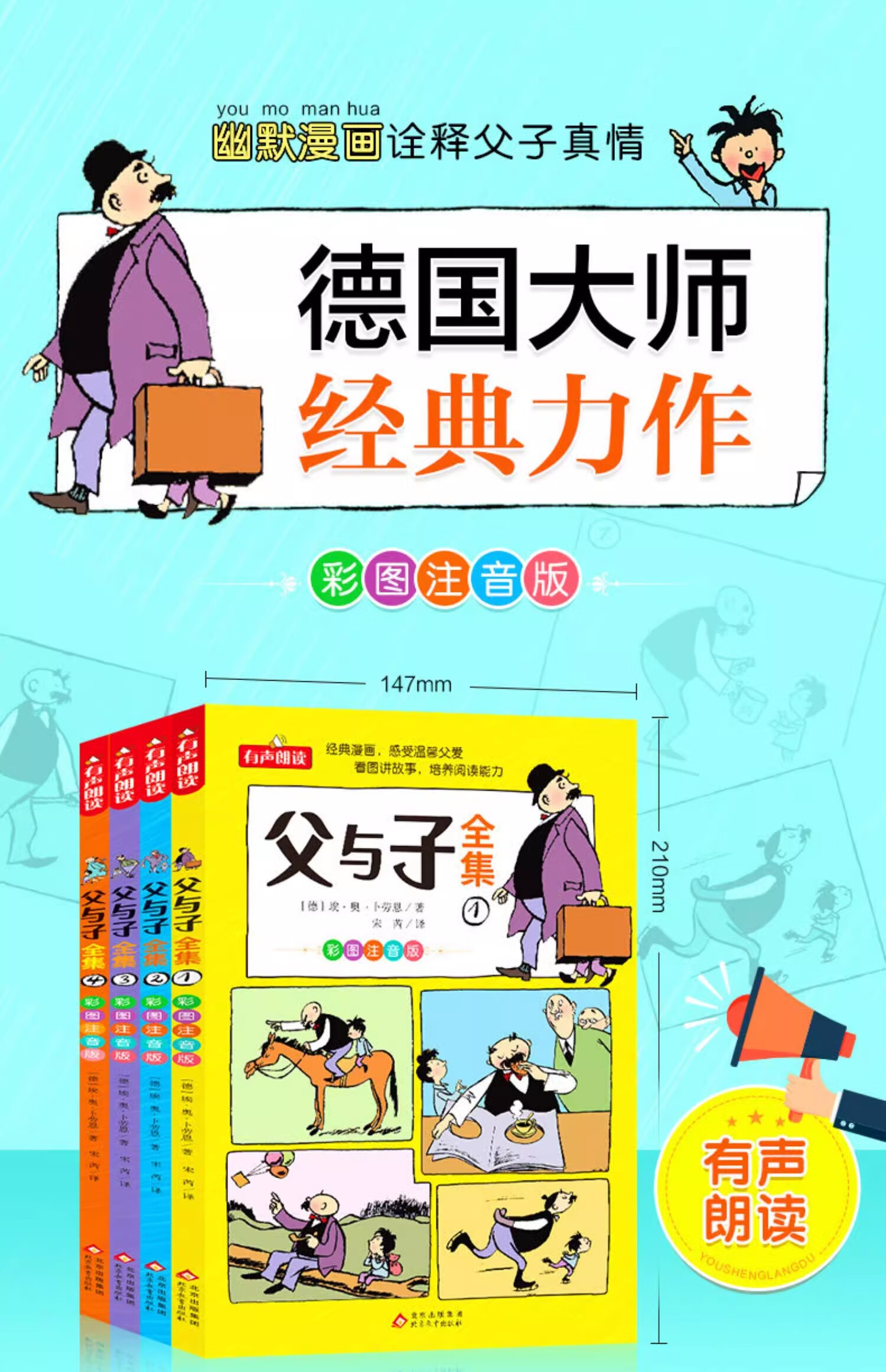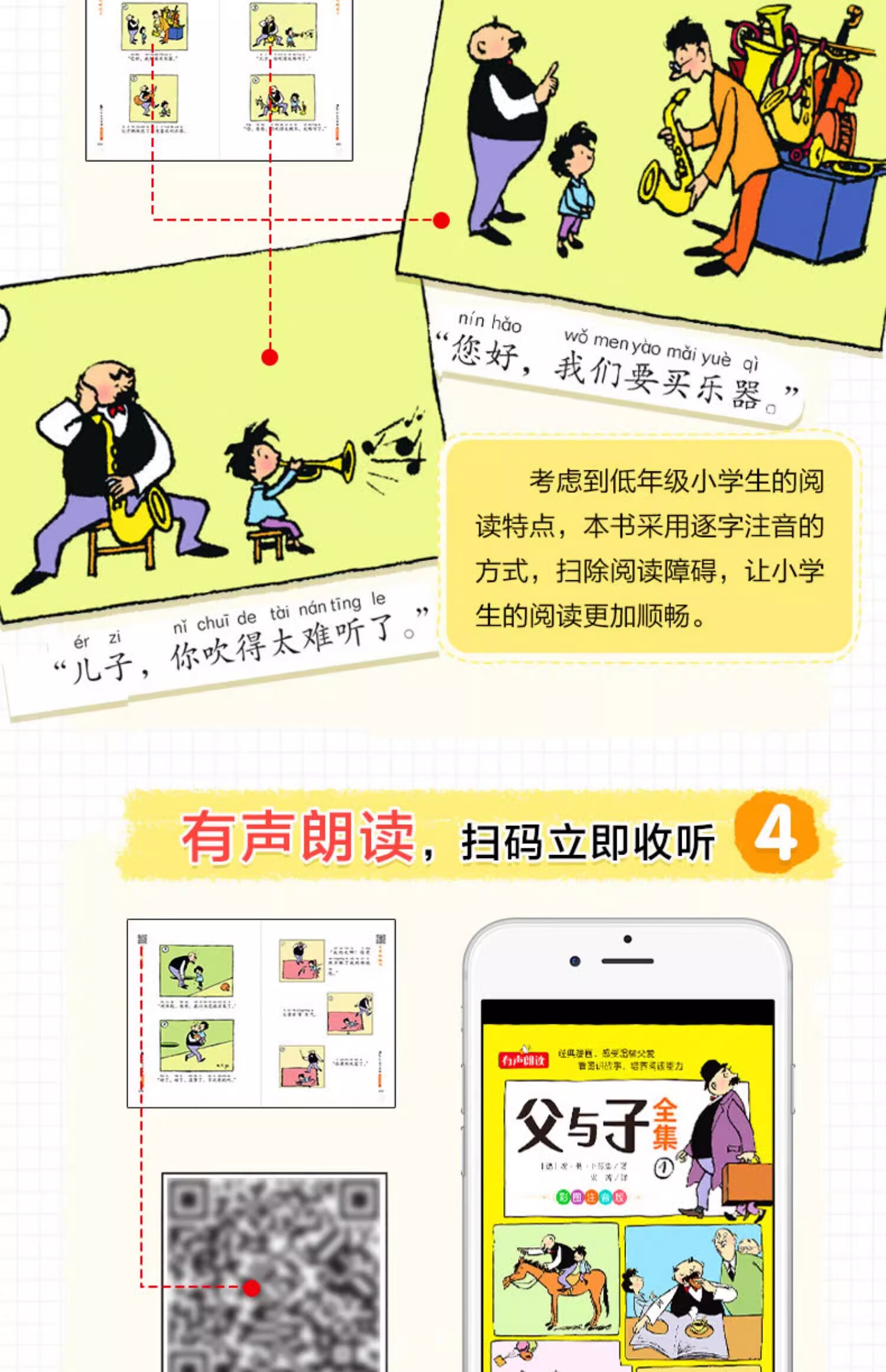 The Complete Works of Father and Son, phonetic version of the comic book, the complete set, the first volume of second grade extracurricular books, a must-read, authentic, picture-telling, children's picture books, extracurricular reading books for primary school students, third and fourth grade classic readings, pinyin compositions, storyboards, primary school students, first grade, second grade, upper and lower volumes, synchronized story books, original children's books, all 4 volumes, complete works of Father and Son - phonetic version