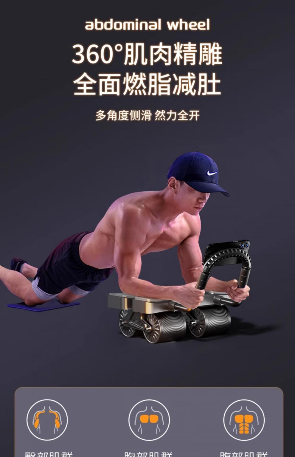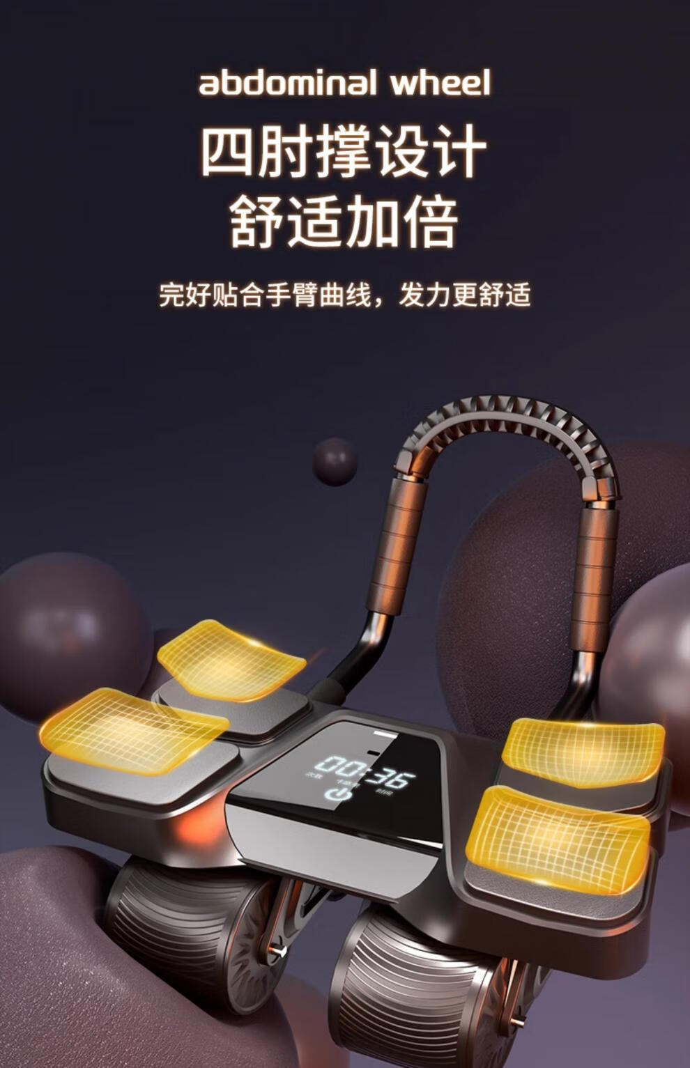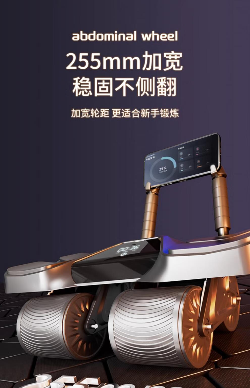 Zailu Four Wheel 2025 New Automatic Rebound Abdominal Wheel Training Abdominal Muscles Men's Abdominal Rolling Machine Slim Belly Magic Tool Flagship Four Wheel Four Elbow Support - Black Smart App/Interactive