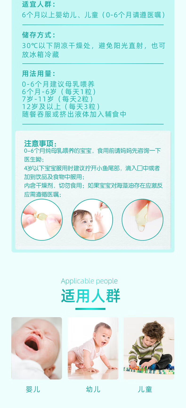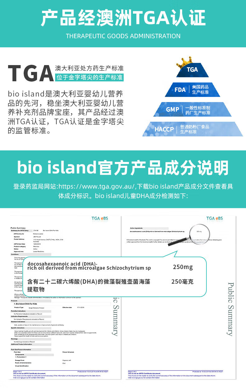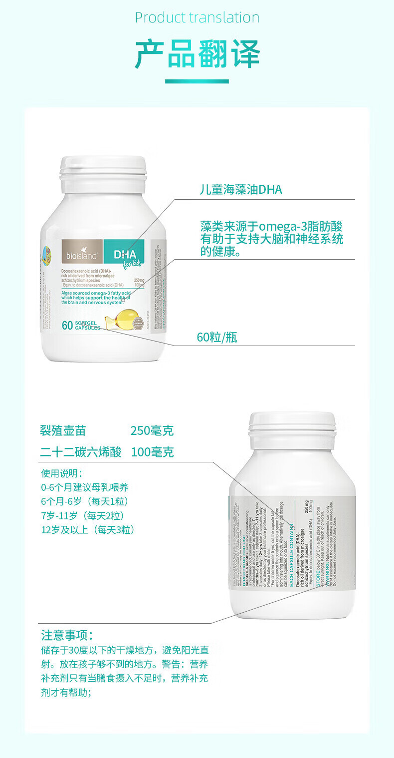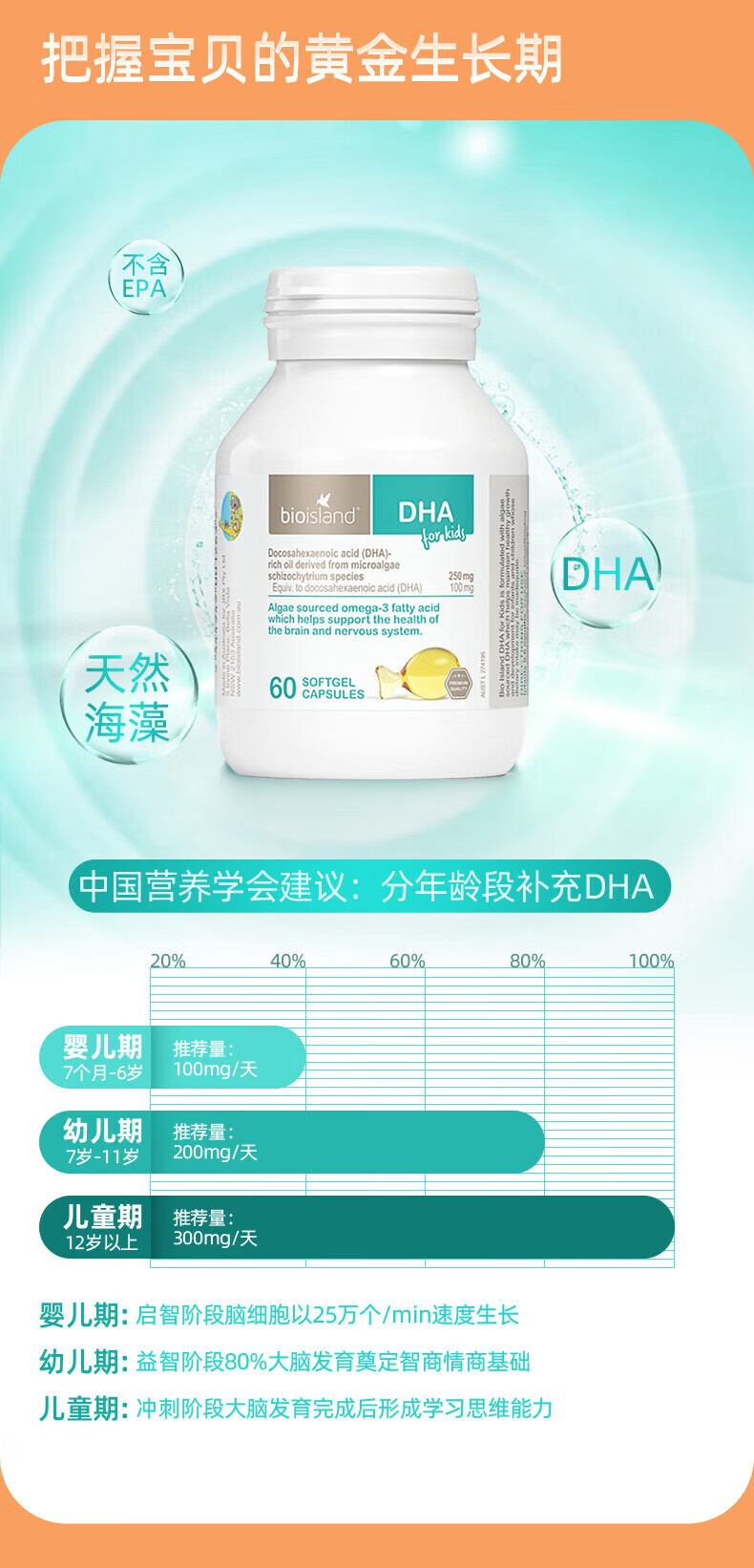 Bio Island Bio Island Children's DHA Seaweed Oil Capsules 60 Capsules Infants and Young Children DHA Brain and Eyesight Infants and Young Children DHA 60 Capsules