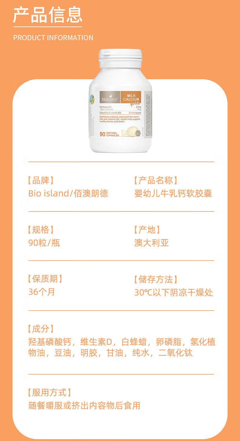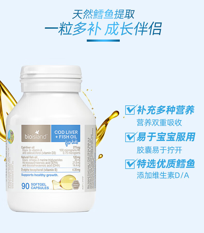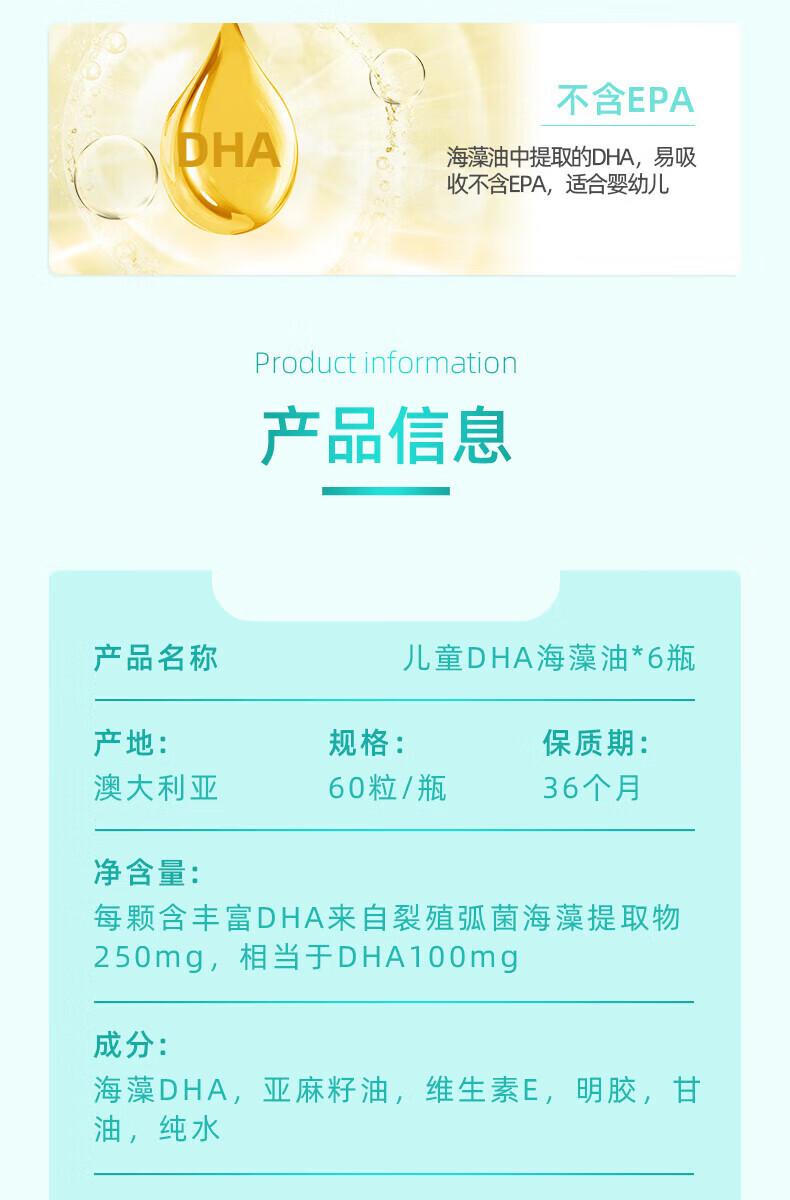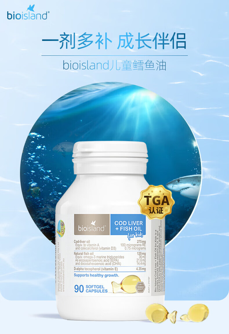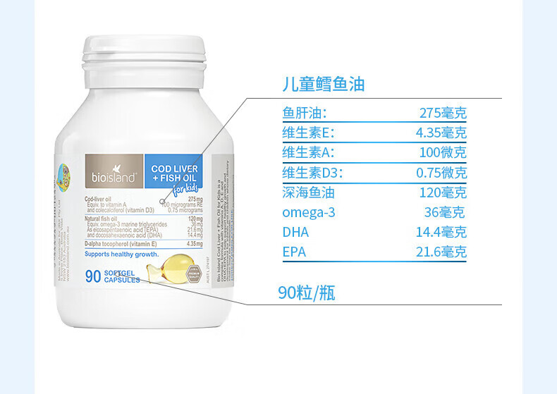 Bio Island Bio Island Children's DHA Seaweed Oil Capsules 60 Capsules Infants and Young Children DHA Brain and Eyesight Infants and Young Children DHA 60 Capsules