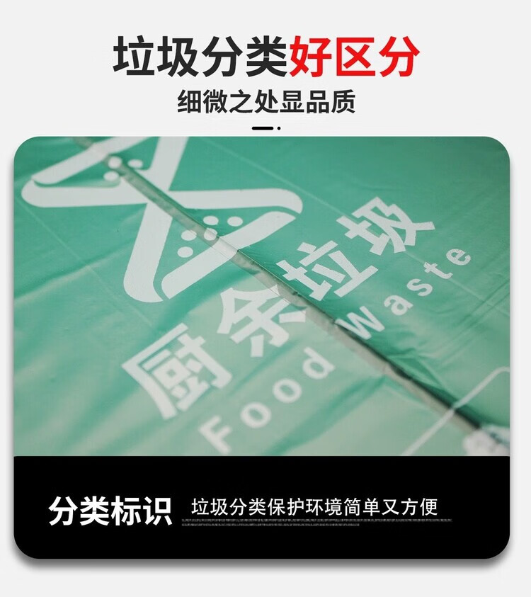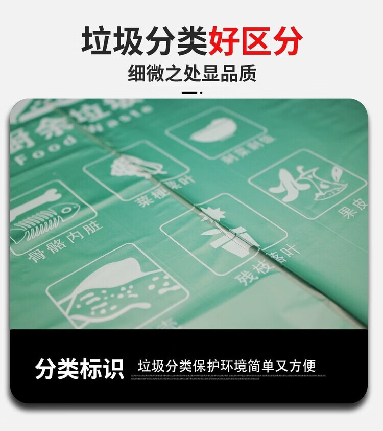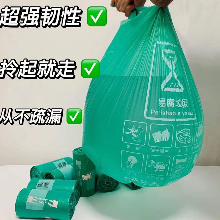Bun Peng biodegradable garbage bag thickened kitchen living room home commercial community flat mouth kitchen waste classification extra thick 90 pieces 4 wires double-sided green flat mouth 4 wires 46*54