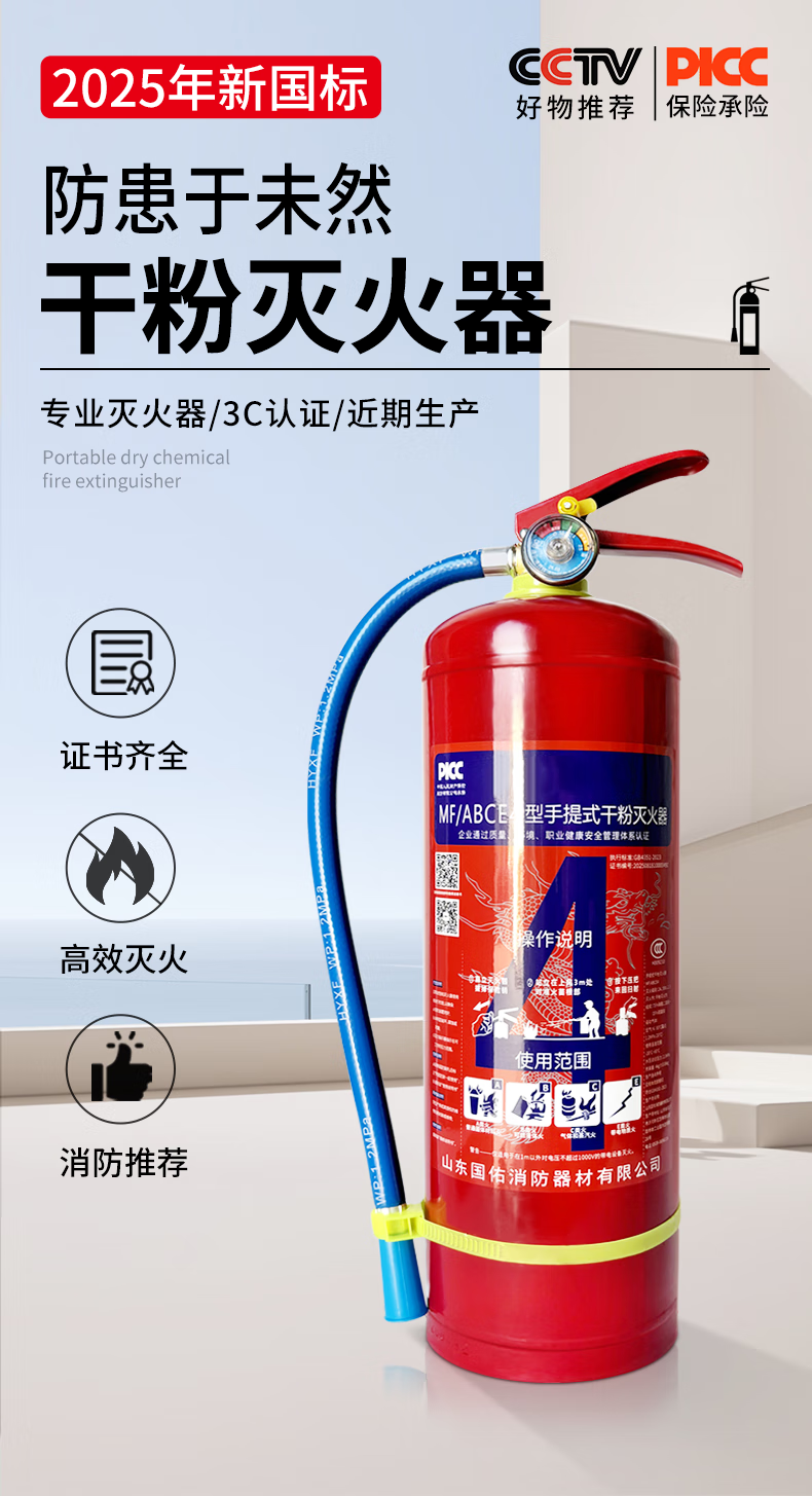 2025 New National Standard 4kg Dry Powder Fire Extinguisher Portable Commercial and Household Fire Fighting Equipment 8kg Pack*2+Iron Box*1