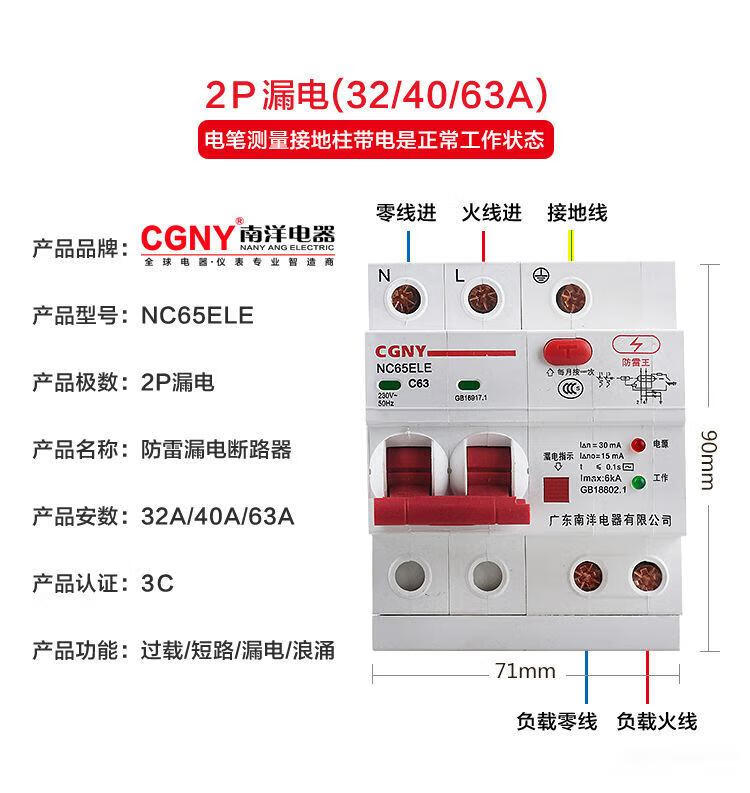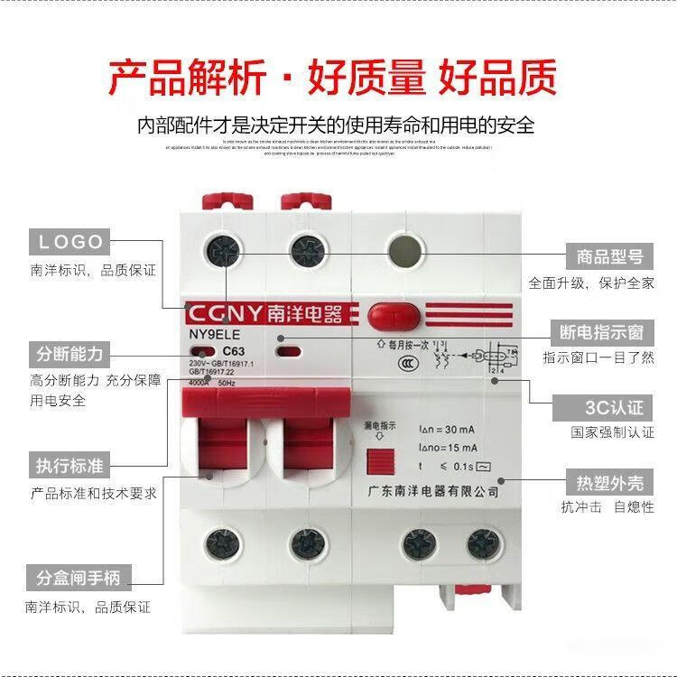 Shantou Lincun 220v leakage protector switch Guangdong Nanyang air belt household 2P63A charging village pile leakage protection circuit breaker grounding lightning protection leakage 40A