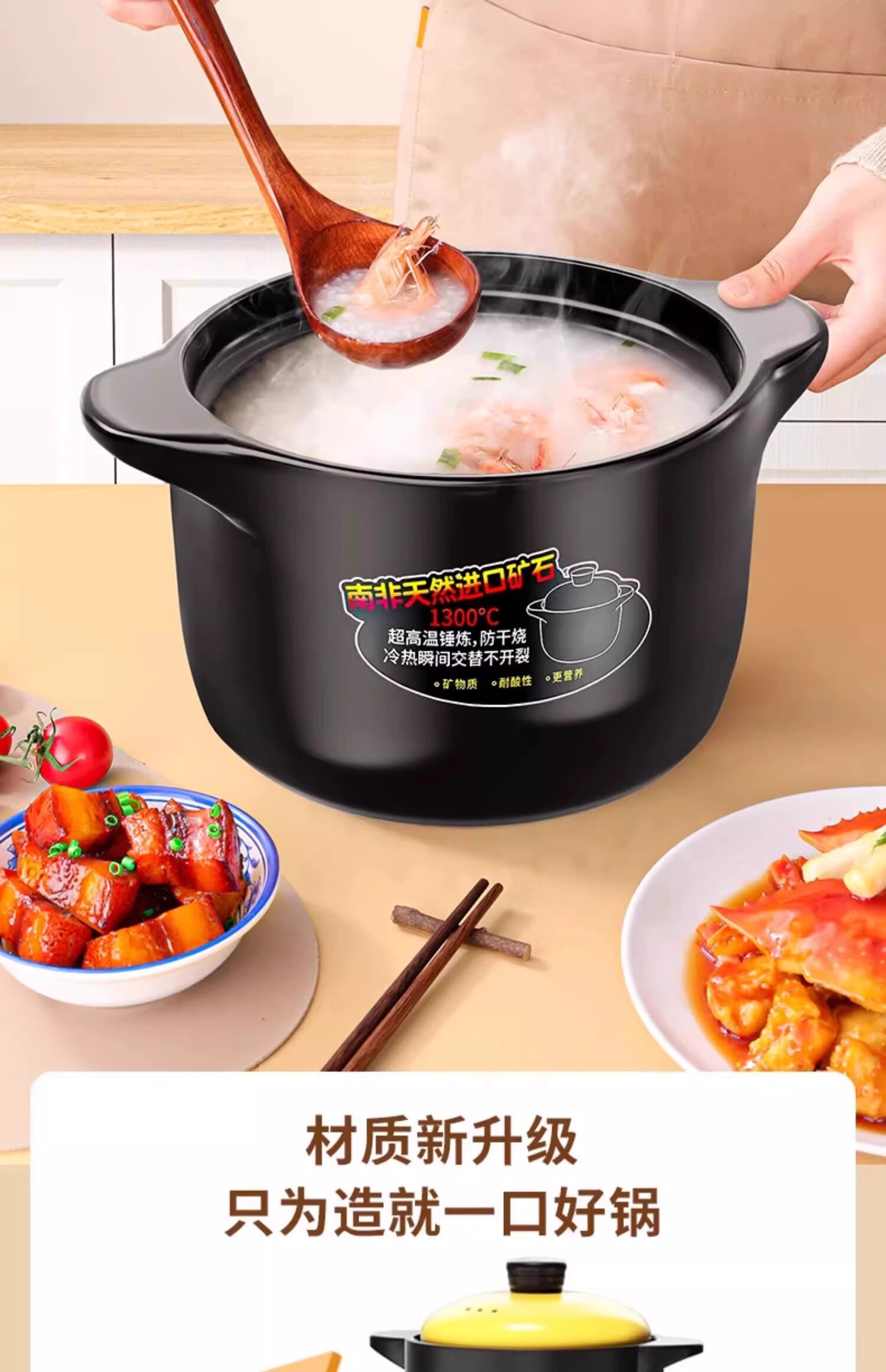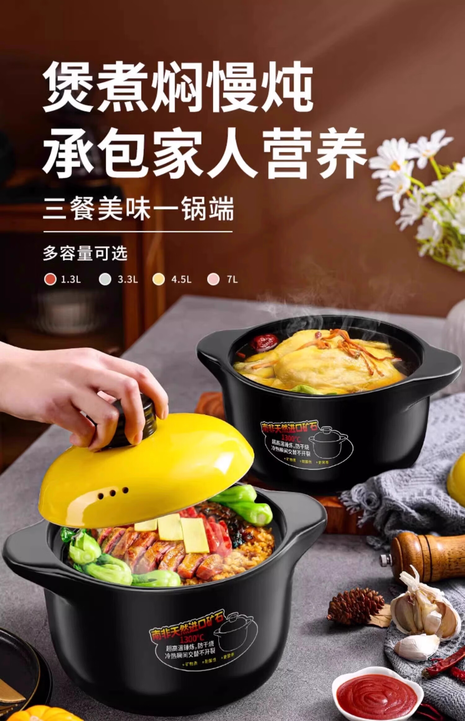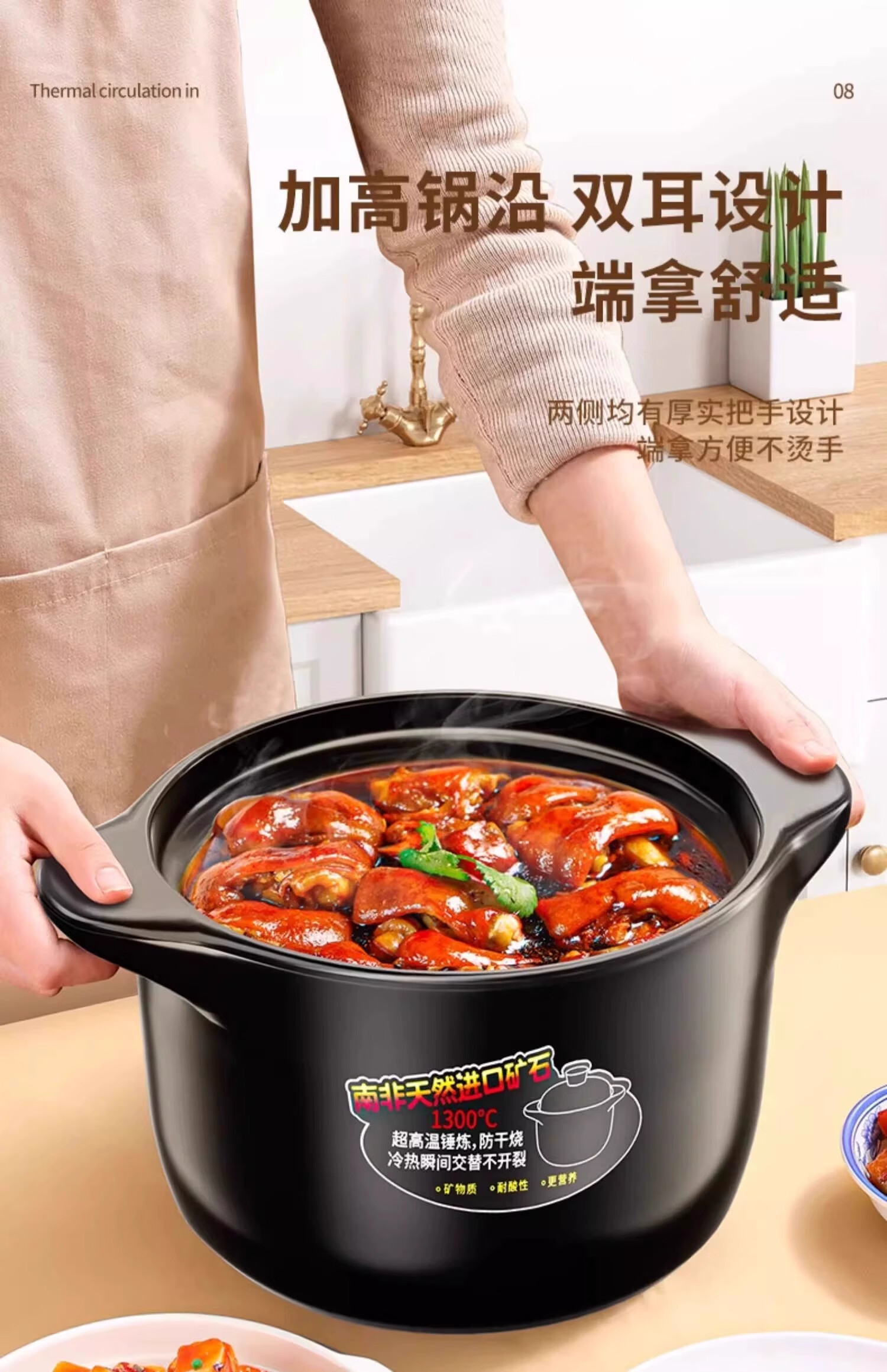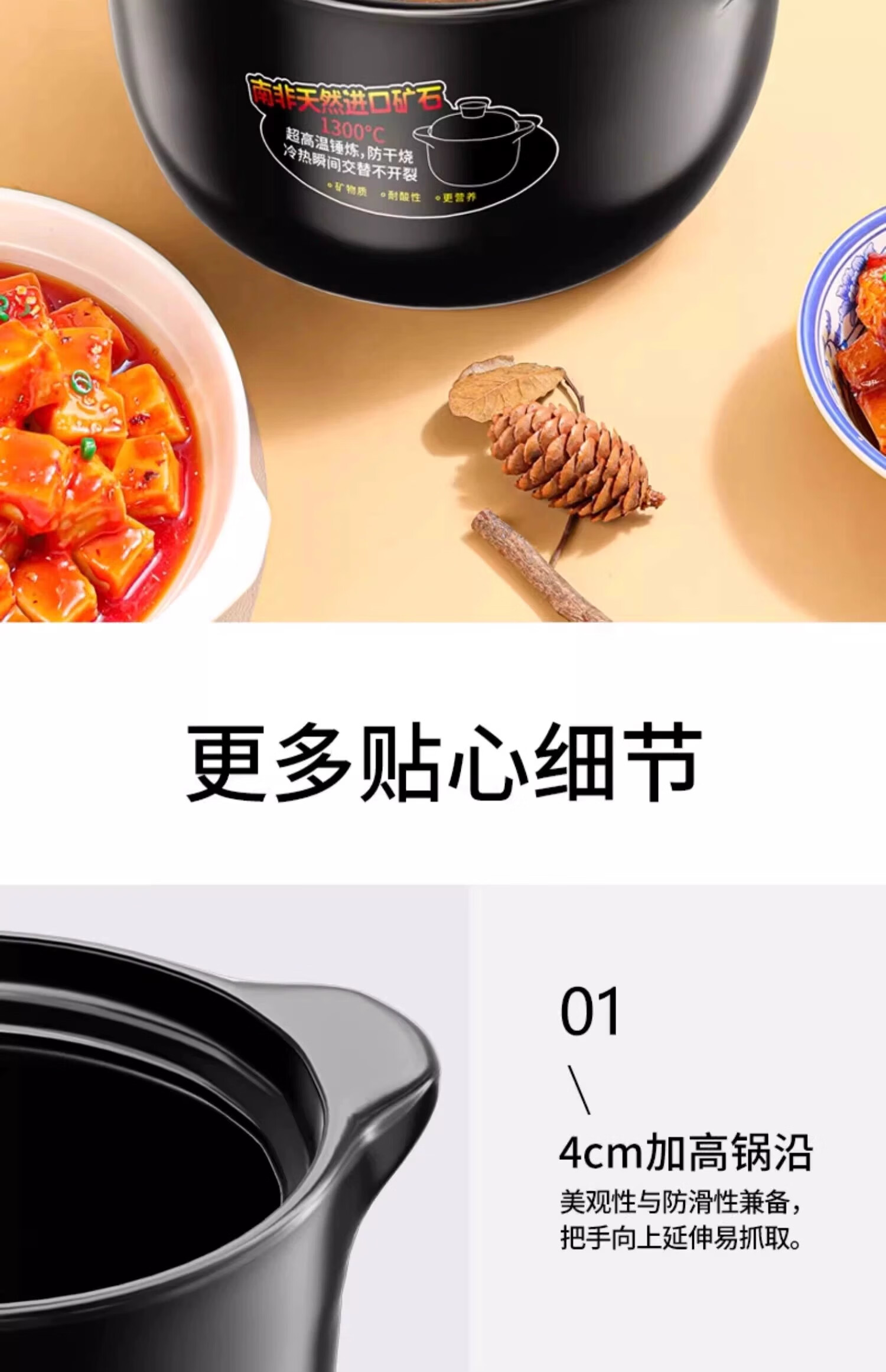 Casserole stew pot household gas high temperature resistant ceramic soup pot dry burning non-cracking gas stove clay pot rice casserole upgraded and thickened ancient firing method imported